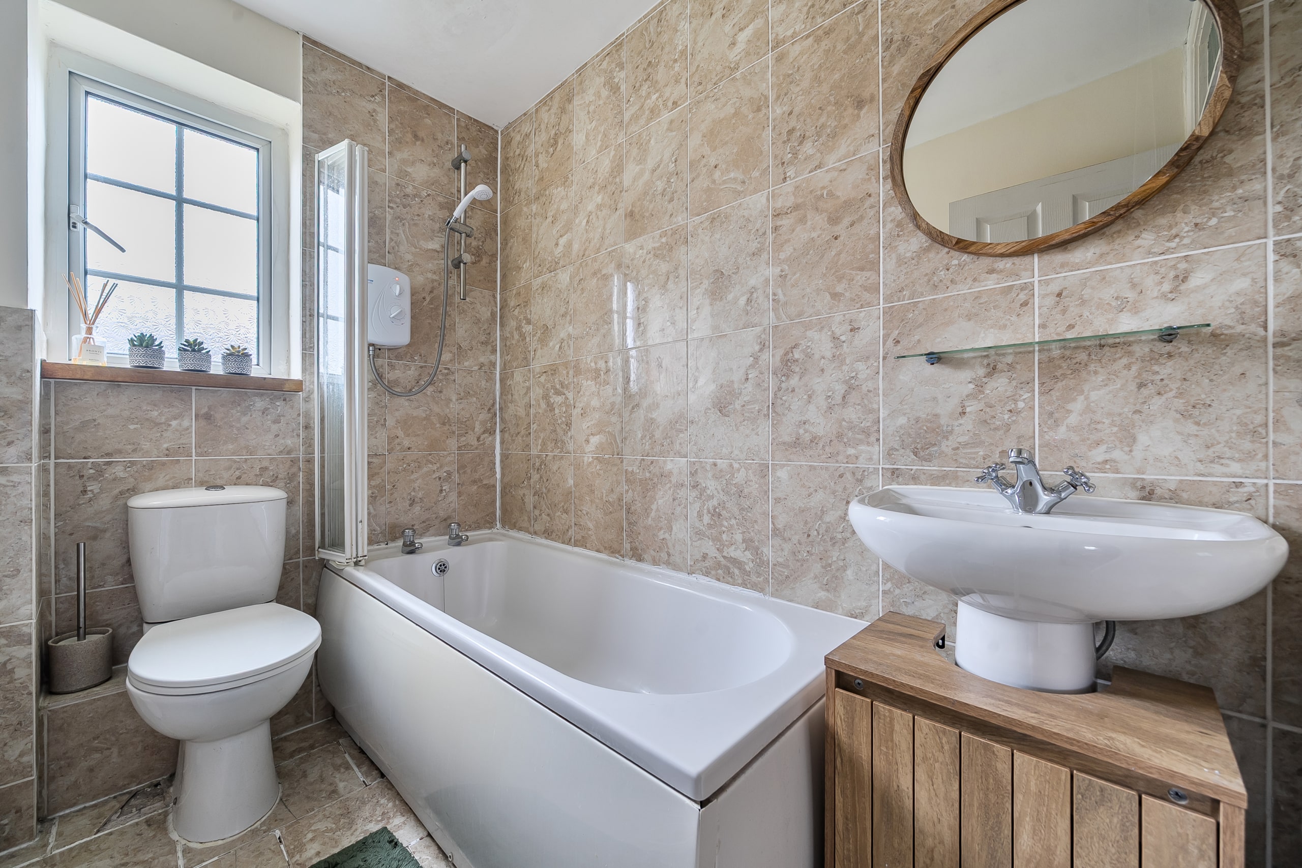 Upstairs, you’ll find two double bedrooms and a further single room. The contemporary three-piece family bathroom suite completes the first floor.