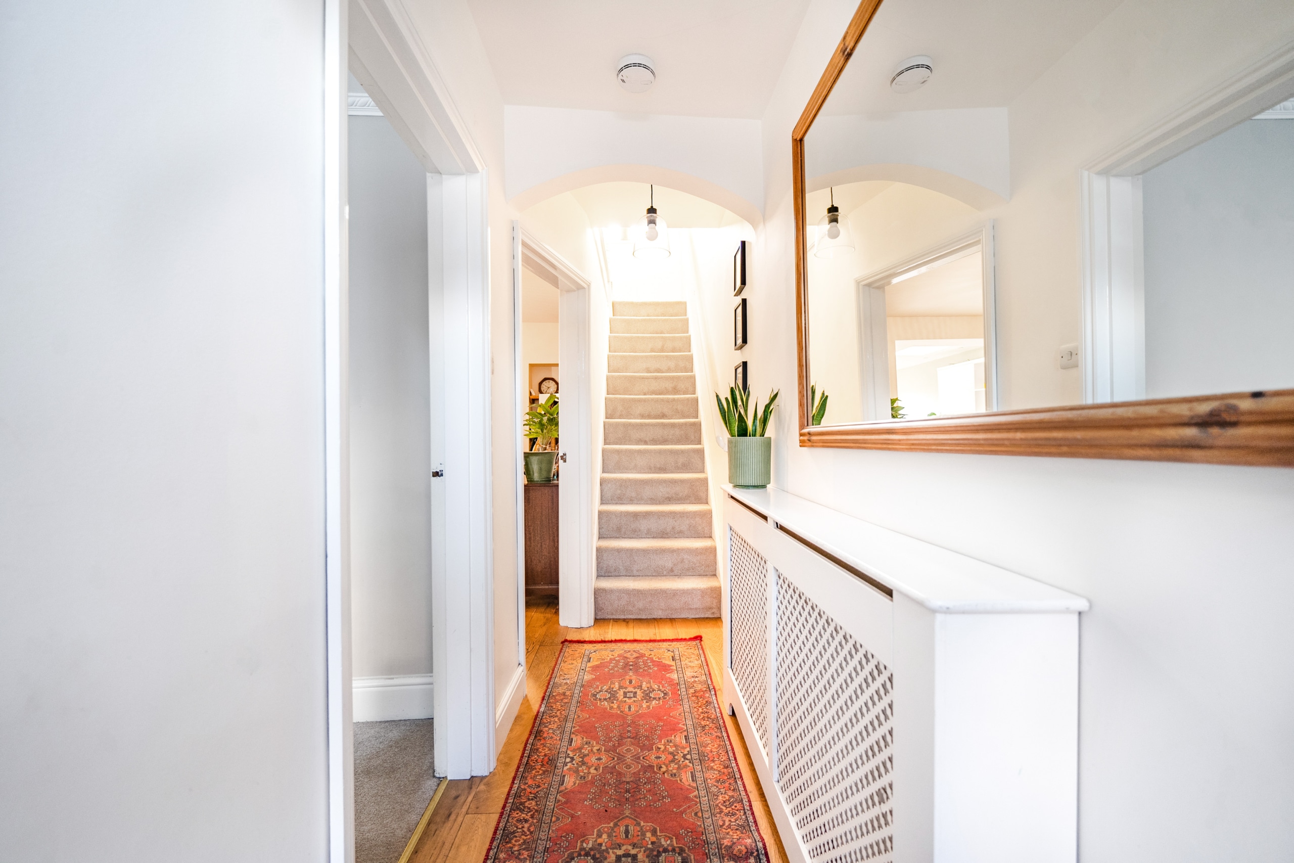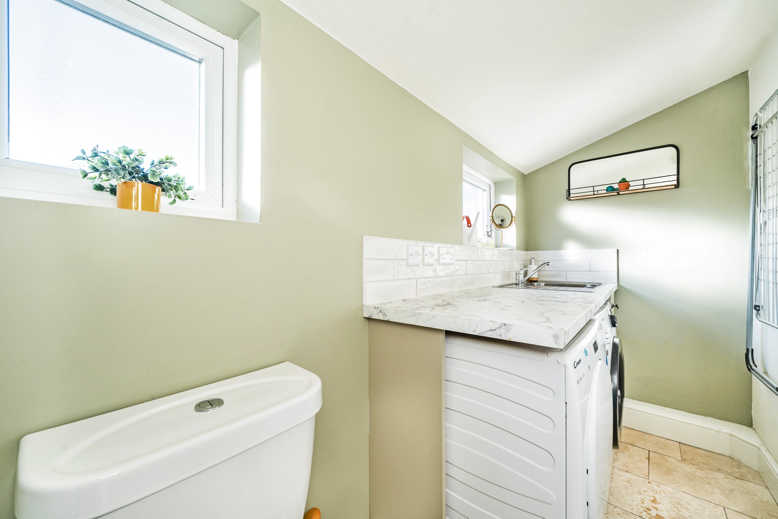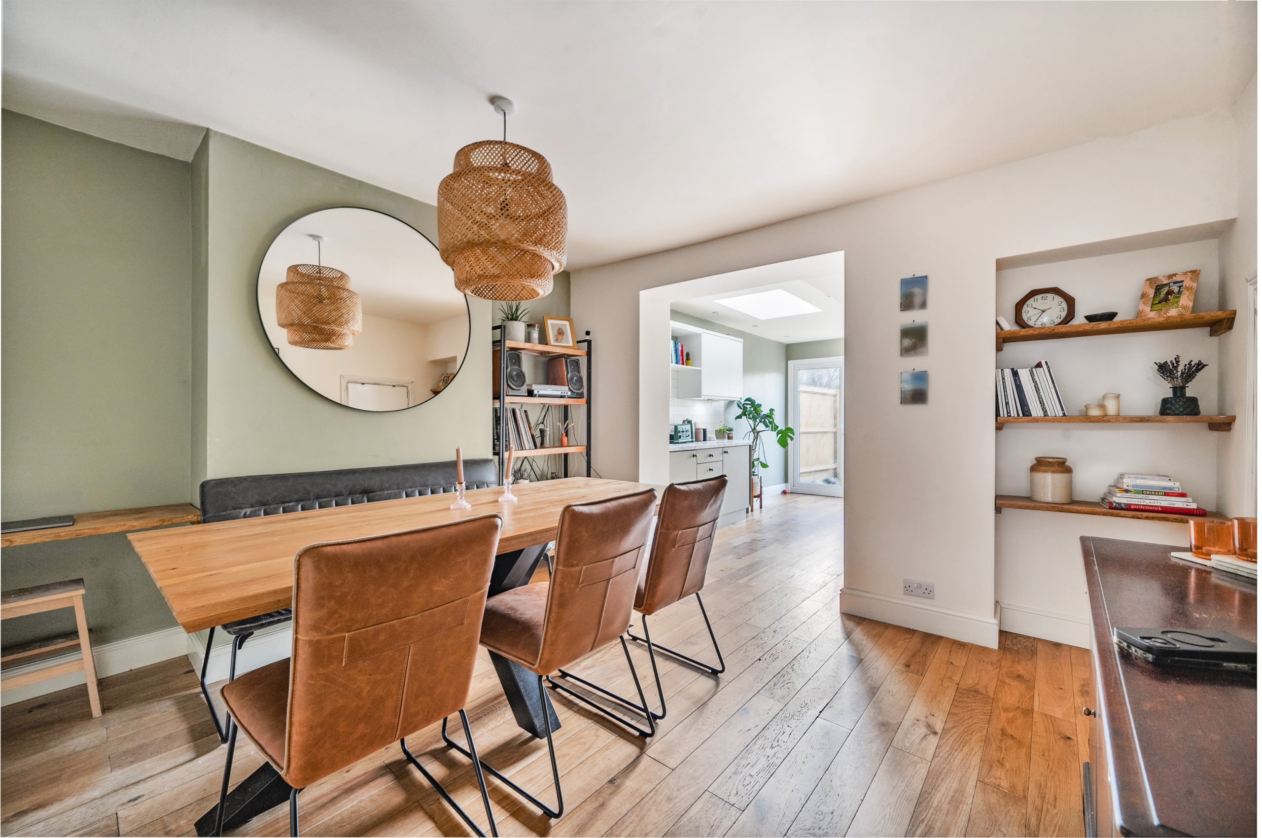 The property comprises; entrance hall, cozy bay fronted living room with fireplace, spacious dining area, a generous recently fitted integrated kitchen and utility room to the rear. On the first floor you’ll find two double bedrooms and the family bathroom with a spiral staircase off the landing that leads to a further double bedroom with velux windows to allow plenty of natural light in. This property also benefits from a tidy rear garden laid to patio and natural lawn.