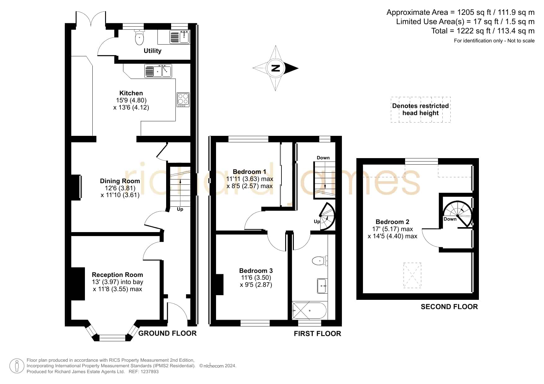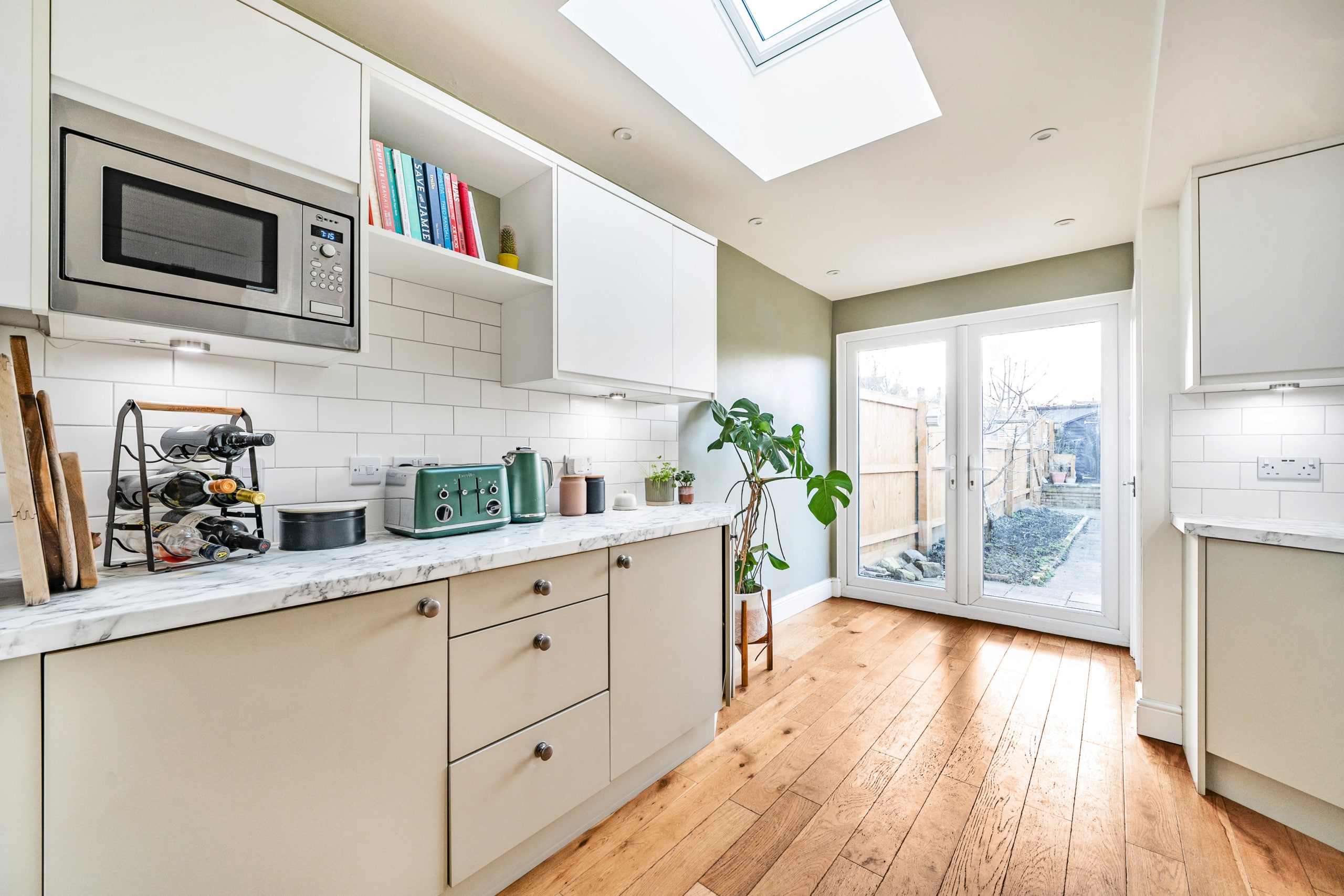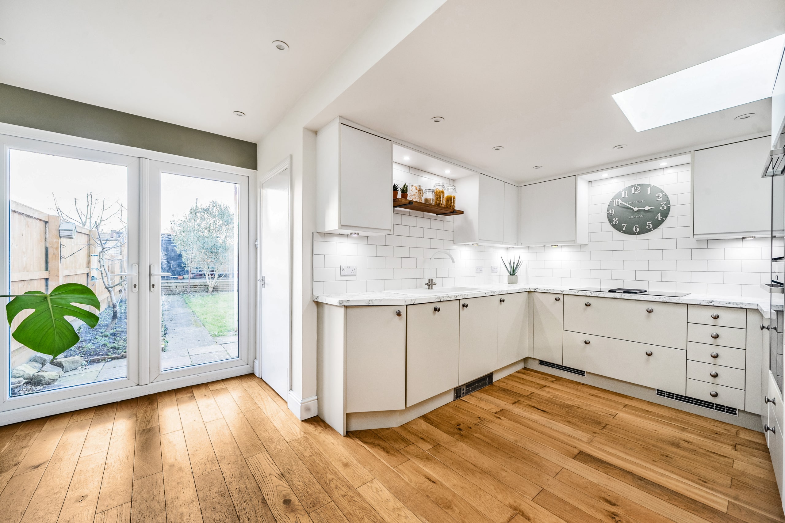 The property comprises; entrance hall, cozy bay fronted living room with fireplace, spacious dining area, a generous recently fitted integrated kitchen and utility room to the rear. On the first floor you’ll find two double bedrooms and the family bathroom with a spiral staircase off the landing that leads to a further double bedroom with velux windows to allow plenty of natural light in. This property also benefits from a tidy rear garden laid to patio and natural lawn.