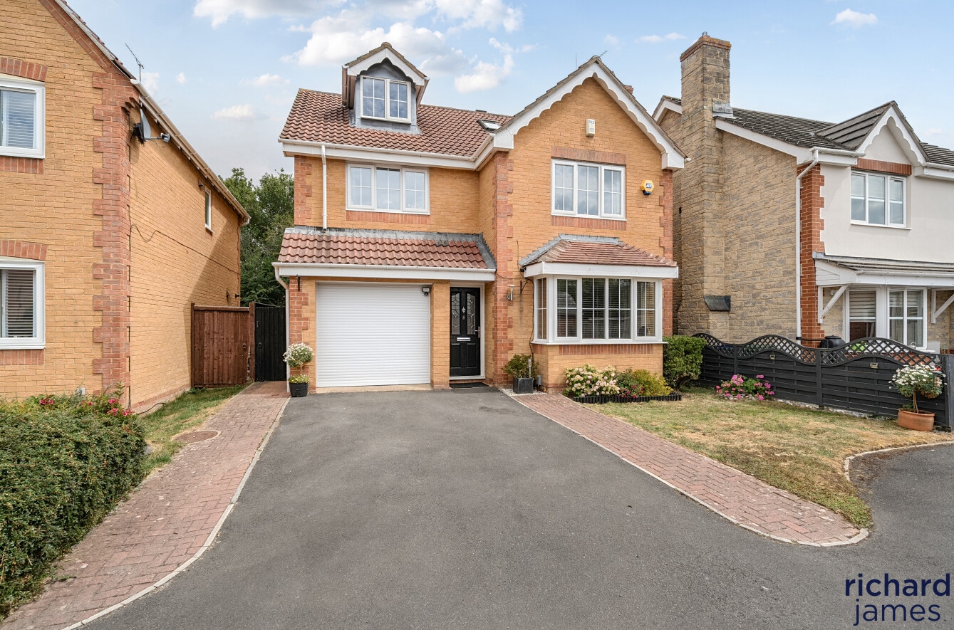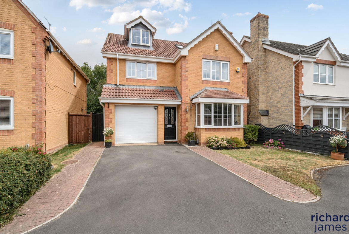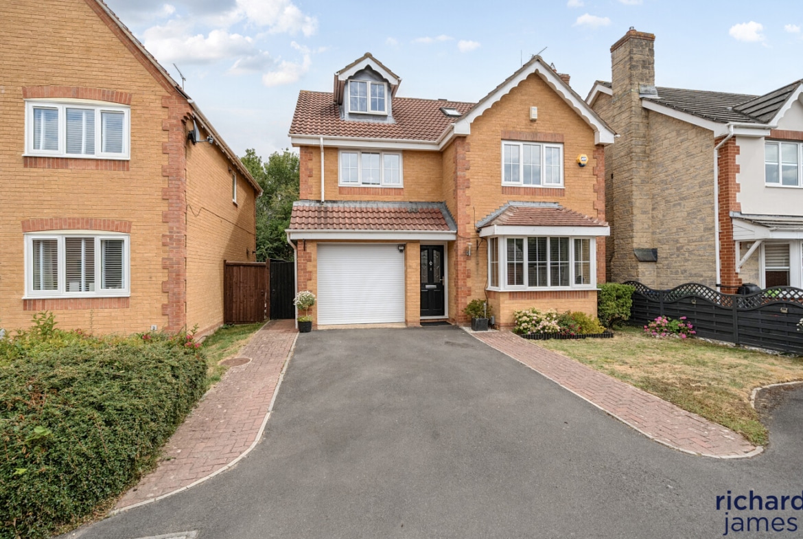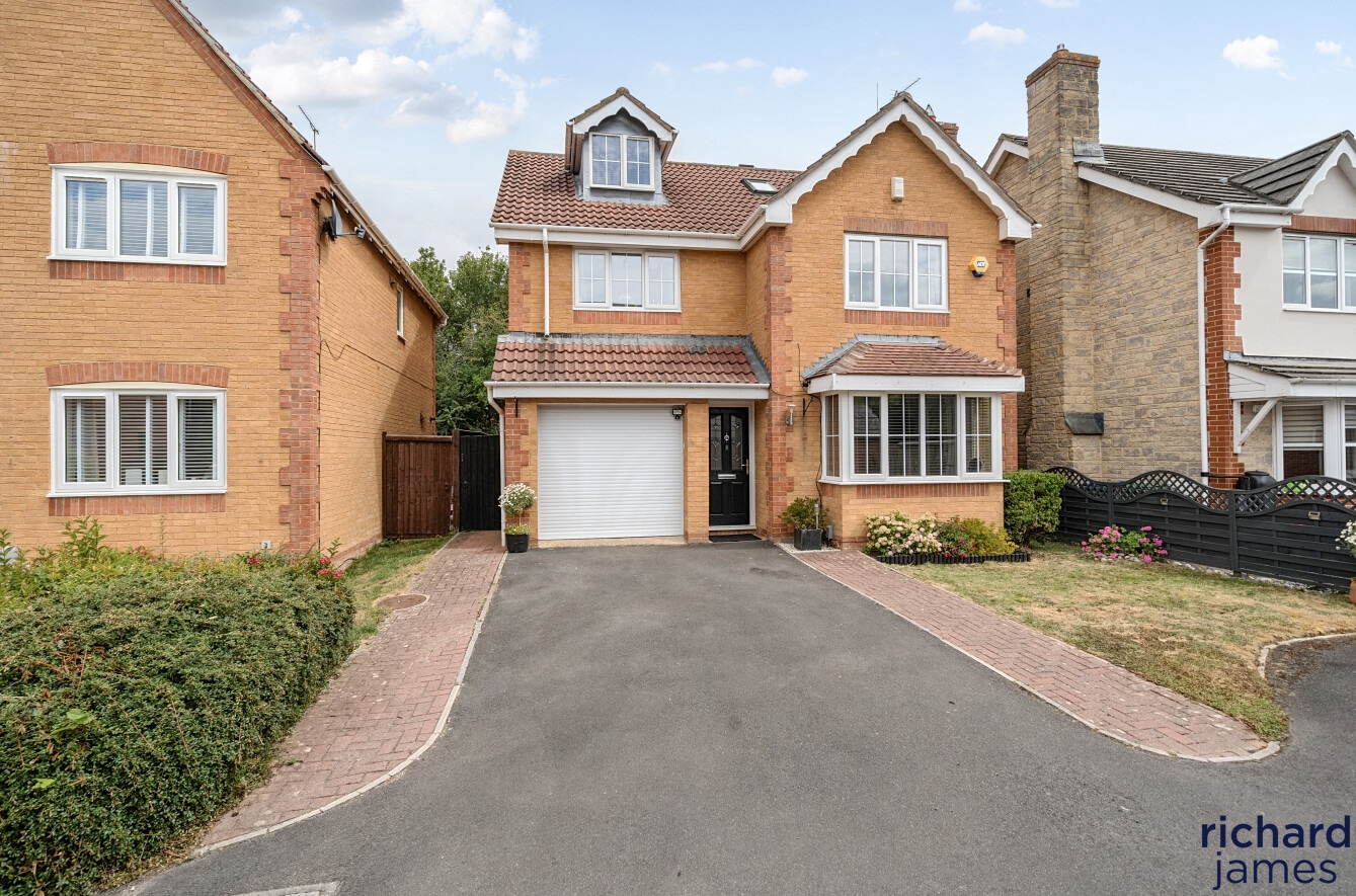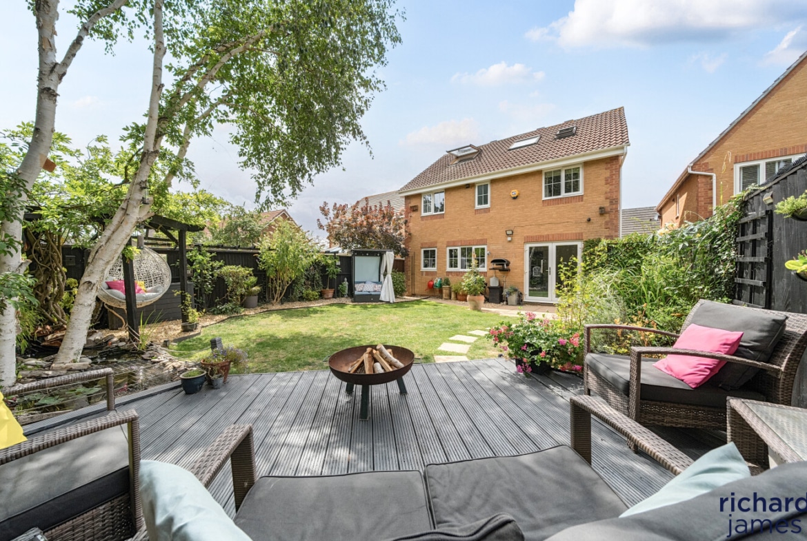Nestled in a quiet cul-de-sac on a popular development, this impressive detached house offers an exquisite balance of space, style, and functionality. Exuding a sense of elegance, the property has been very well maintained and is beautifully presented throughout. Its five double bedrooms are thoughtfully distributed over two floors, with two luxurious ensuites providing both comfort and convenience. A spacious family bathroom serves the remaining bedrooms. The second floor also features a versatile office space, perfect for remote working or study. The heart of the home is undoubtedly the contemporary kitchen/dining room, which seamlessly opens onto the rear garden, creating a delightful flow of indoor and outdoor living.