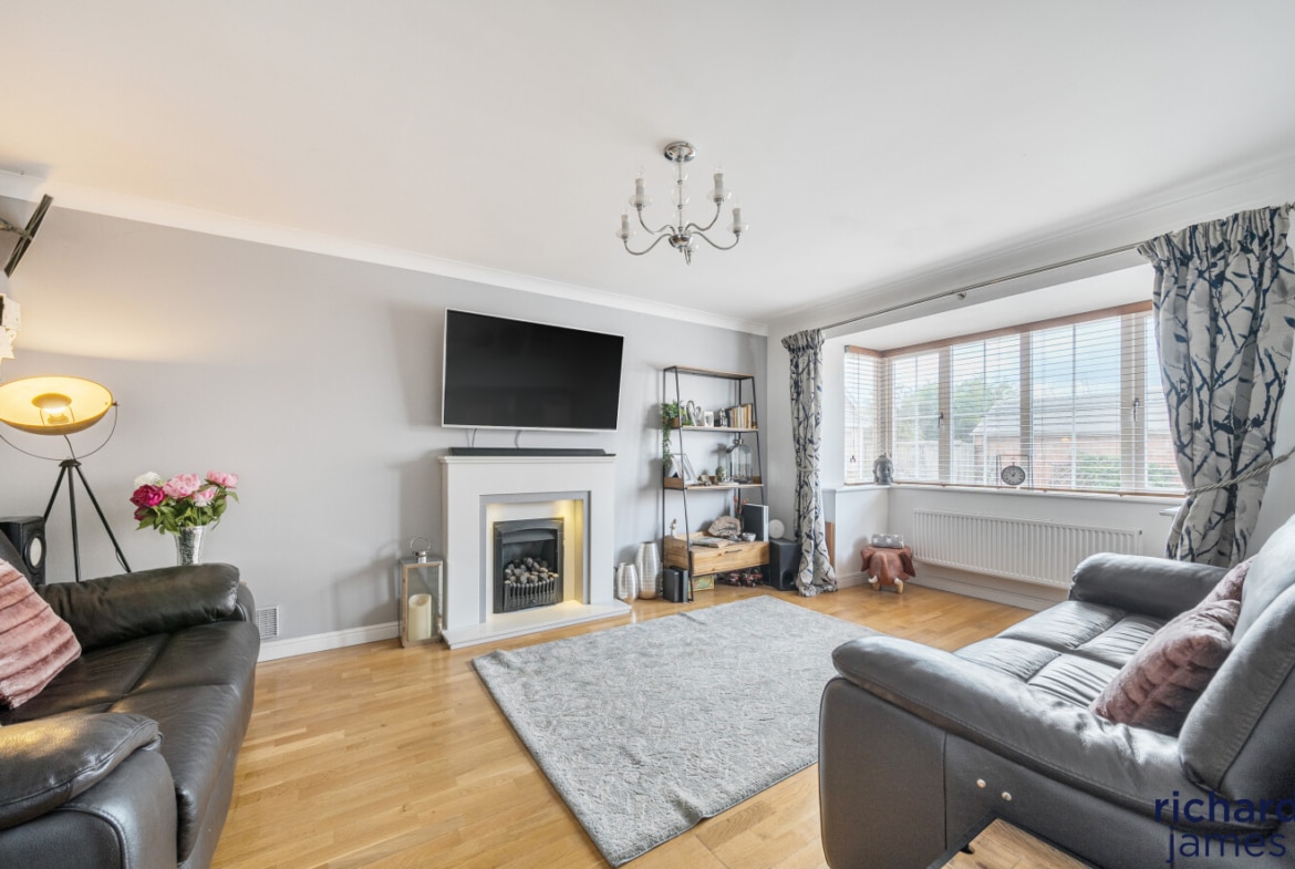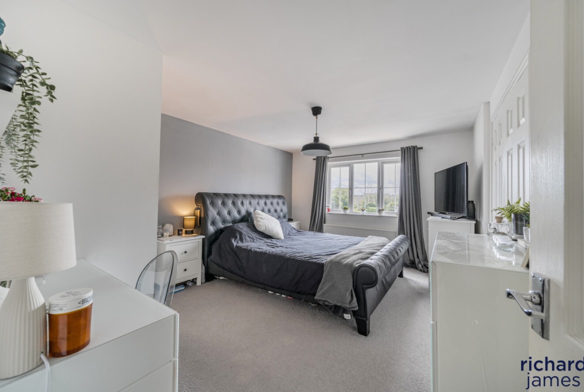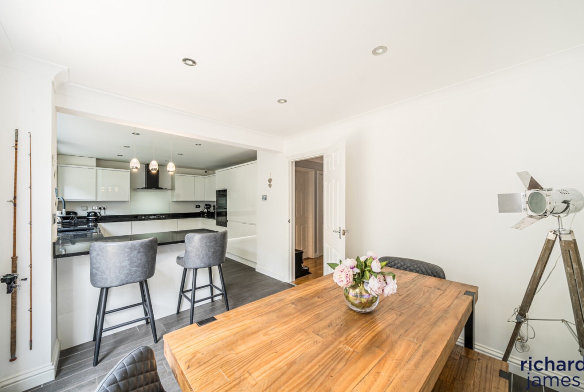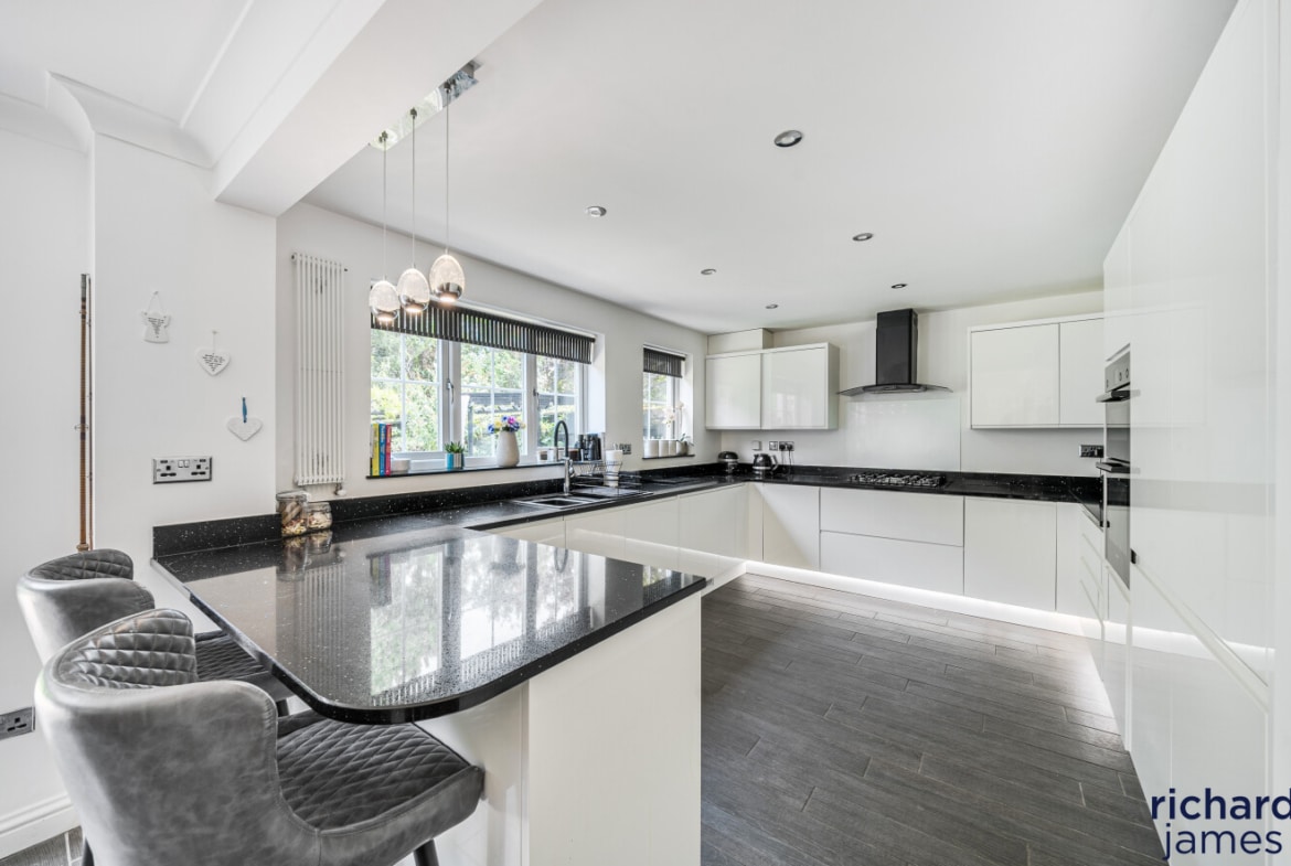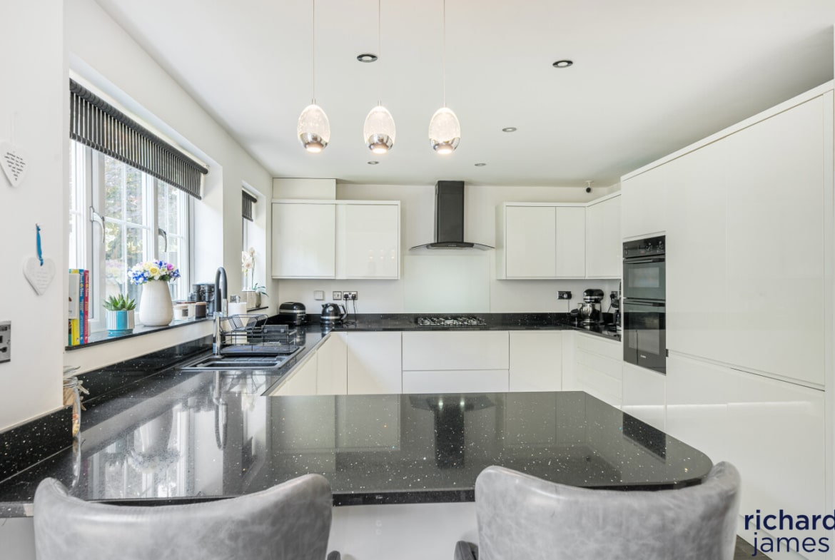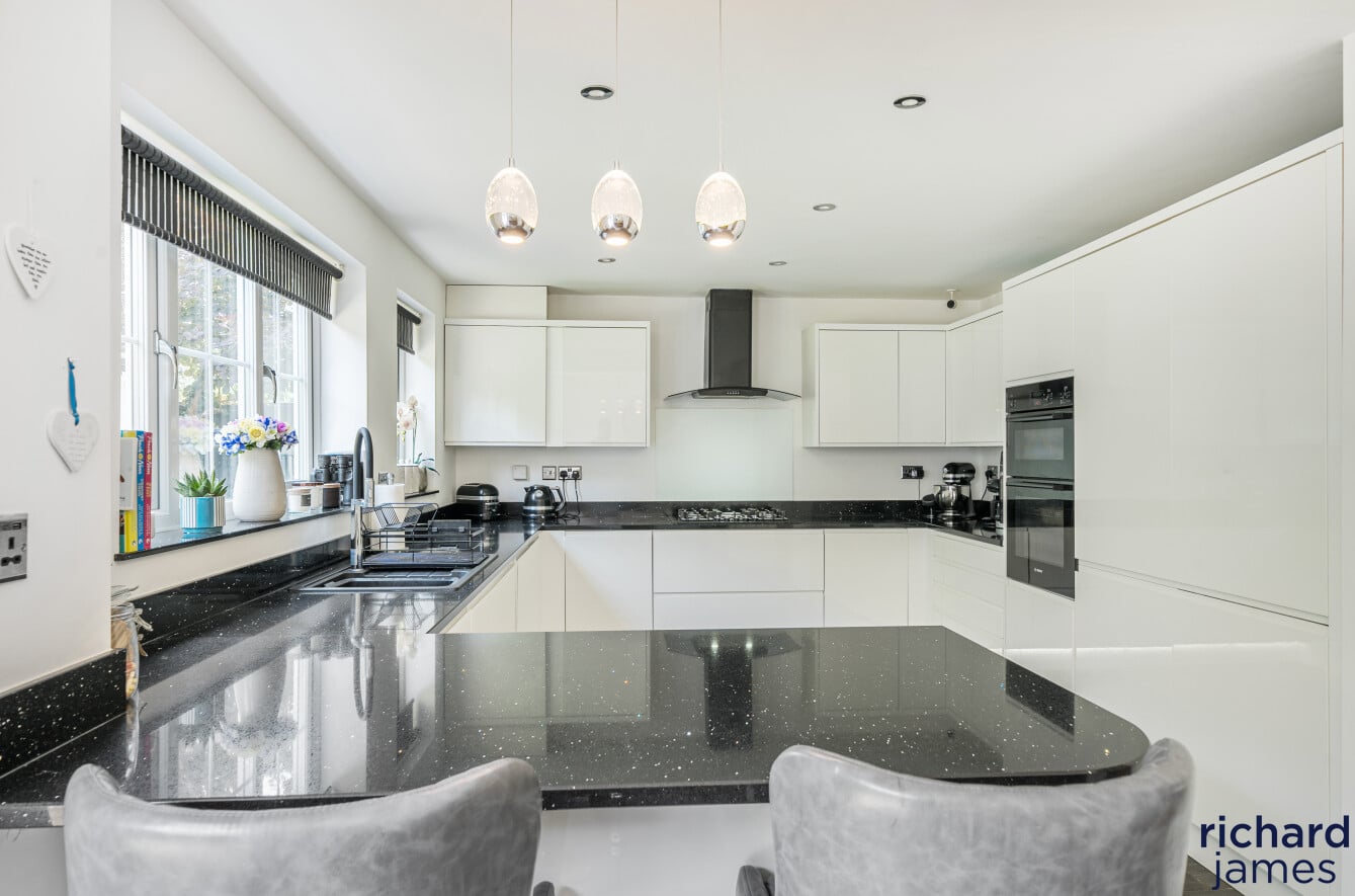 Nestled in a quiet cul-de-sac on a popular development, this impressive detached house offers an exquisite balance of space, style, and functionality. Exuding a sense of elegance, the property has been very well maintained and is beautifully presented throughout. Its five double bedrooms are thoughtfully distributed over two floors, with two luxurious ensuites providing both comfort and convenience. A spacious family bathroom serves the remaining bedrooms. The second floor also features a versatile office space, perfect for remote working or study. The heart of the home is undoubtedly the contemporary kitchen/dining room, which seamlessly opens onto the rear garden, creating a delightful flow of indoor and outdoor living.