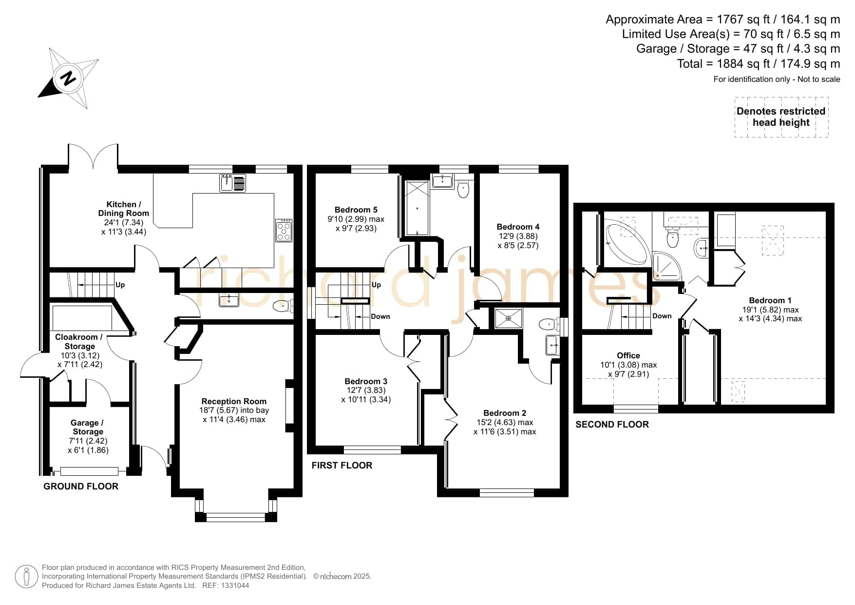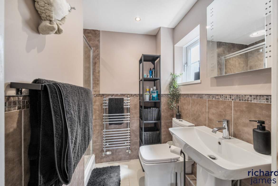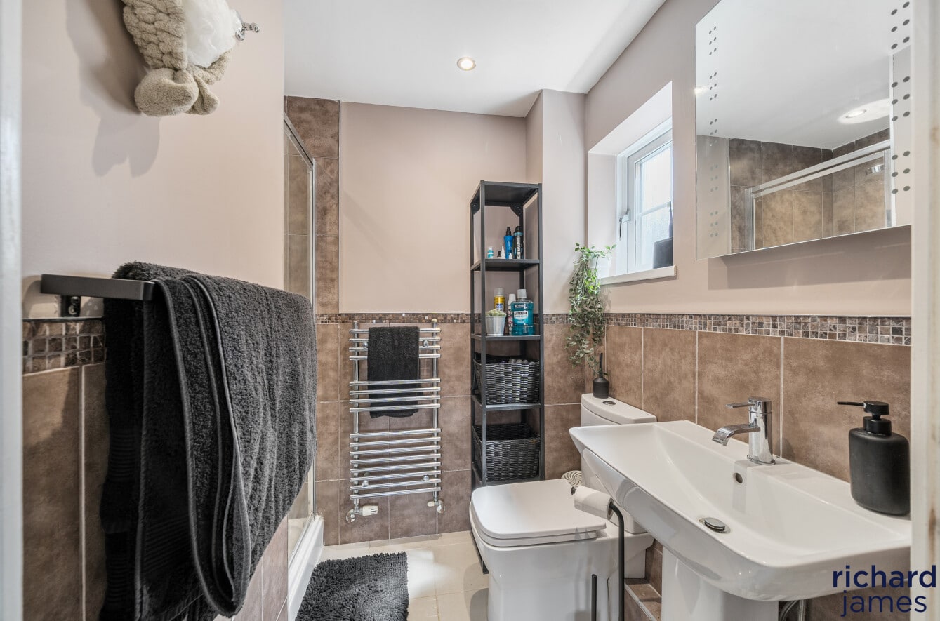 This well-maintained detached house offers ample storage, two ensuites, a family bathroom, and five double bedrooms spread over two floors, including office space. The kitchen/dining room opens to a private rear garden, a haven for wildlife. Situated in a quiet cul-de-sac, it features driveway parking, a front lawn, and excellent access to schools, shops, countryside, and road links.