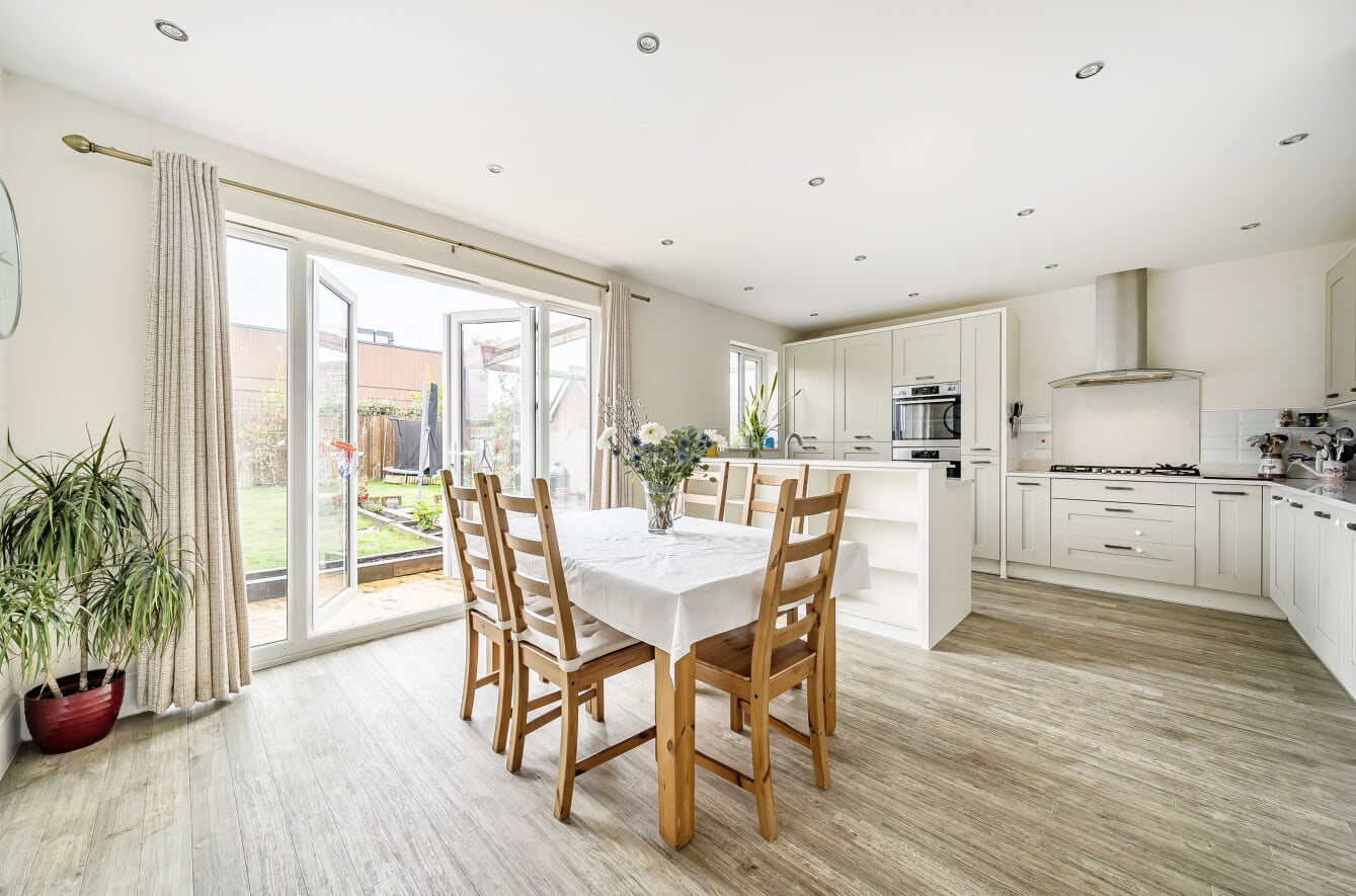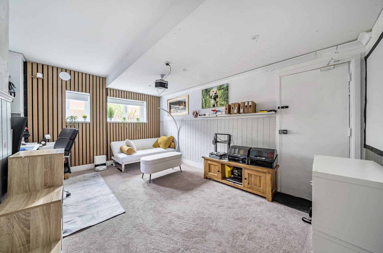 As you enter the property, you are greeted by a light and airy hallway which sets the tone for the rest of the house. The highlights of the ground floor include a high specification kitchen/dining room, equipped with top-of-the-range appliances and upgraded marble worktops, offering ample space for family gatherings and entertaining.