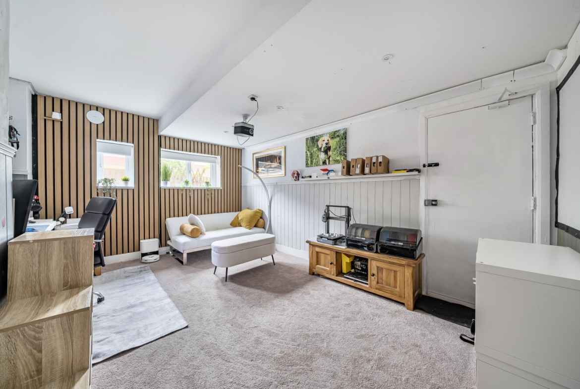 The downstairs space boasts three further reception rooms, including; lounge, family room, plus a recently completed garage conversion – now utilised as an office space/5th bedroom. The property still maintains a section of the garage for everyday storage requirements. Completing the downstairs is a practical utility room and WC.