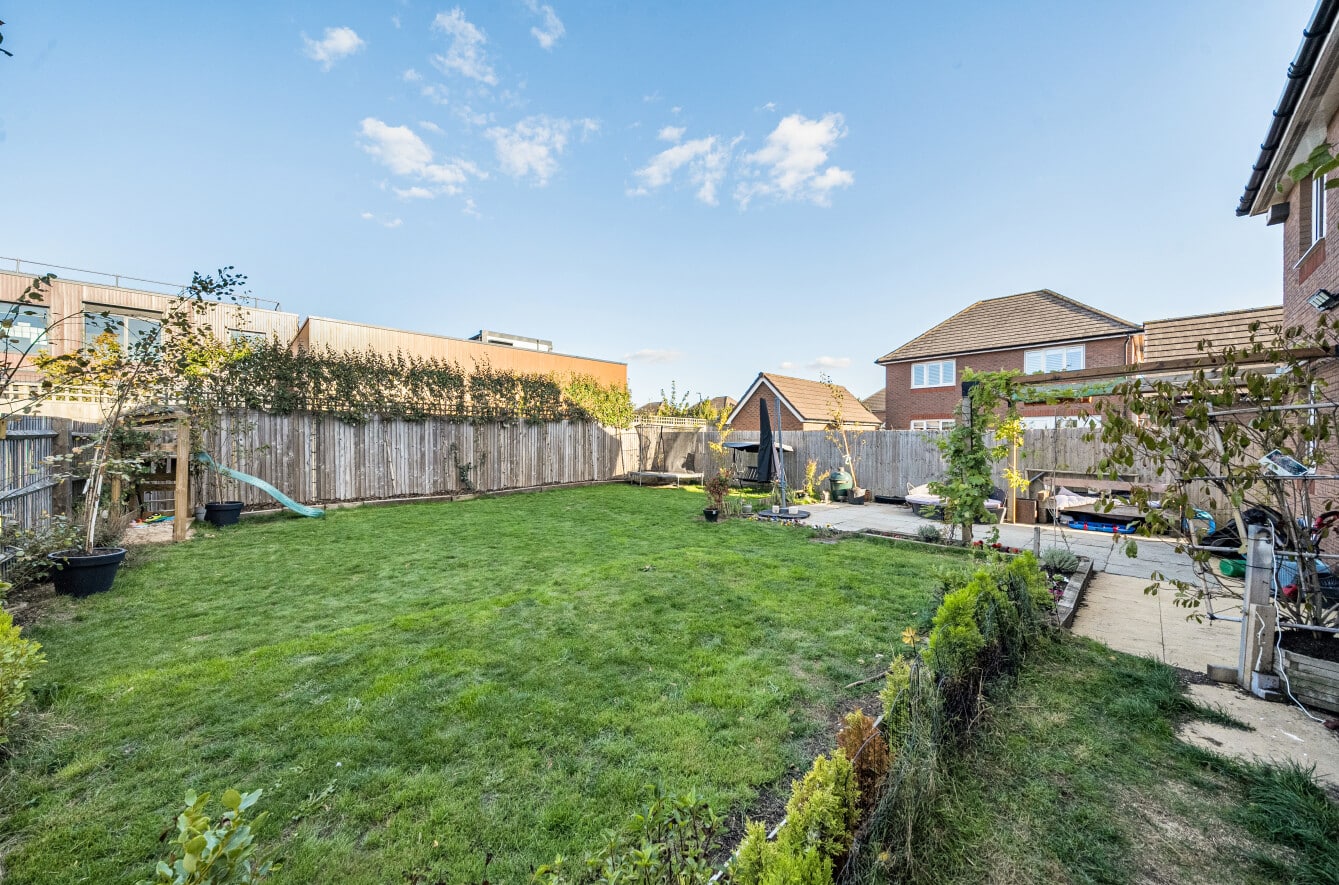The rear garden is a versatile outdoor space, perfect for outdoor dining and entertaining, whilst the greenery to the front of the property adds to the tranquil setting. The rear garden also boasts recently installed mature trees to the boundary of the garden, adding another level of privacy to the space. To the front, the property benefits from (side by side) driveway parking for 2 vehicles.