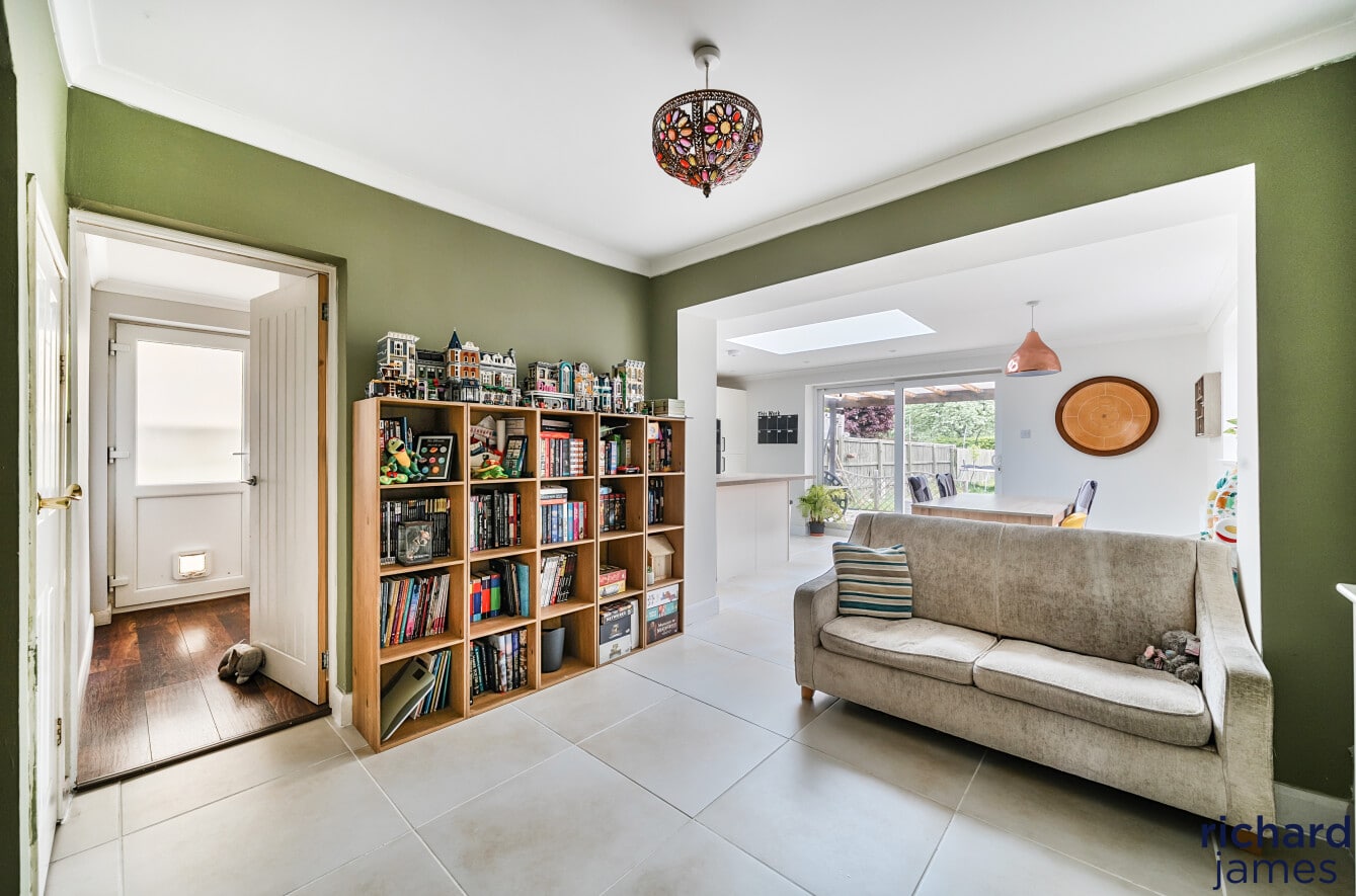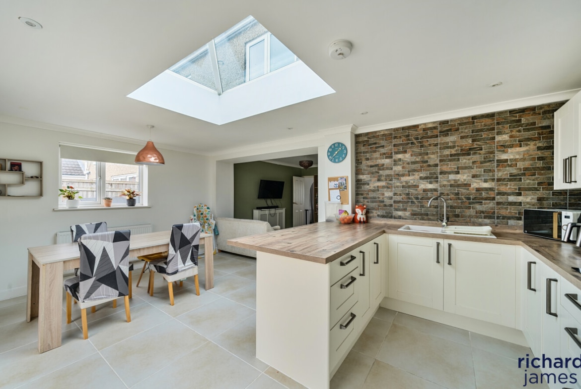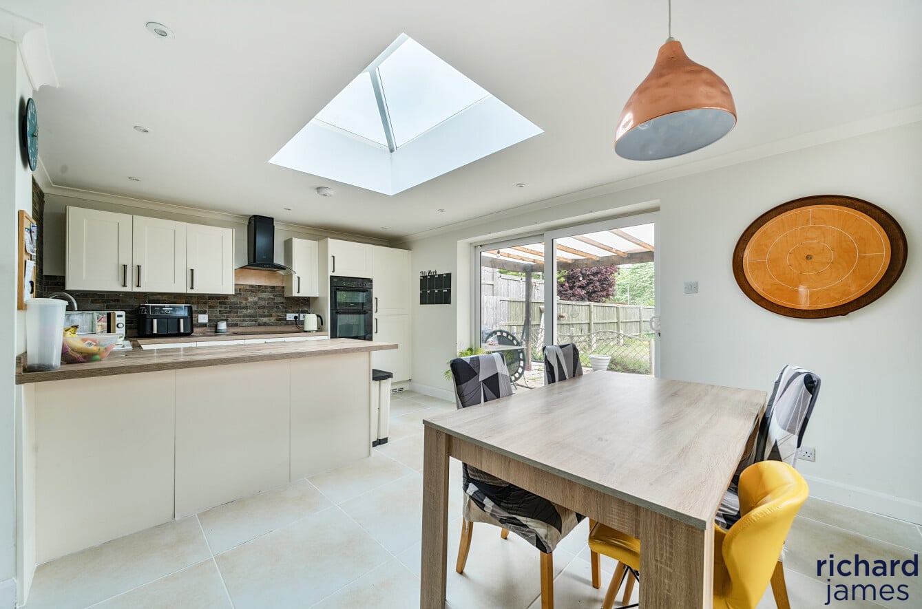 The heart of the home is the stunning open-plan kitchen/diner, complete with a lantern roof, a separate sitting area, and sliding doors opening onto the garden, creating a bright and welcoming space for entertaining and everyday life.