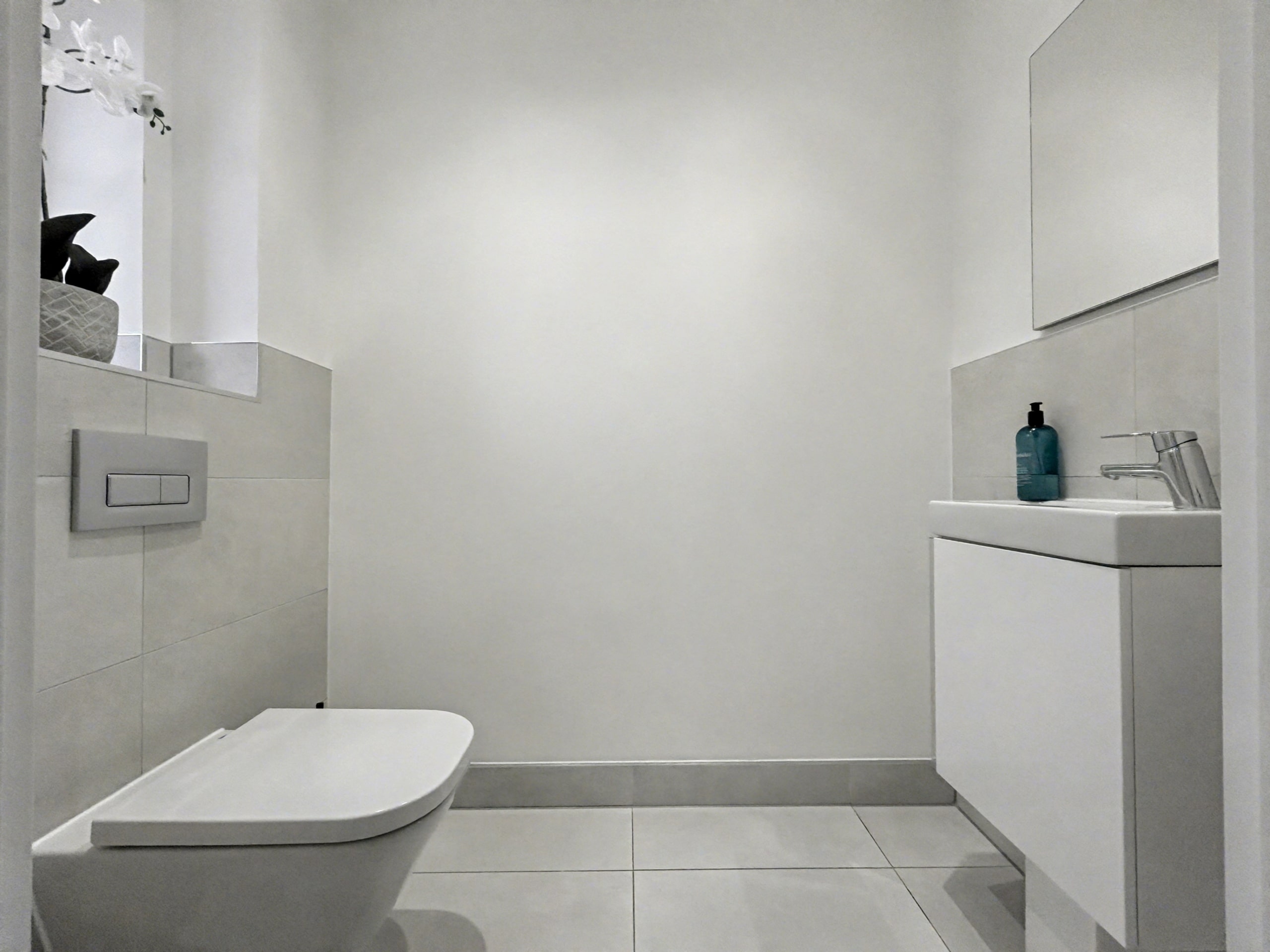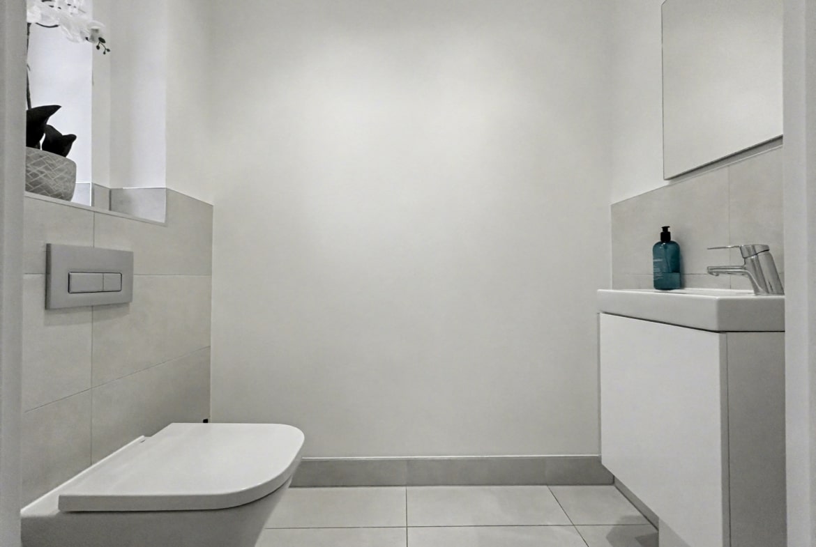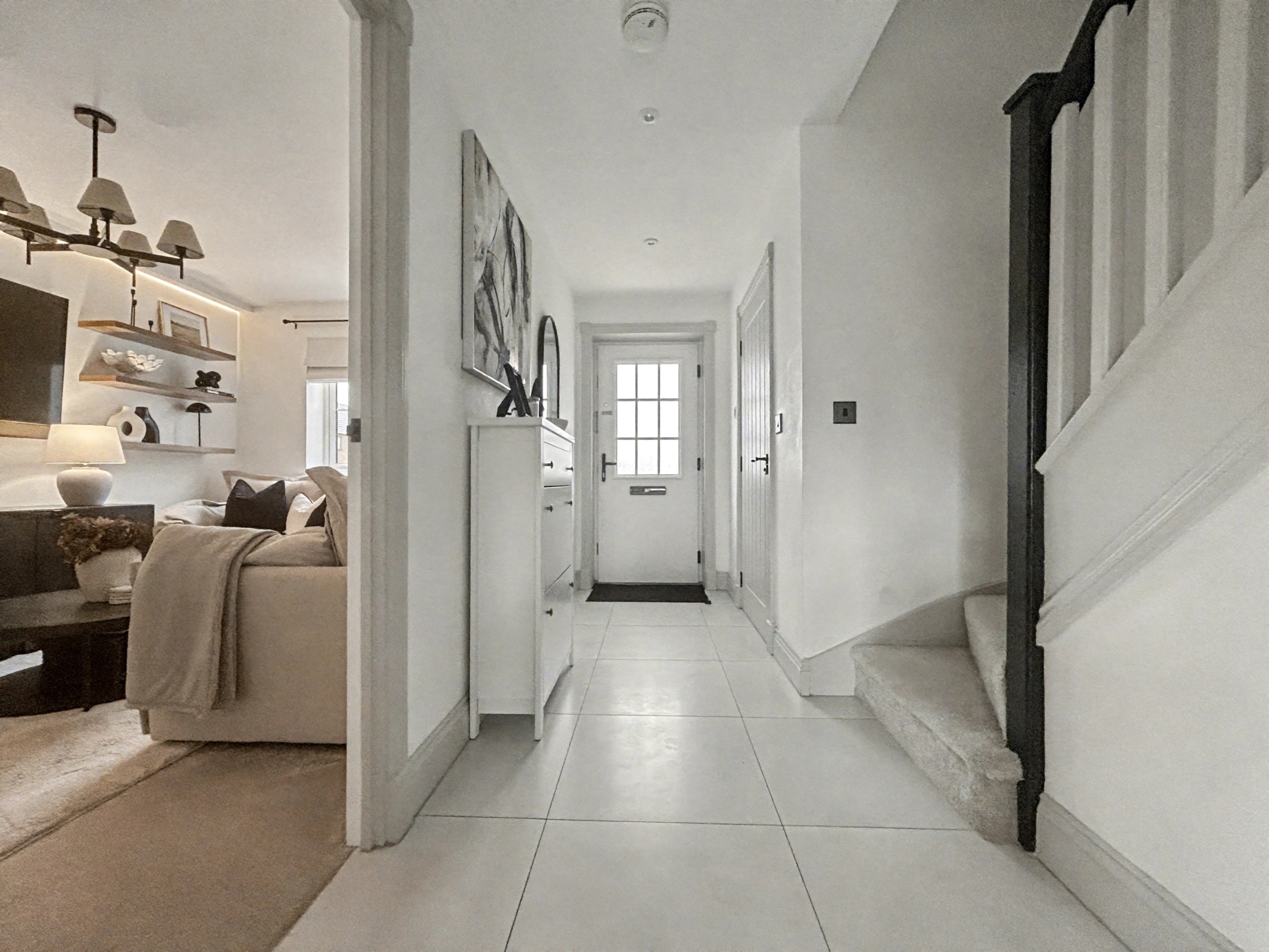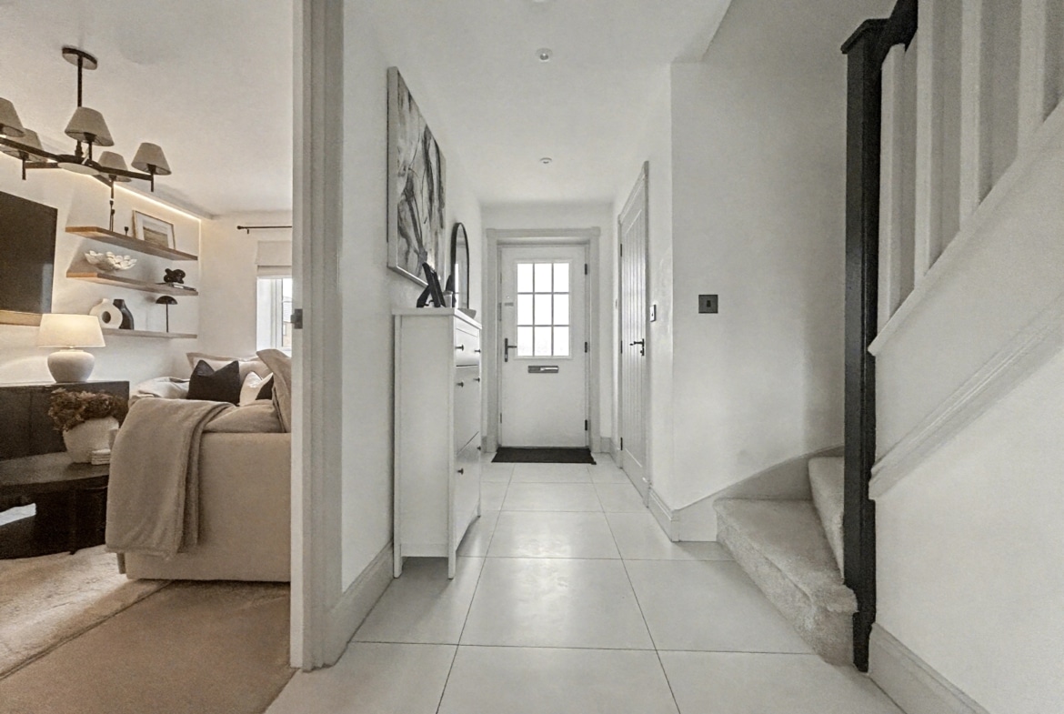 Step inside and be greeted by a bright and spacious hallway with WC leading to a stunning open-plan kitchen and dining room, the true heart of the home. Sleek floor-to-ceiling cabinetry, integrated appliances, and a neutral palette create a sophisticated feel, while French doors open onto the private rear garden — ideal for alfresco dining or quiet evenings outdoors.