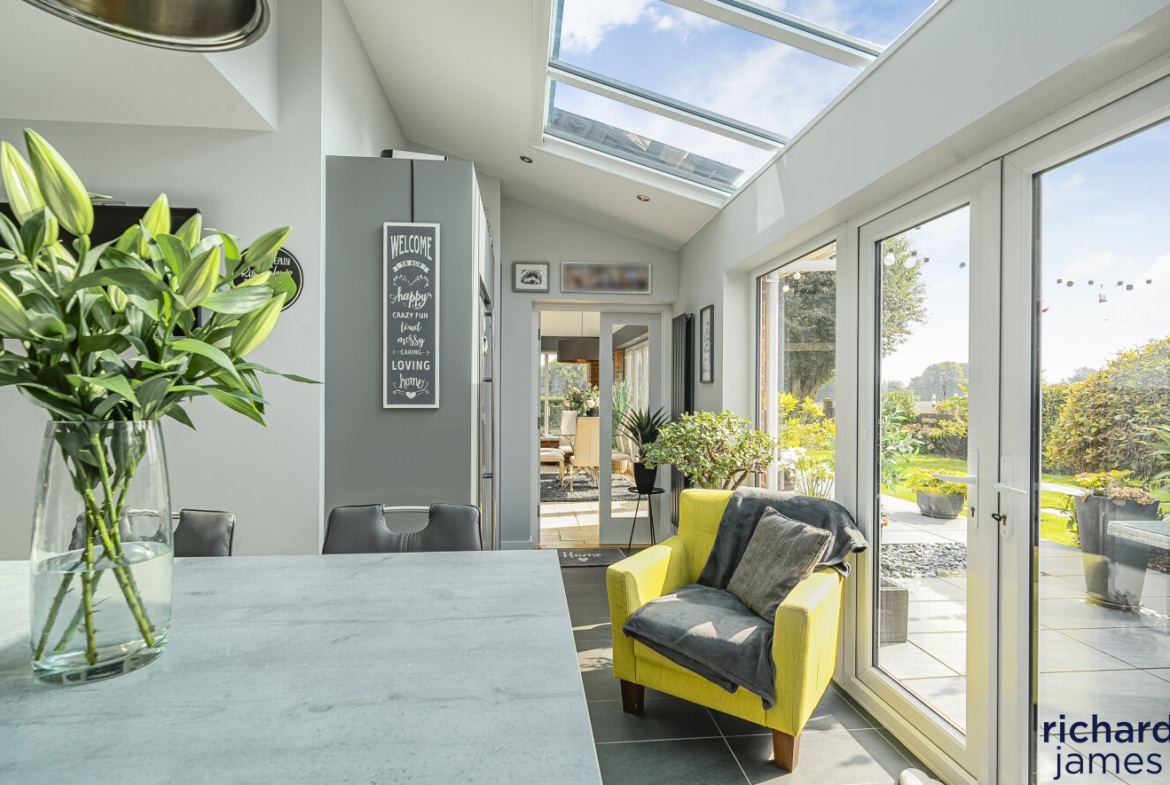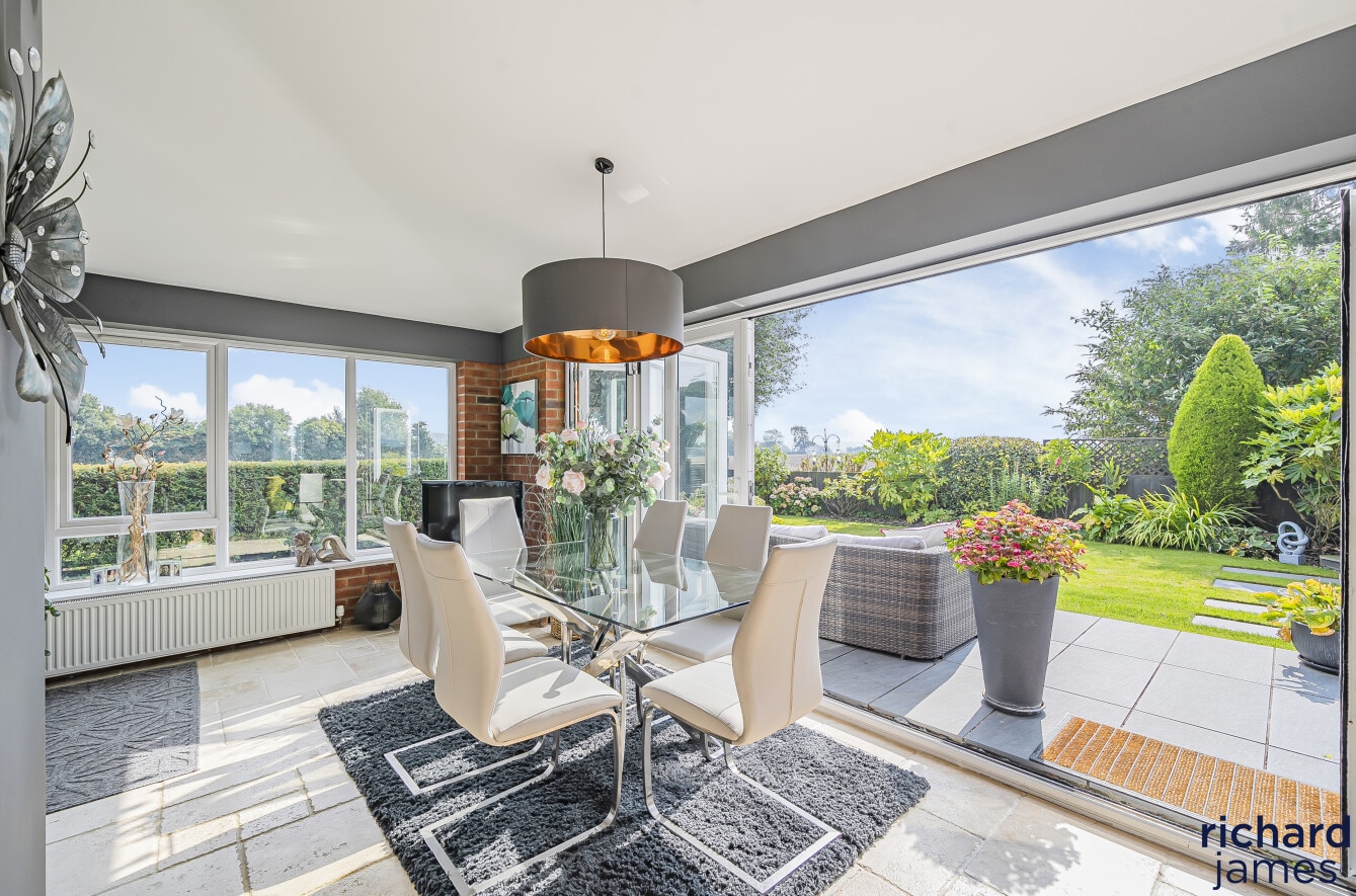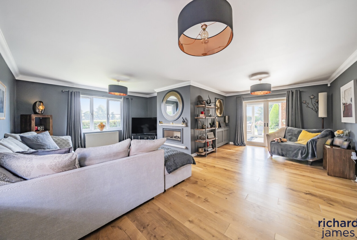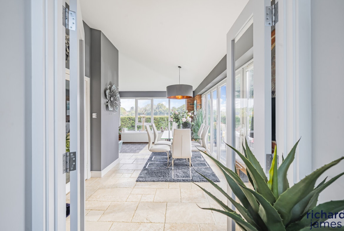 Occupying an enviable position, adjoining open farmland and offering far reaching views towards Liddington Hill and Barbury Castle. This immaculately presented, much extended and improved detached family home, is situated at the end of a private road, within the sought-after downland village of Chiseldon.