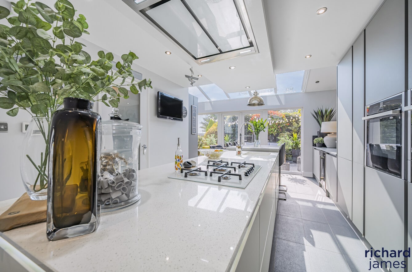 The spacious accommodation offers over 2200sqft of living space, laid out over three floors and also features a stunning wrap around ground floor extension, with bi-fold doors opening into the non-overlooked South facing Rear Garden.