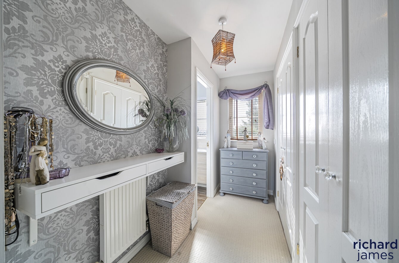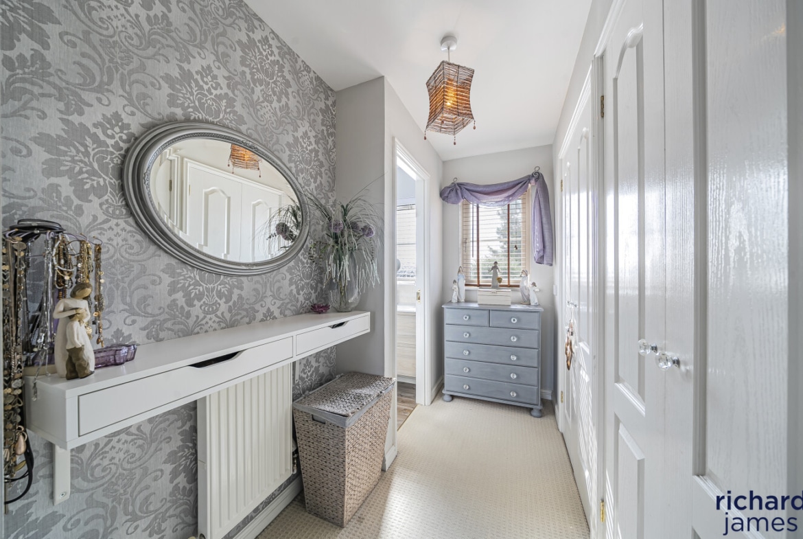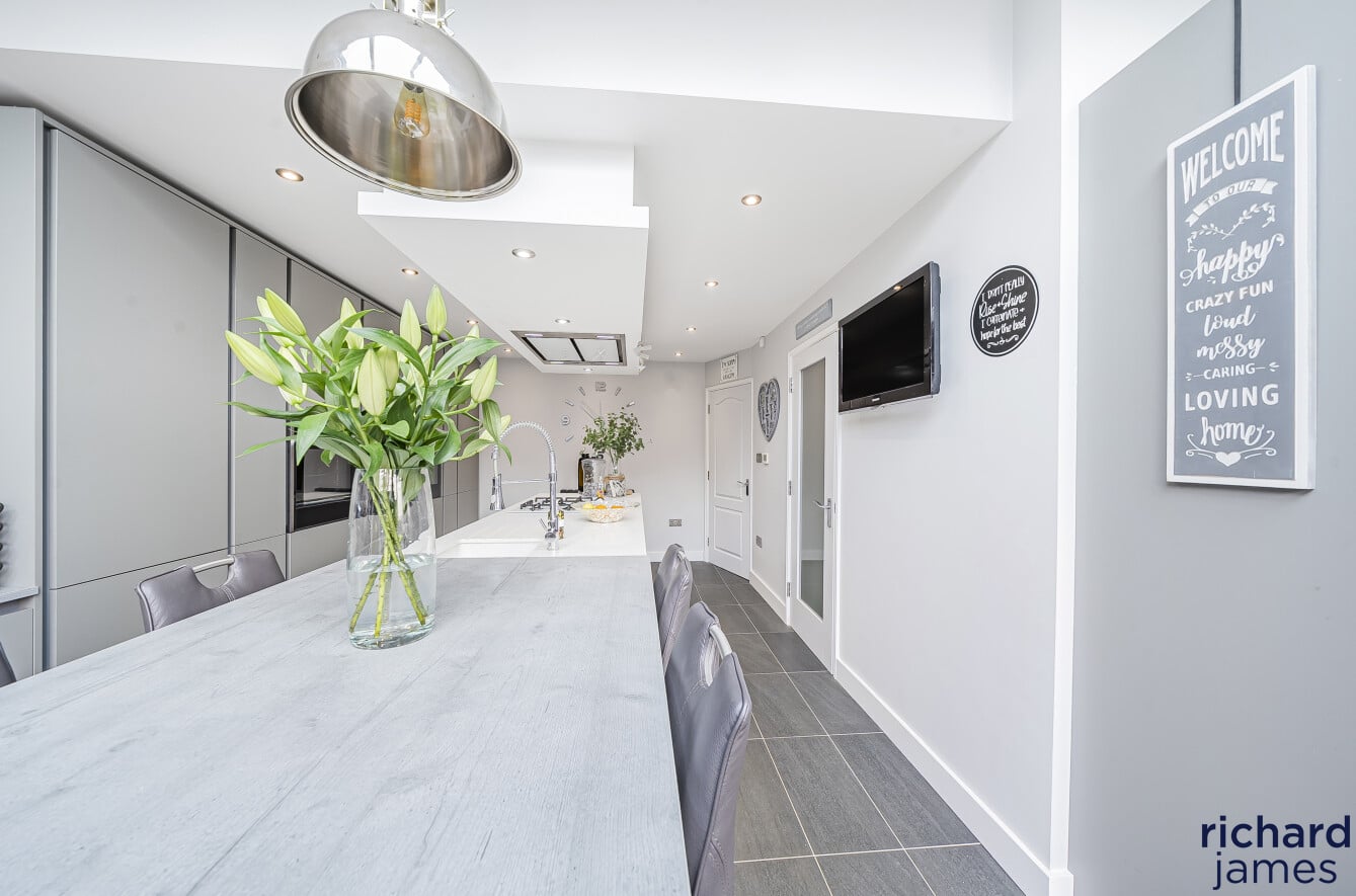 This exceptional family homes comprises: Hall, Cloakroom, Dining Room, spacious 22′ L’ shaped Sitting Room with inset log effect gas fire, 19′ Family/Sun Room with bi-fold doors, opening into Rear Garden and a fantastic 20′ refitted Kitchen/Breakfast Room with island and PVCu doors into the Rear Garden and separate Utility Room. With Three double Bedrooms, including the Master Suite, with Bedroom, Dressing Room and modern fitted Ensuite and further Family Bathroom. With two additional double Bedrooms and Shower Room, to the top floor.