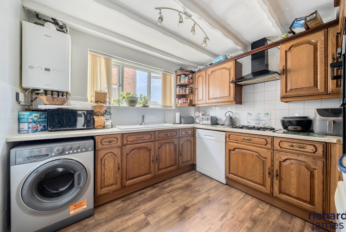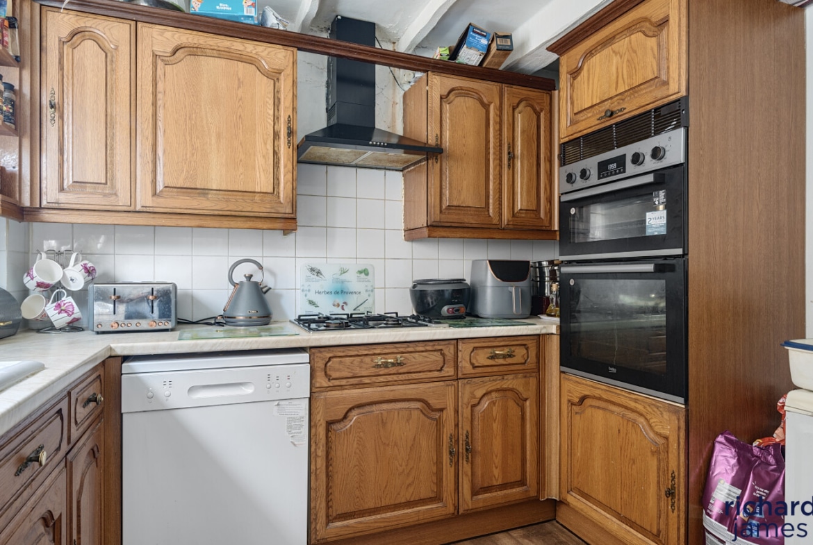 The kitchen is thoughtfully designed and well-proportioned, offering a practical space for cooking and everyday life. Outside, a detached garage provides excellent storage or workspace and the driveway offers ample off-street parking.