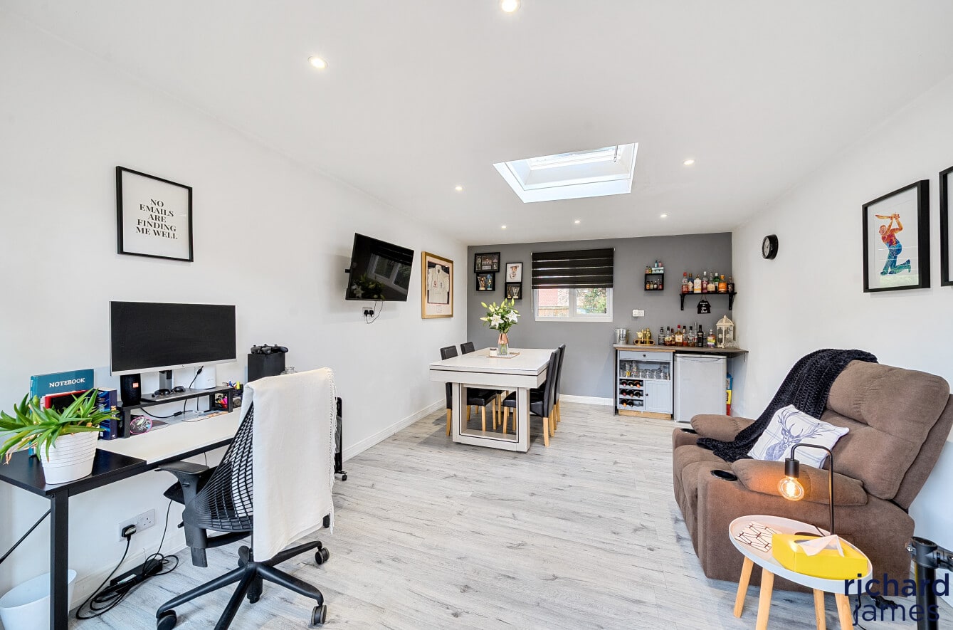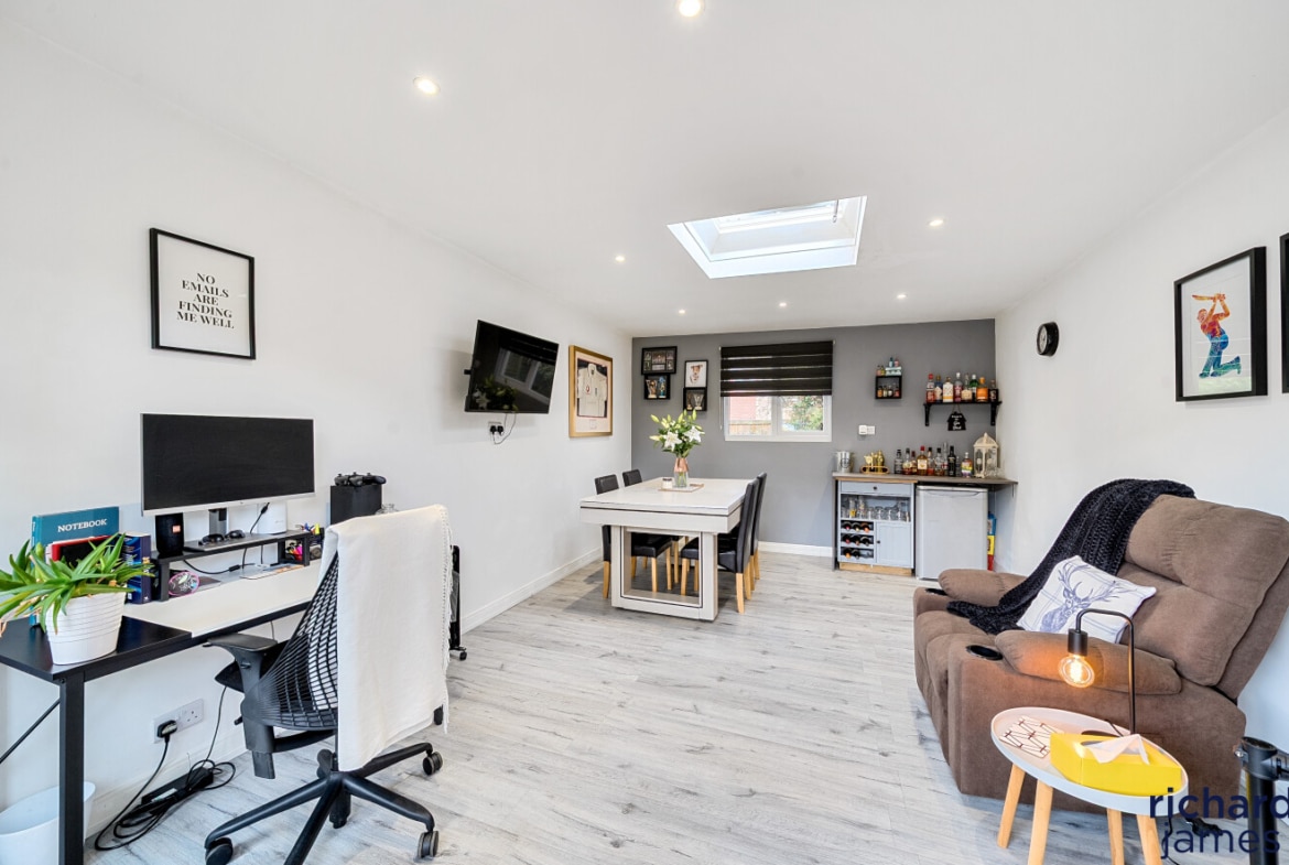 Bright, welcoming and perfect for family life, this three-bedroom home features a generous living room, a kitchen/diner with garden access, and three well-sized bedrooms. Outside, a large outbuilding offers endless potential as a home office, studio, gym, bar, or private retreat away from the family. The low-maintenance garden provides a peaceful space to relax or entertain. Ready to move into and full of character, this home is a must-see in a sought-after location.