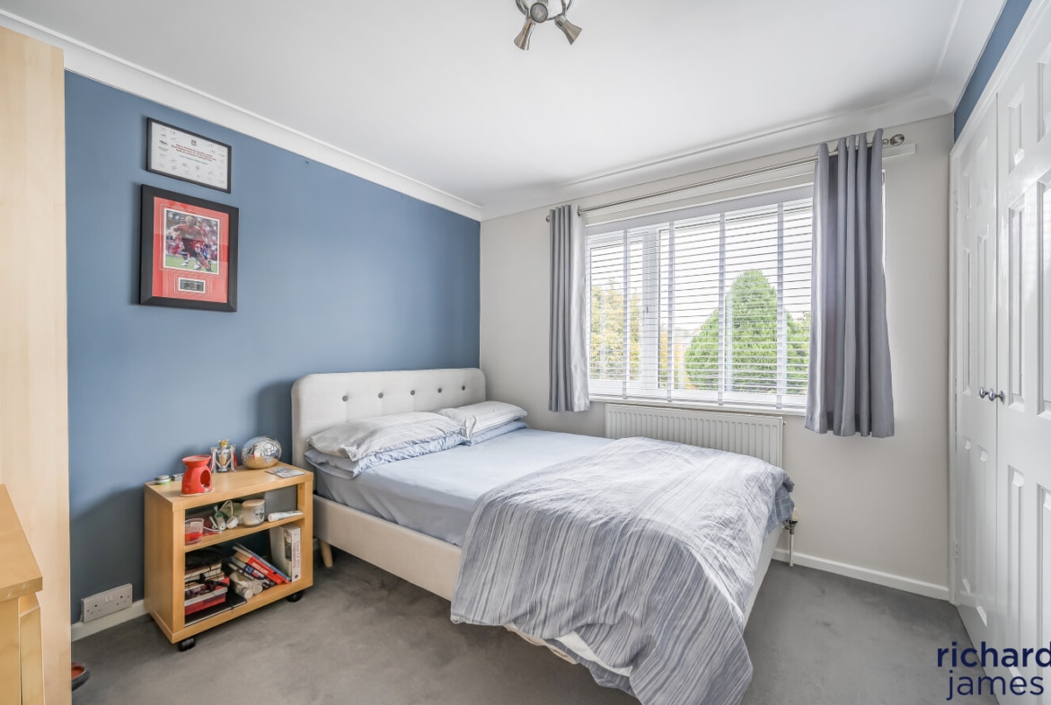 The accommodation comprises a well-fitted kitchen, a separate living room, and a ground-floor cloakroom. Upstairs, there are three well-proportioned bedrooms and a family bathroom.
