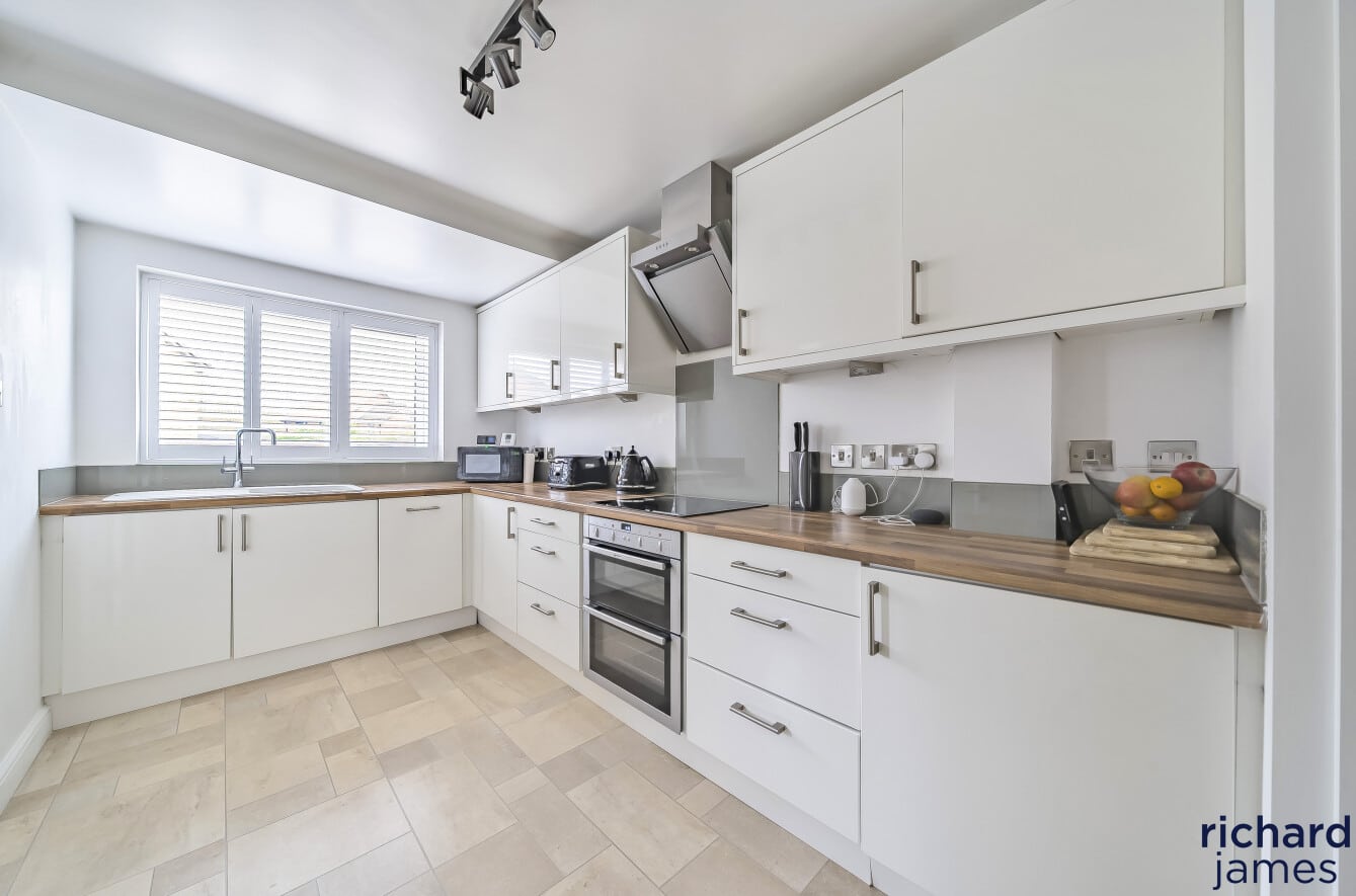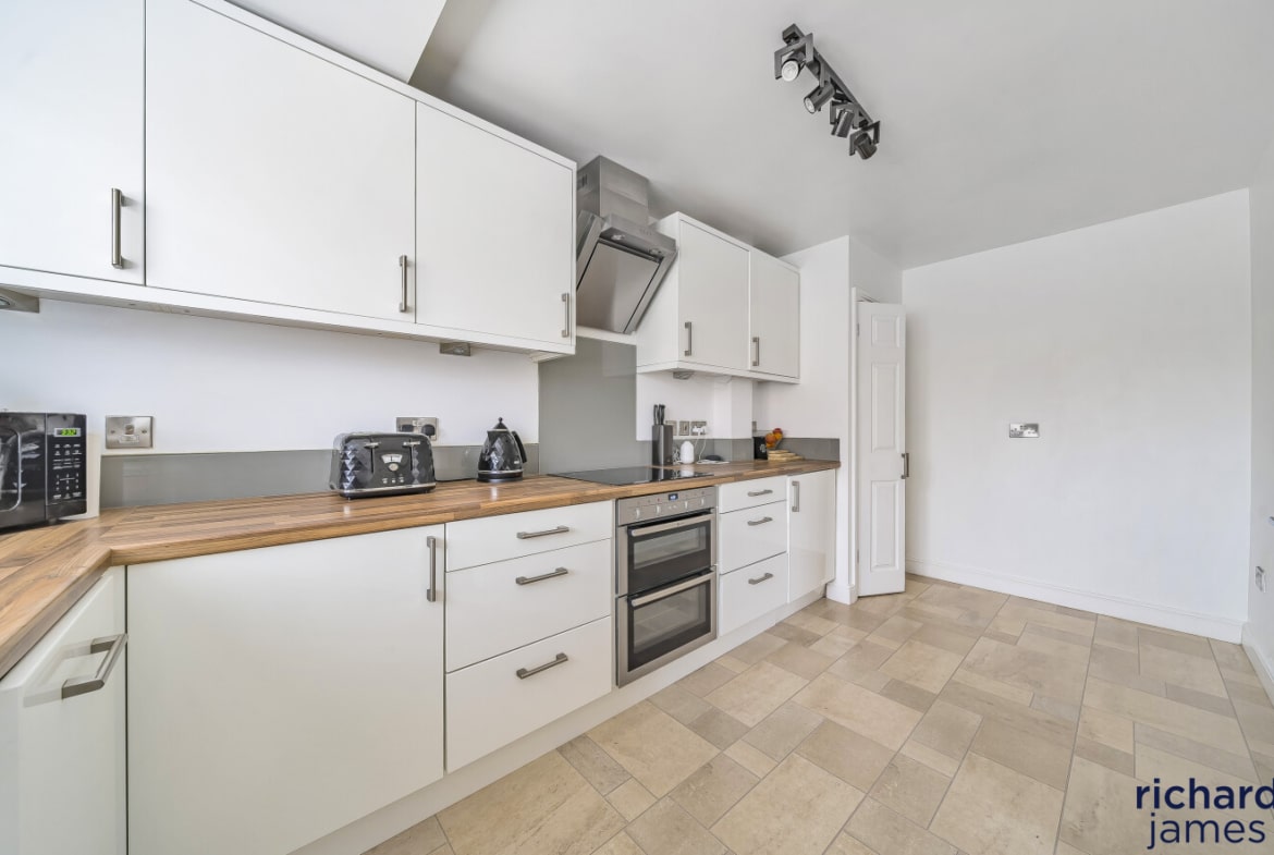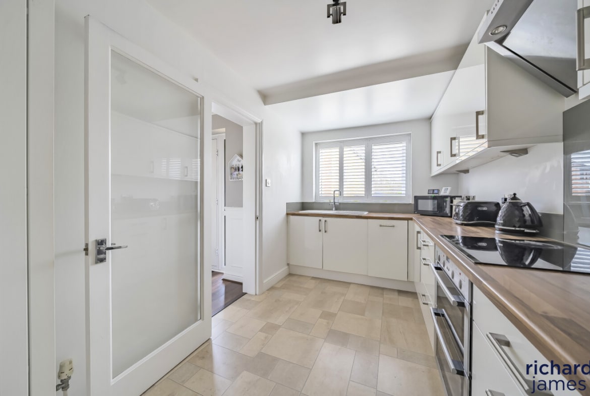 Step inside to discover a bright and airy living/dining room with double doors that open directly onto the private, enclosed rear garden—ideal for entertaining or relaxing outdoors. The refitted kitchen is flooded with natural light and boasts a sleek, modern finish, perfect for everyday cooking and hosting guests.