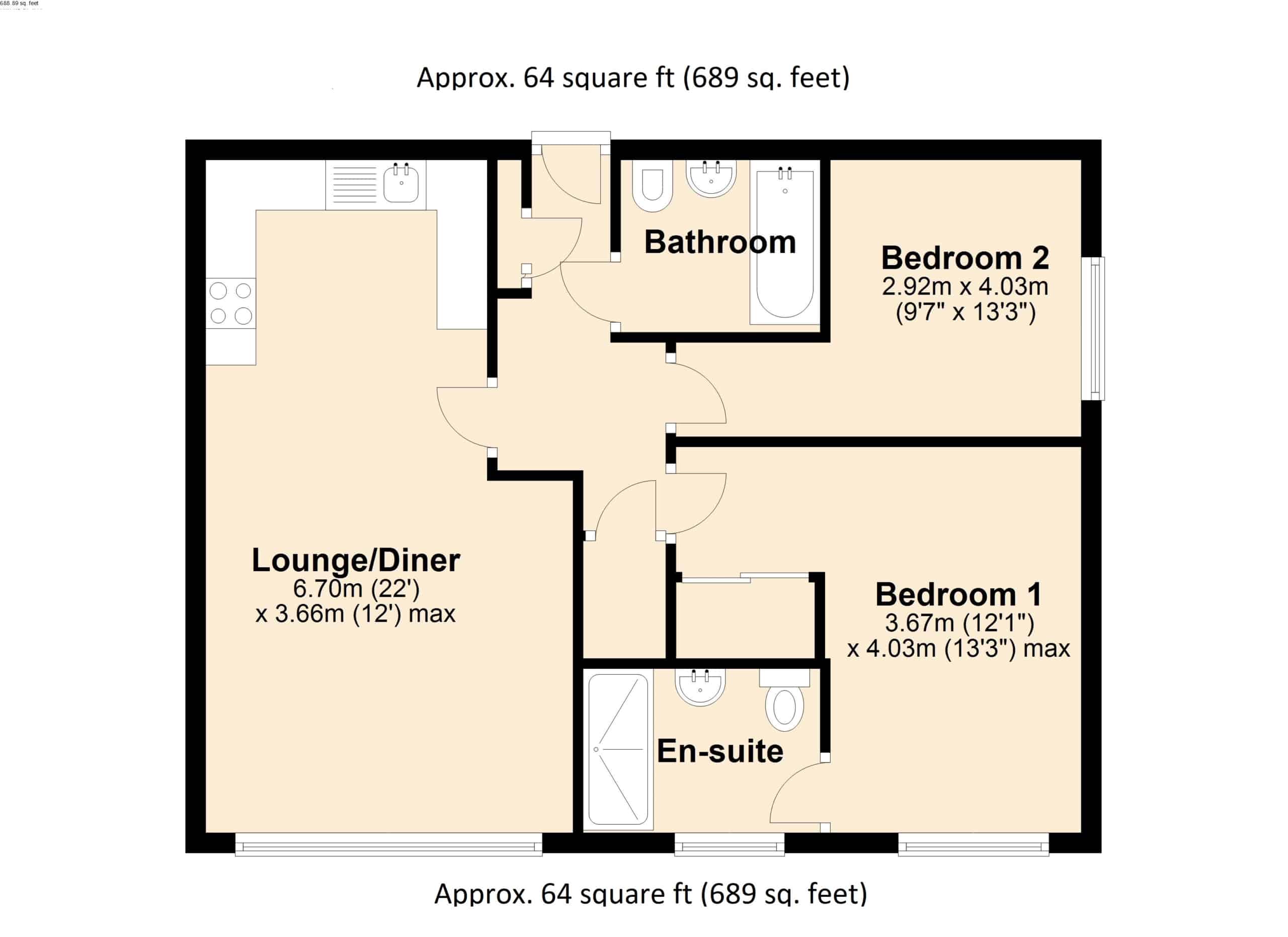 The spacious accommodation briefly comprises: communal hall with stairs and lift rising to the upper floor, apartment entrance hall, two bedrooms, en-suite shower room to the main bedroom, living/dining room which can be found open plan to the kitchen, and separate family bathroom.