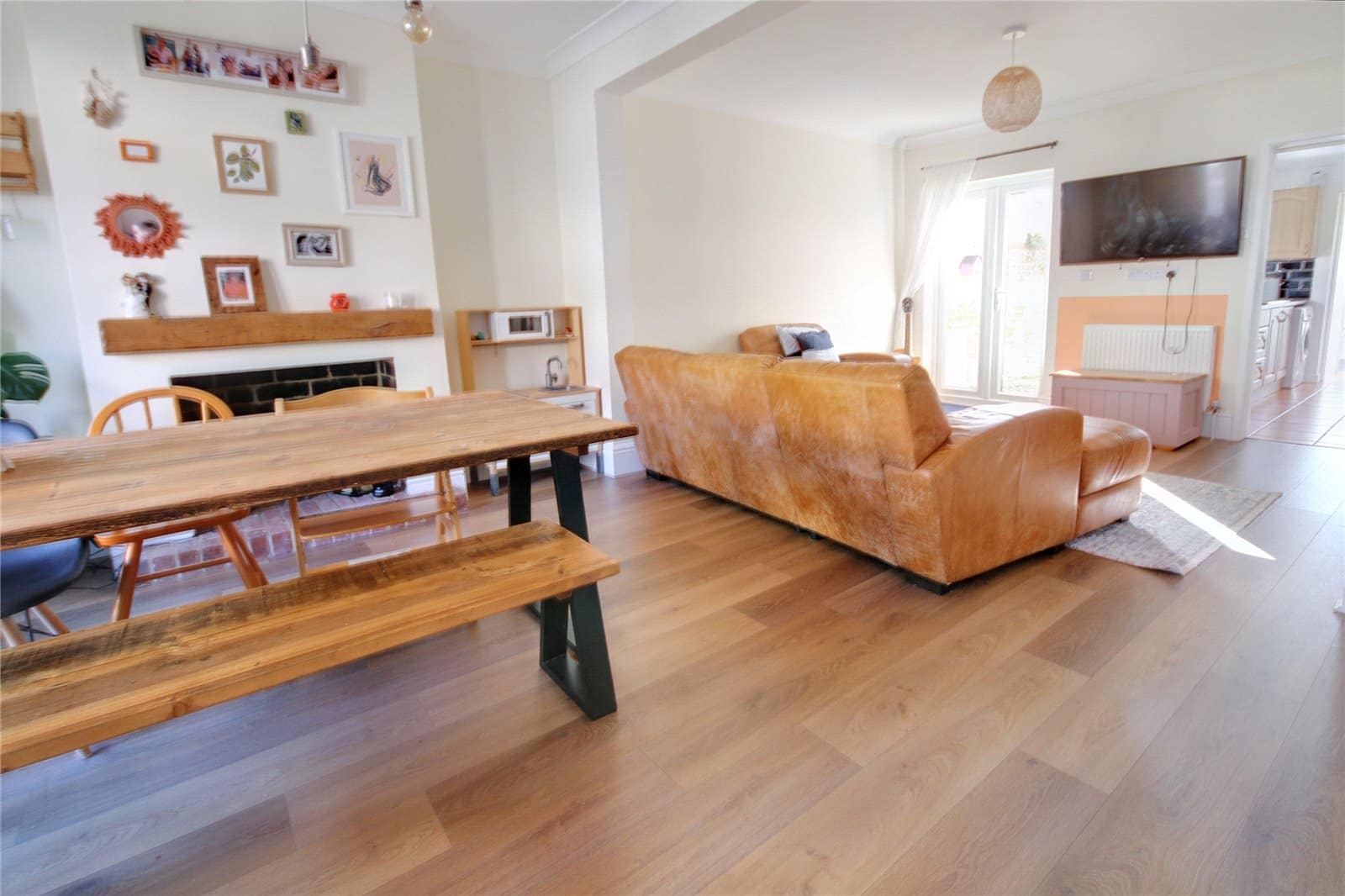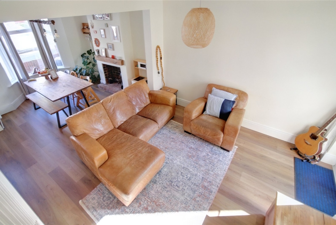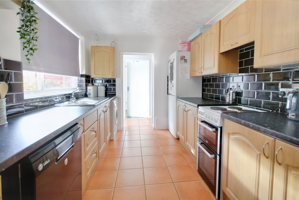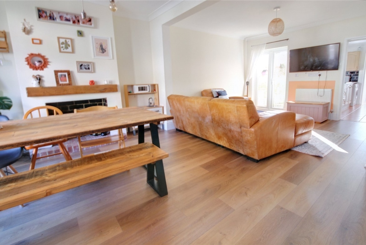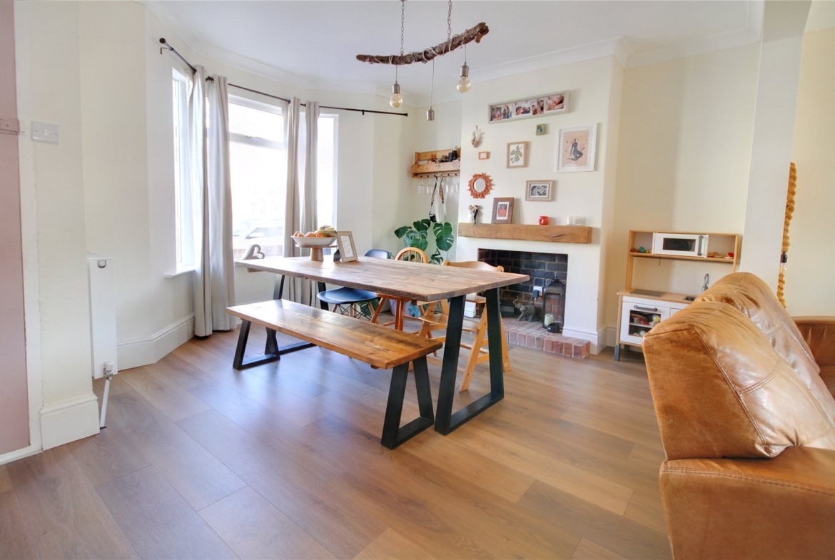 Step inside through the welcoming entrance porch and into a spacious, bay-fronted lounge/dining room. Bathed in natural light and offering generous proportions, it’s an inviting space for everyday living or entertaining guests. The modern kitchen sits beyond, thoughtfully designed with ample storage and workspace, followed by an inner lobby leading to a contemporary ground-floor bathroom.