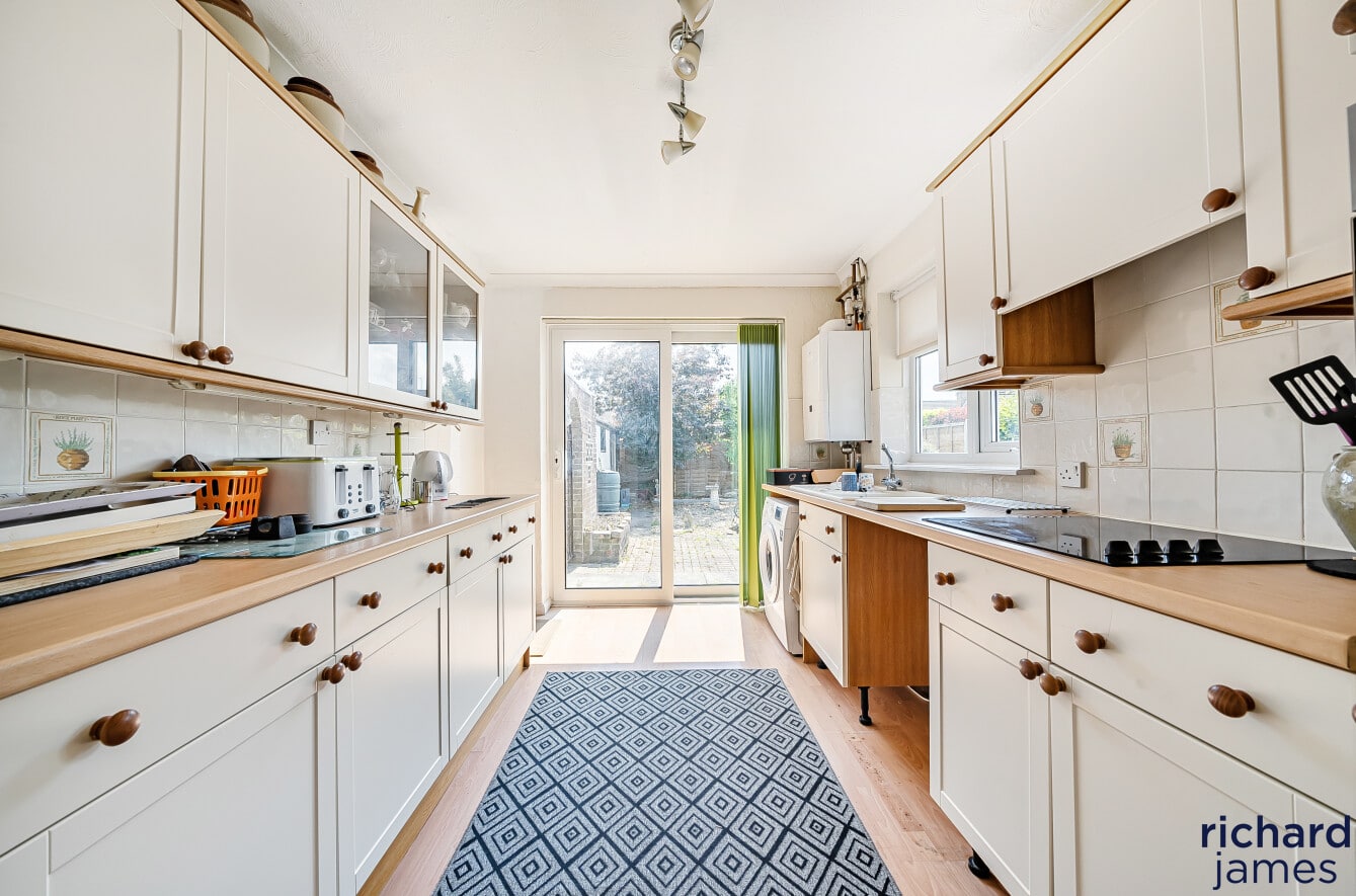 This property a generous driveway with parking for multiple vehicles which provides access to the detached garage via up and over door.