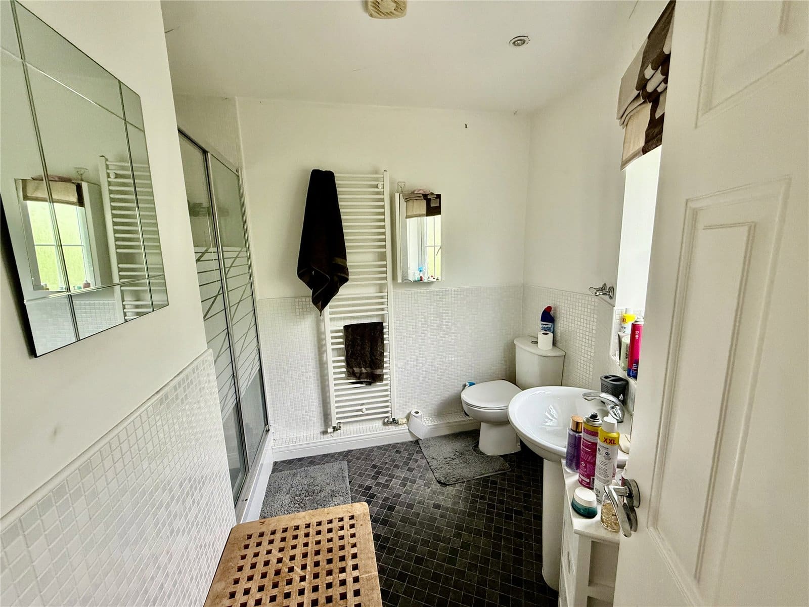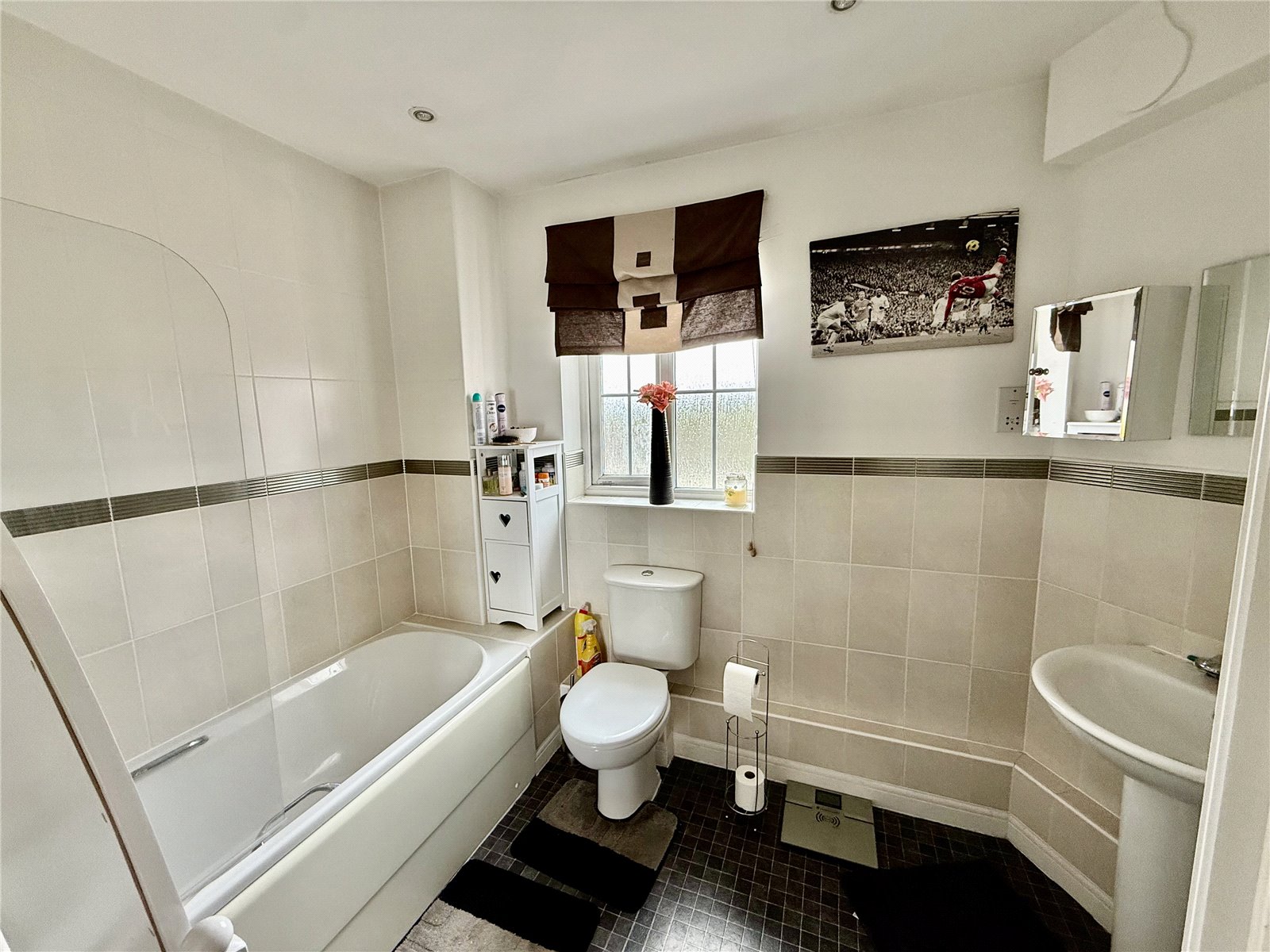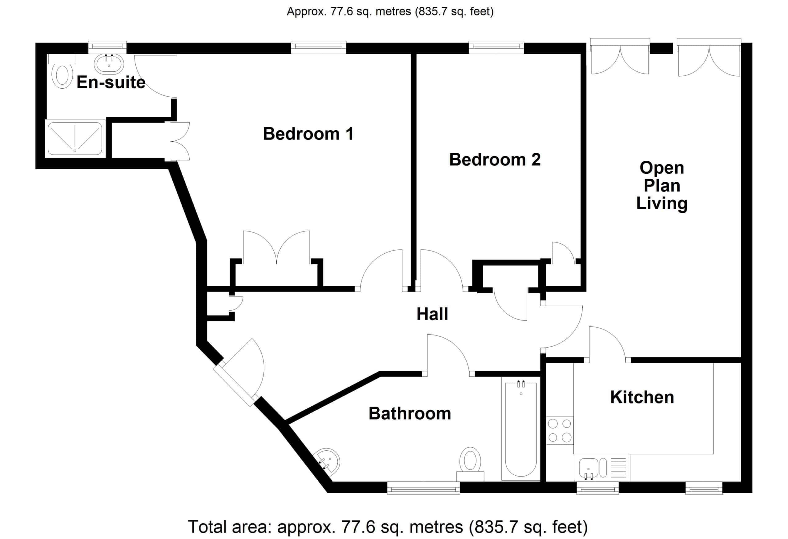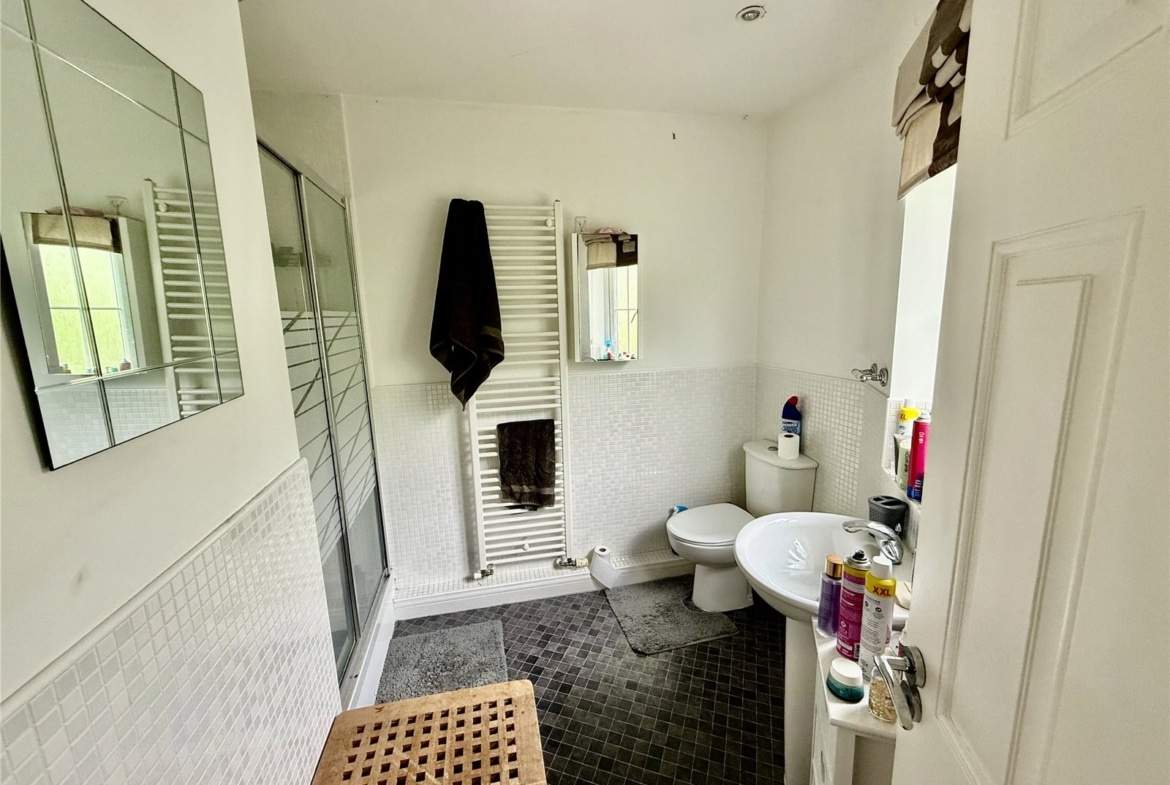 Both bedrooms are generously sized doubles and feature fitted wardrobes. The master bedroom benefits from its own ensuite shower room, while the main family bathroom includes a shower over the bath. With windows in every room, the apartment is filled with natural light throughout. Additional features include gas central heating and one allocated parking space.