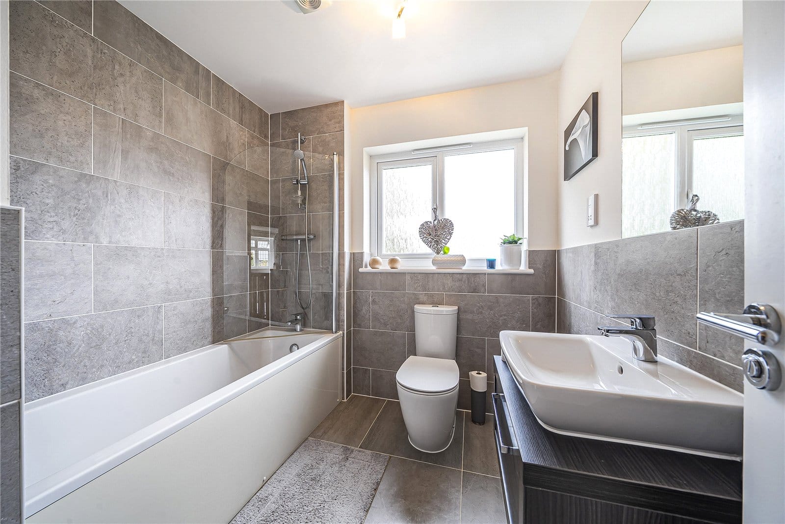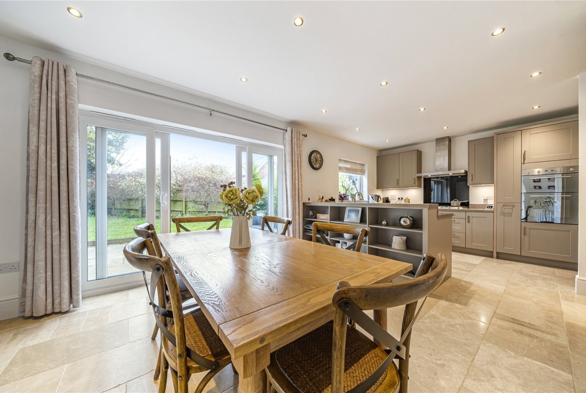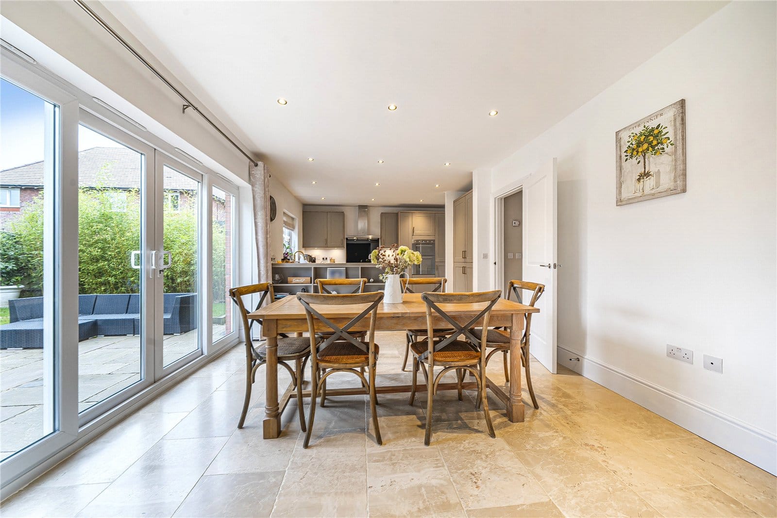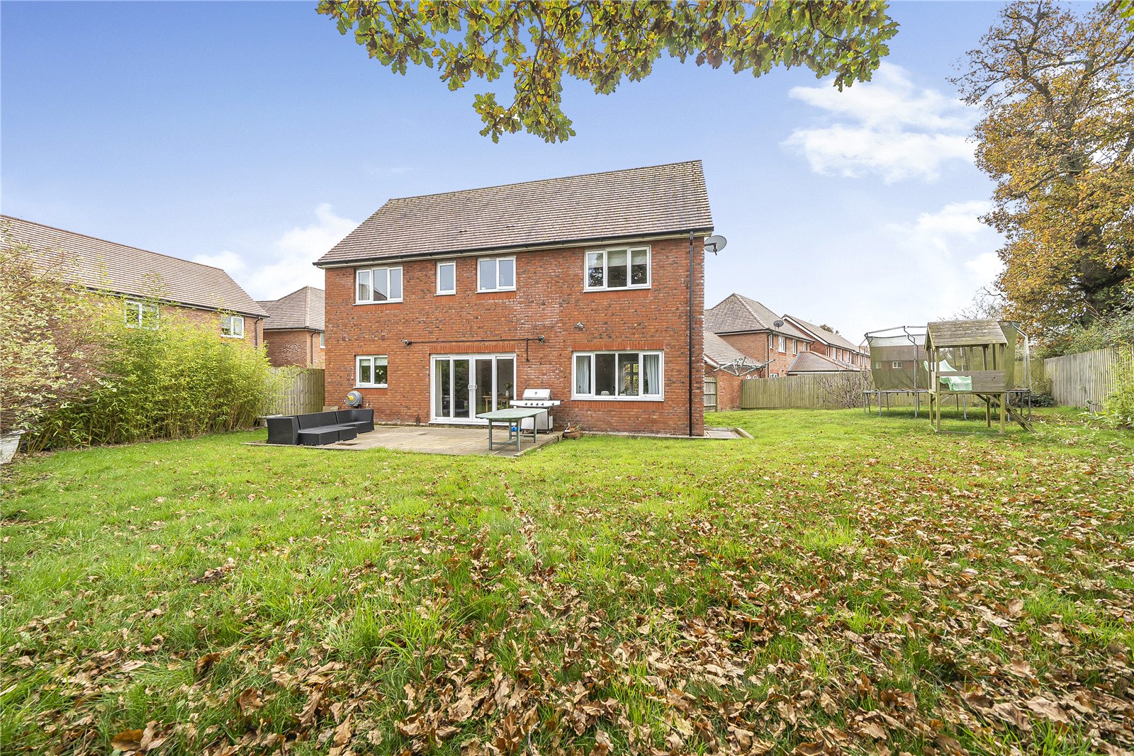 The property comprises; spacious entrance hall, WC, generous study/snug room, integrated kitchen diner, separate utility space and full length dual-aspect living room. Upstairs you will find four double bedrooms with ample storage space, including two en suites and a beautiful bay window in the master. There is also a family bathroom with a shower over the bath. The property also benefits from a larger than usual wrap-around rear garden which backs onto a copse for privacy, as well as a front lawn, spacious driveway and double garage with loft space.