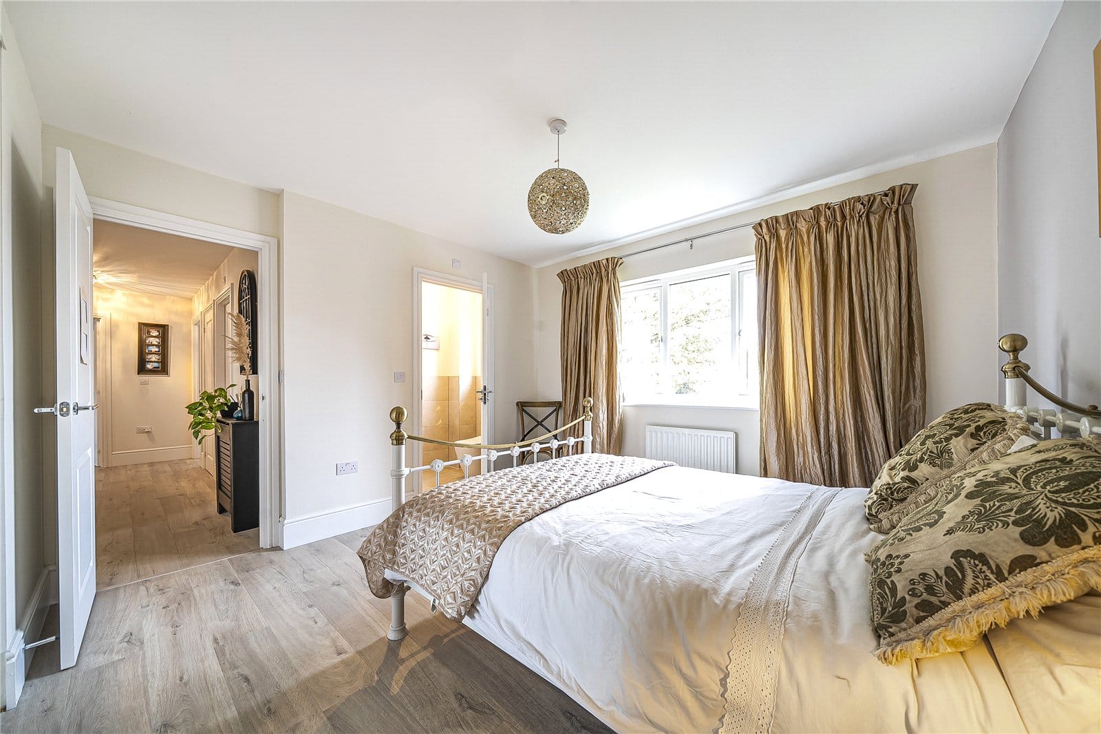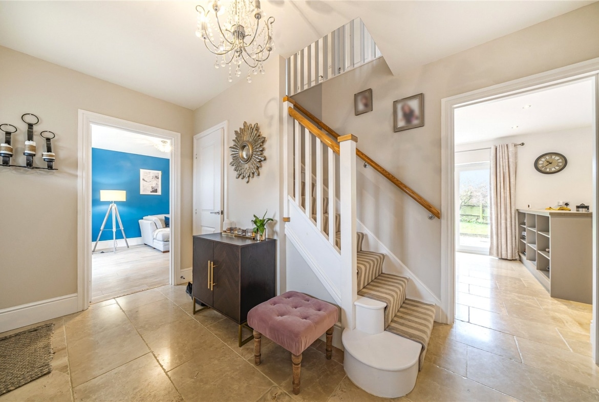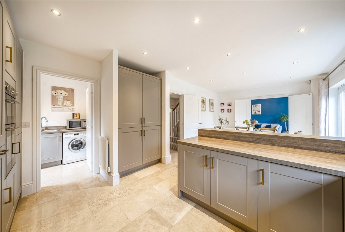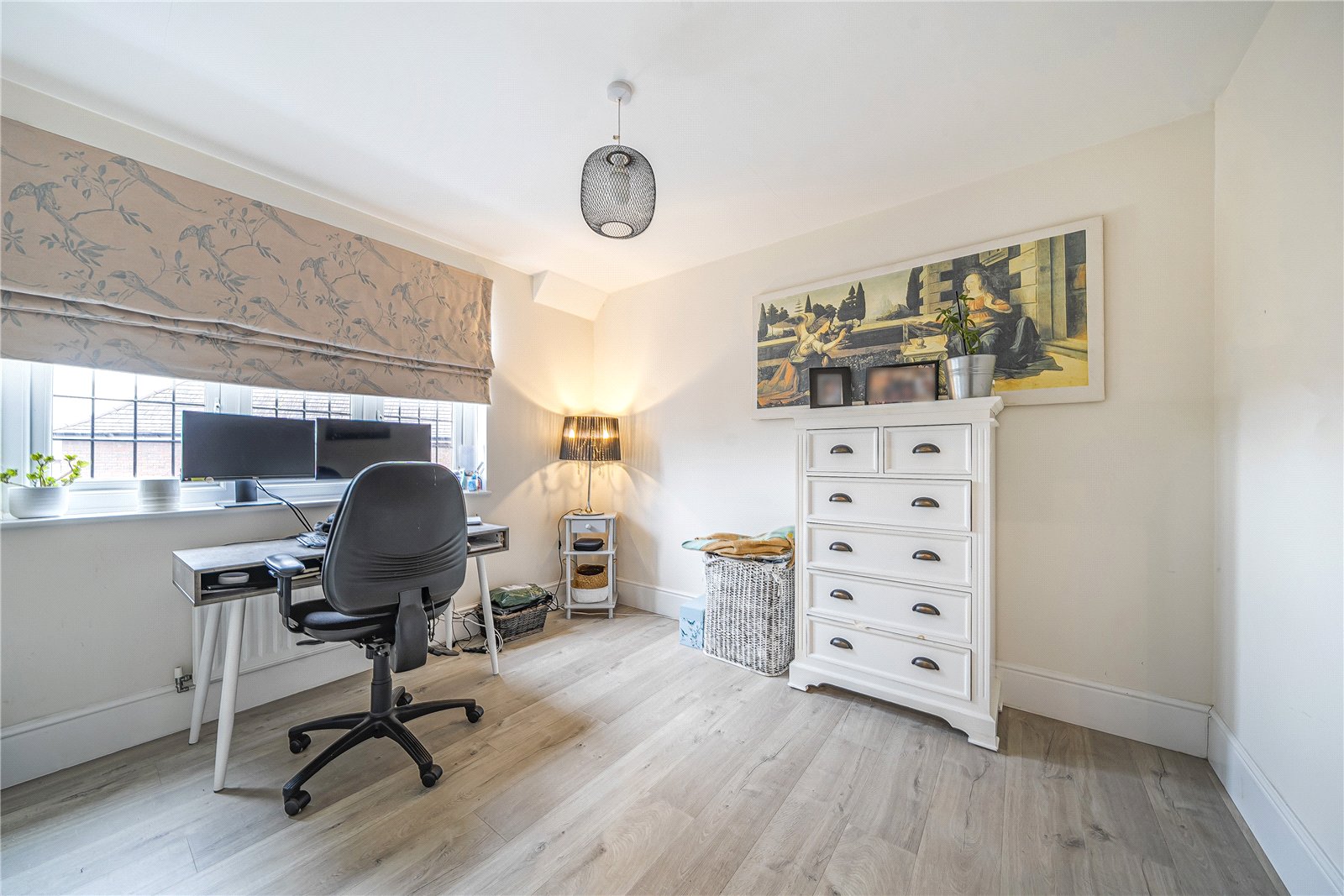 The property comprises; spacious entrance hall, WC, generous study/snug room, integrated kitchen diner, separate utility space and full length dual-aspect living room. Upstairs you will find four double bedrooms with ample storage space, including two en suites and a beautiful bay window in the master. There is also a family bathroom with a shower over the bath. The property also benefits from a larger than usual wrap-around rear garden which backs onto a copse for privacy, as well as a front lawn, spacious driveway and double garage with loft space.