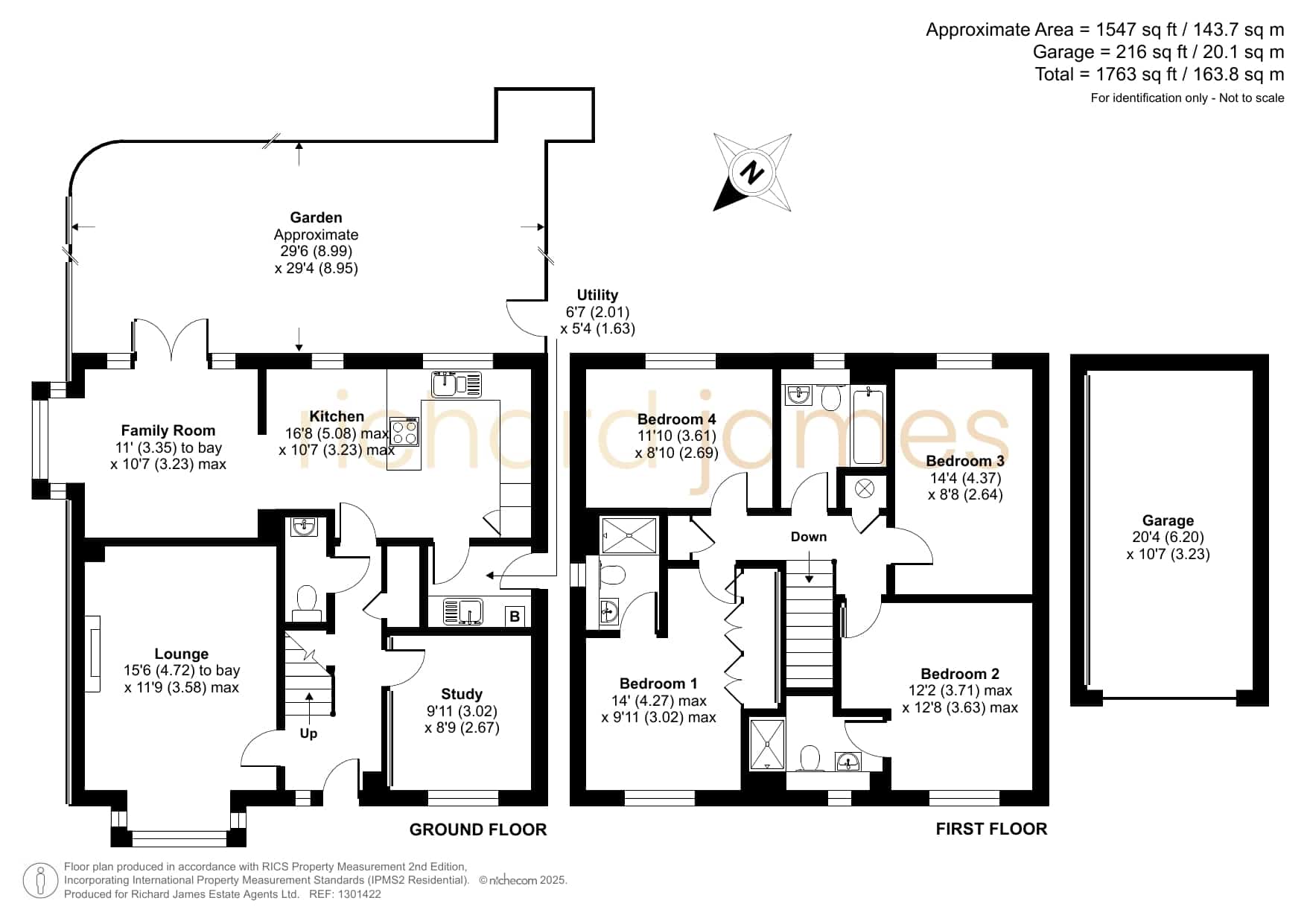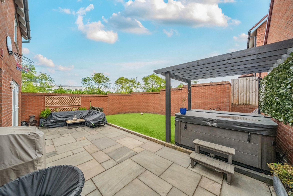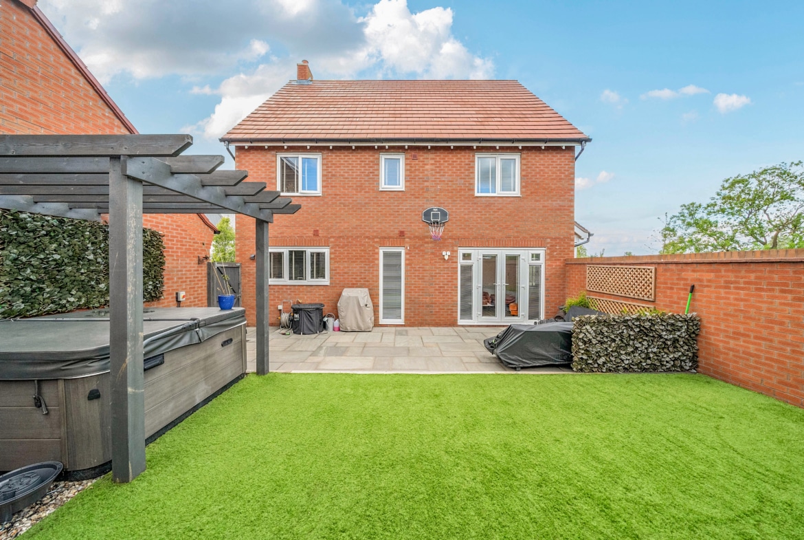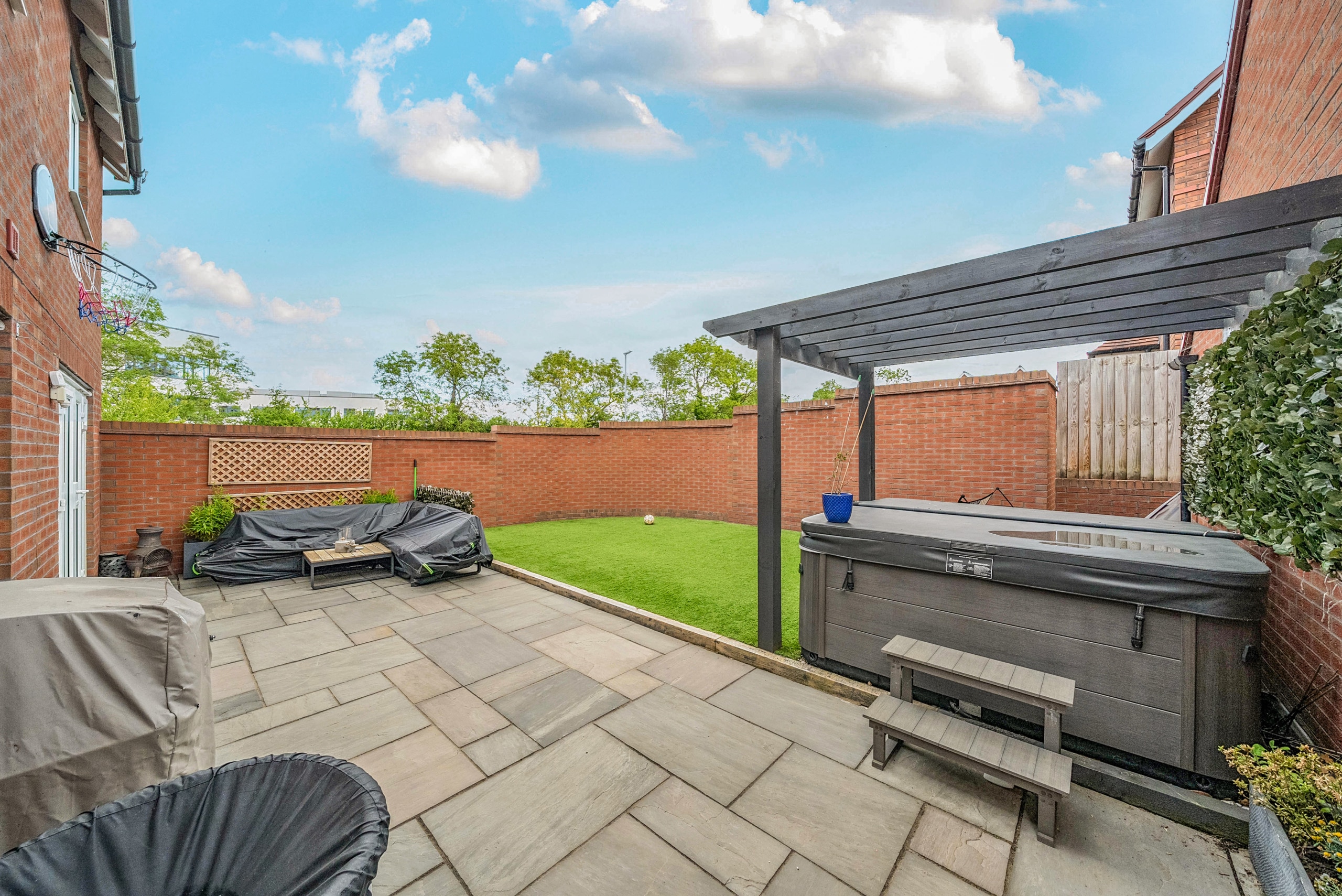 Externally, the landscaped rear garden offers a tranquil retreat, ideal for outdoor dining and summer gatherings. Side access leads to a detached garage and driveway, providing ample off-street parking and additional storage.
