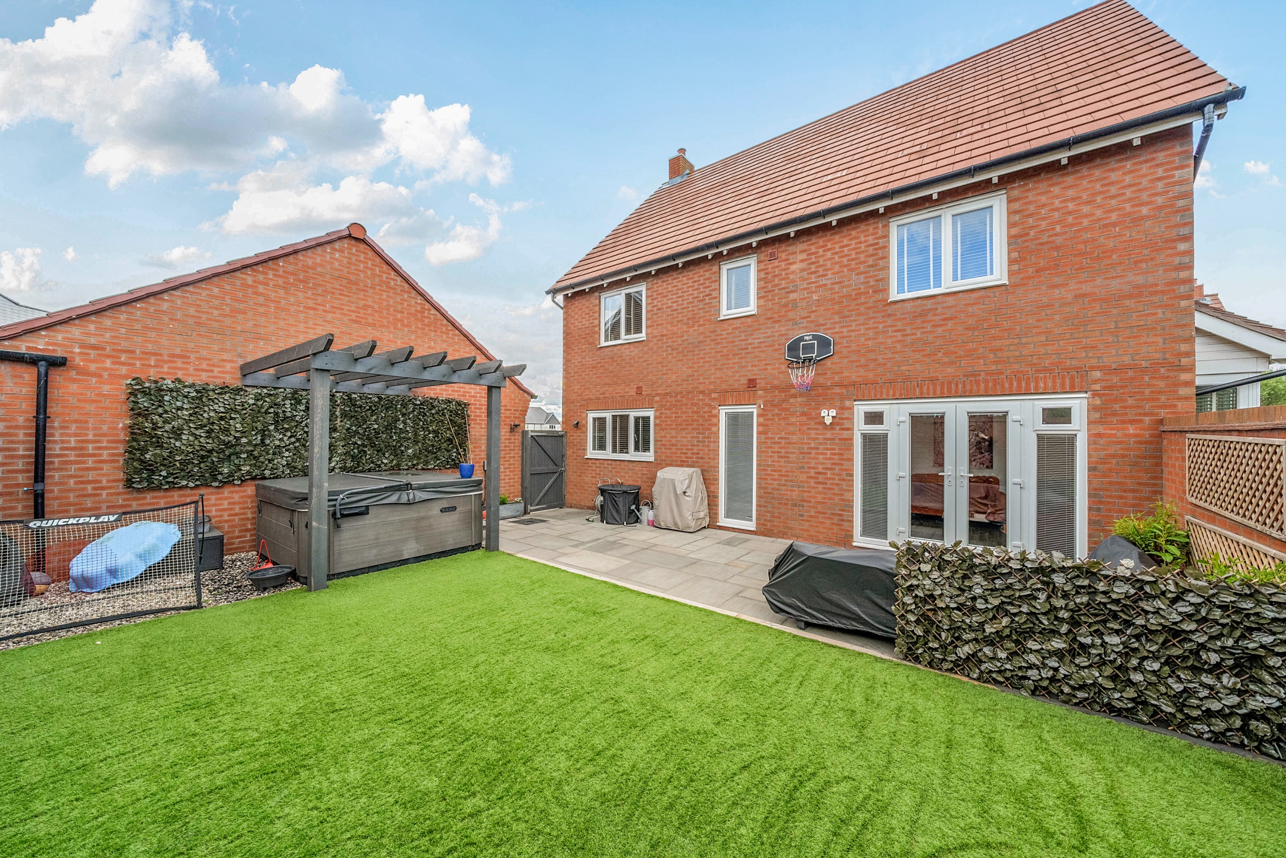 Upstairs, the home continues to impress with four spacious double bedrooms. The luxurious principal bedroom features stylish built-in wardrobes and a sleek ensuite shower room. A second double bedroom also benefits from its own ensuite, offering comfort and privacy for guests or older children. Two further double bedrooms provide ample space for family living or flexible use, such as a playroom or additional office.