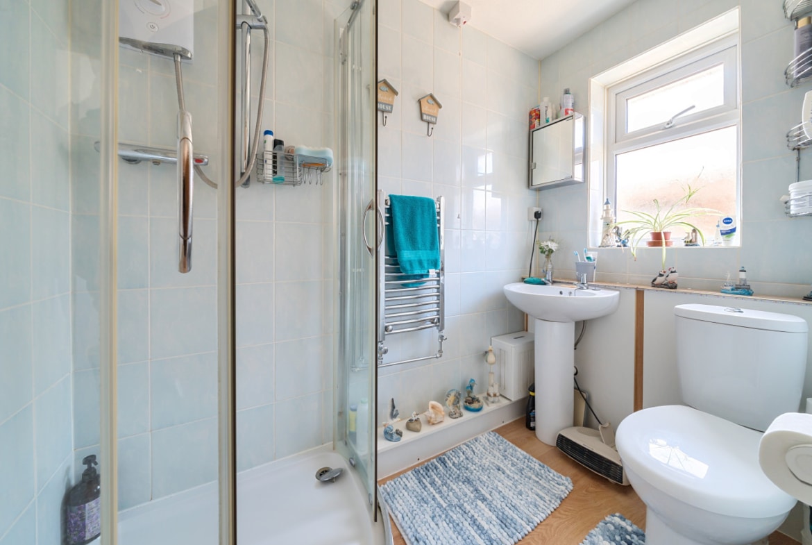 The shower room offers a convenient shower cubicle, providing a modern and efficient bathing experience.