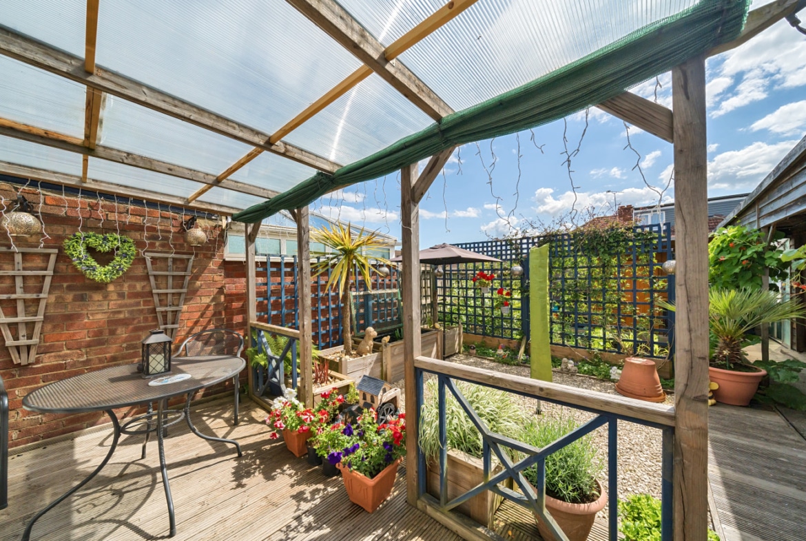 The living area is spacious and offers enough room for both living and dining purposes. French patio doors lead directly from the living area to a delightful decking area in the garden, creating a seamless flow between indoor and outdoor living spaces.