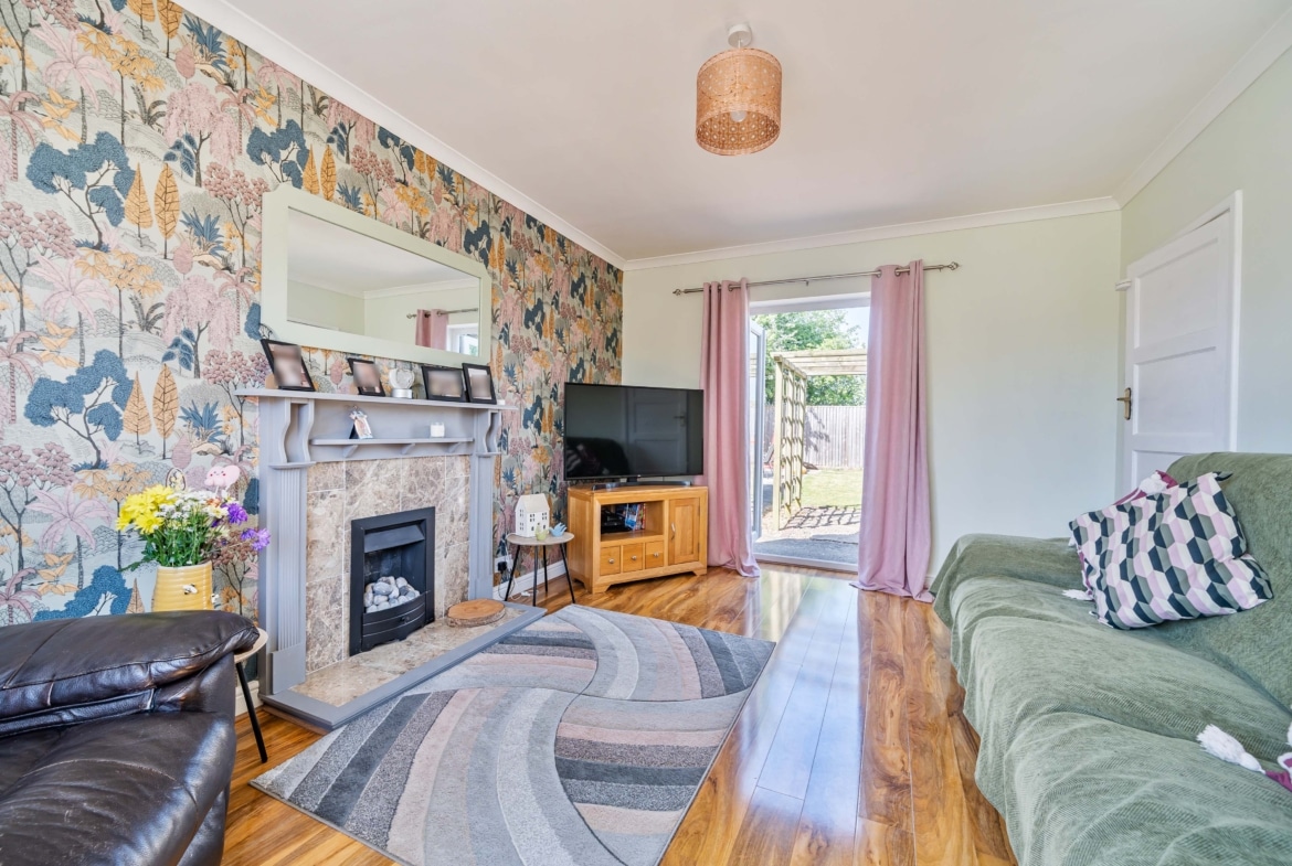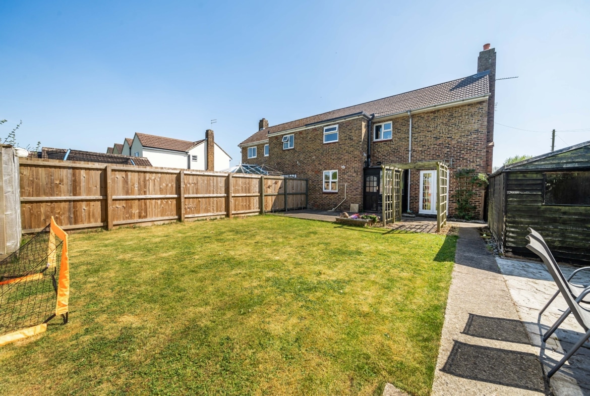 The property boasts a private garden—perfect for family gatherings and outdoor play. To the front, the property provides driveway parking with two spaces.