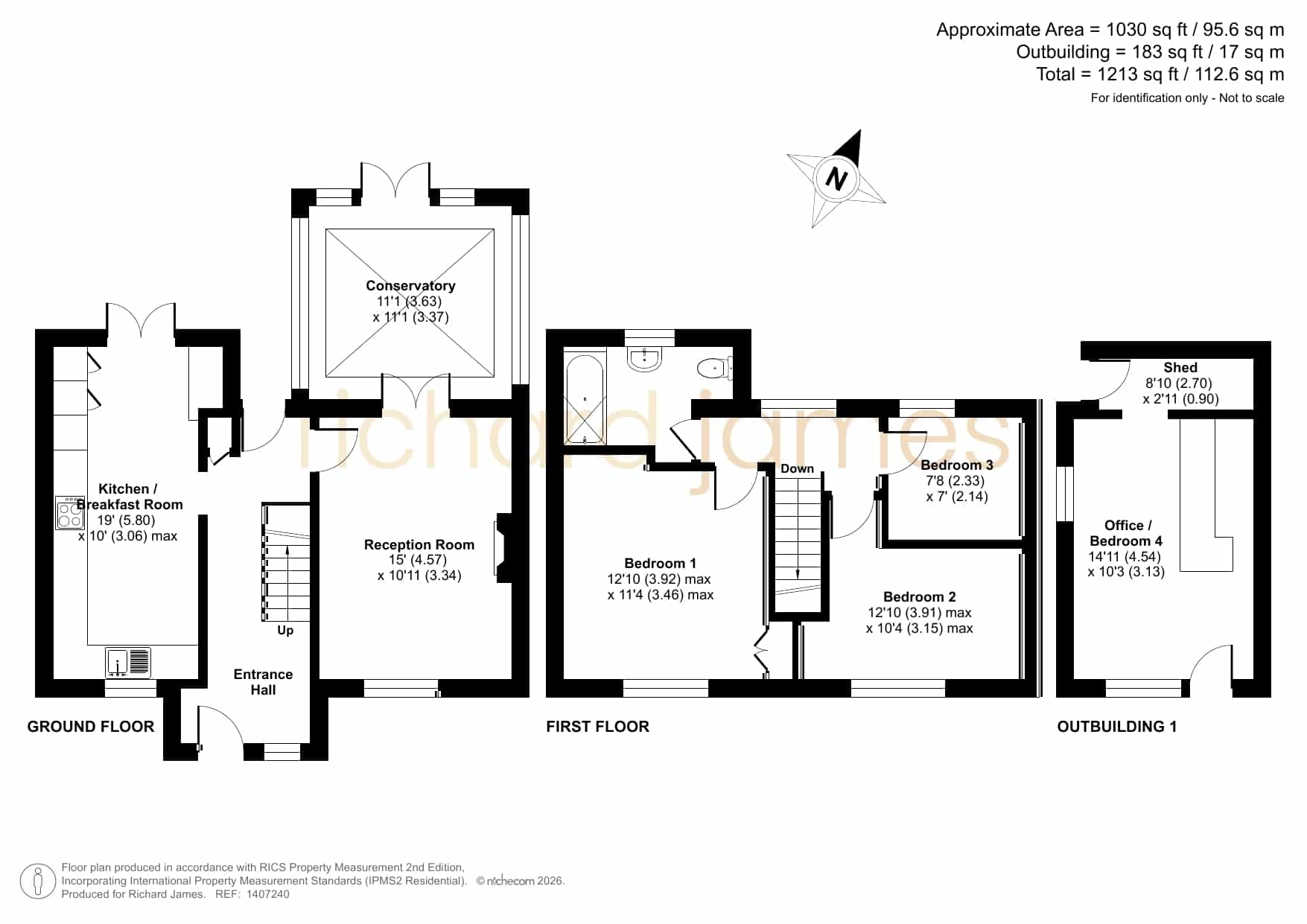 Externally, the property benefits from an outbuilding providing further versatility. This includes a room currently arranged as an office/bedroom four.