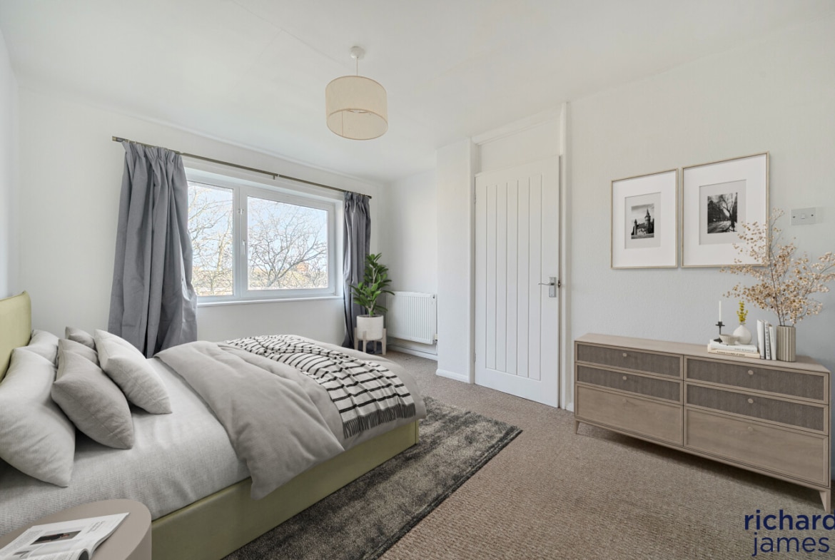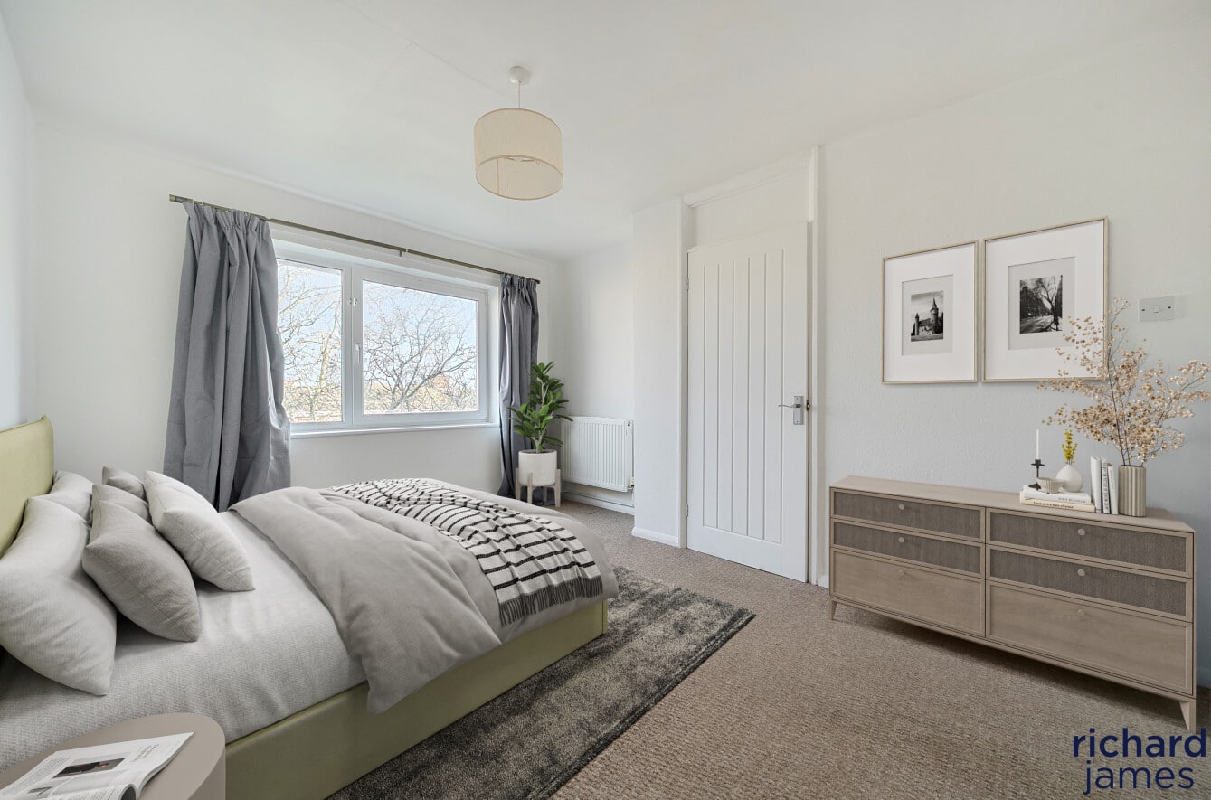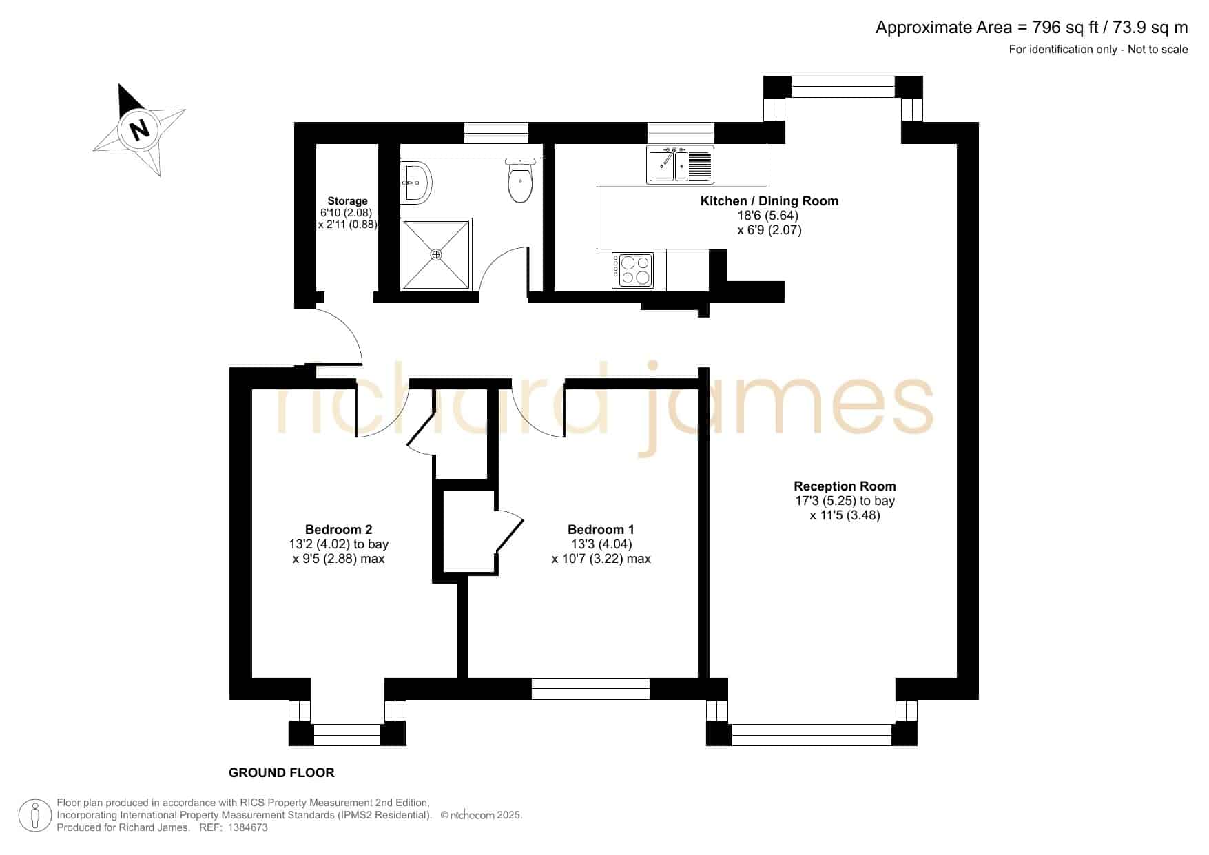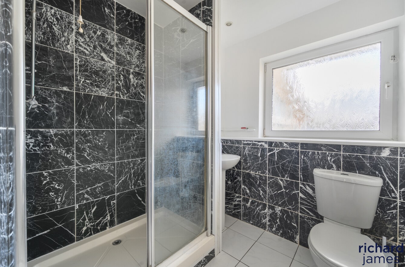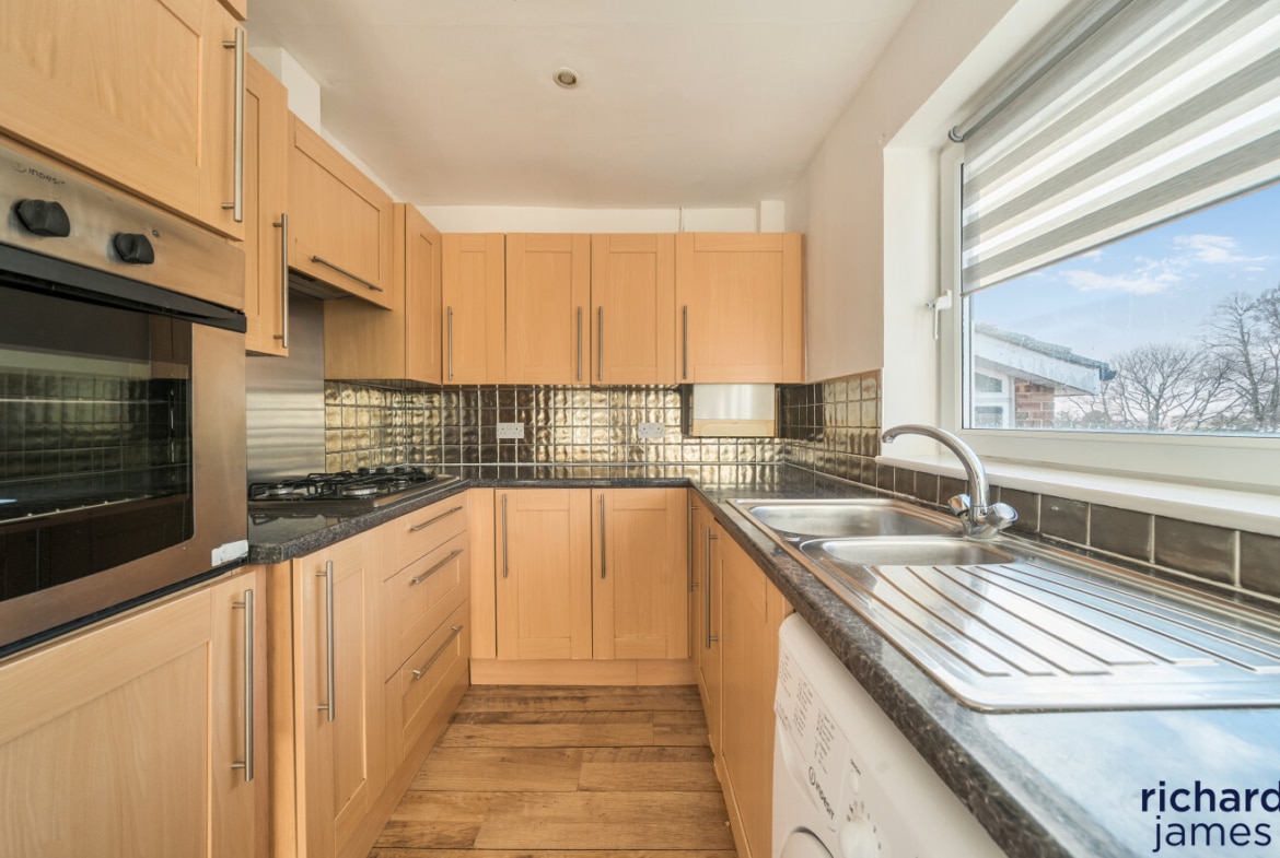 The well-proportioned kitchen/dining room offers a practical layout with good countertop space. The main bathroom includes a shower enclosure. Both Bedroom 1 and Bedroom 2 are genuine doubles, with Bedroom 2 also benefiting from a bay window feature.