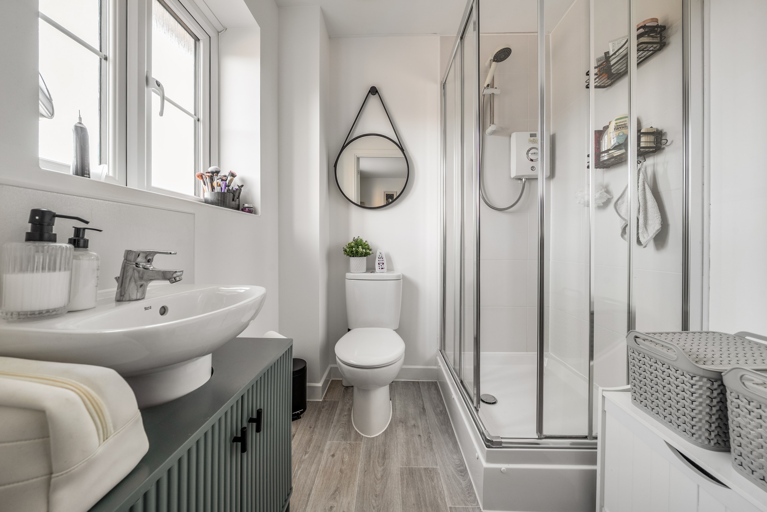 The first floor continues to impress with a well-appointed family bathroom alongside two generously sized double bedrooms with built in wardrobes. The main bedroom benefits from an en-suite, offering a touch of luxury and privacy. A thoughtfully designed single bedroom completes the upper level. Whether you’re accommodating family or working from home, these adaptable spaces cater to various needs, ensuring flexibility for the future. Each room is decorated in neutral tones to appeal to a wide audience, leaving a blank canvas for you to inject your personal style.