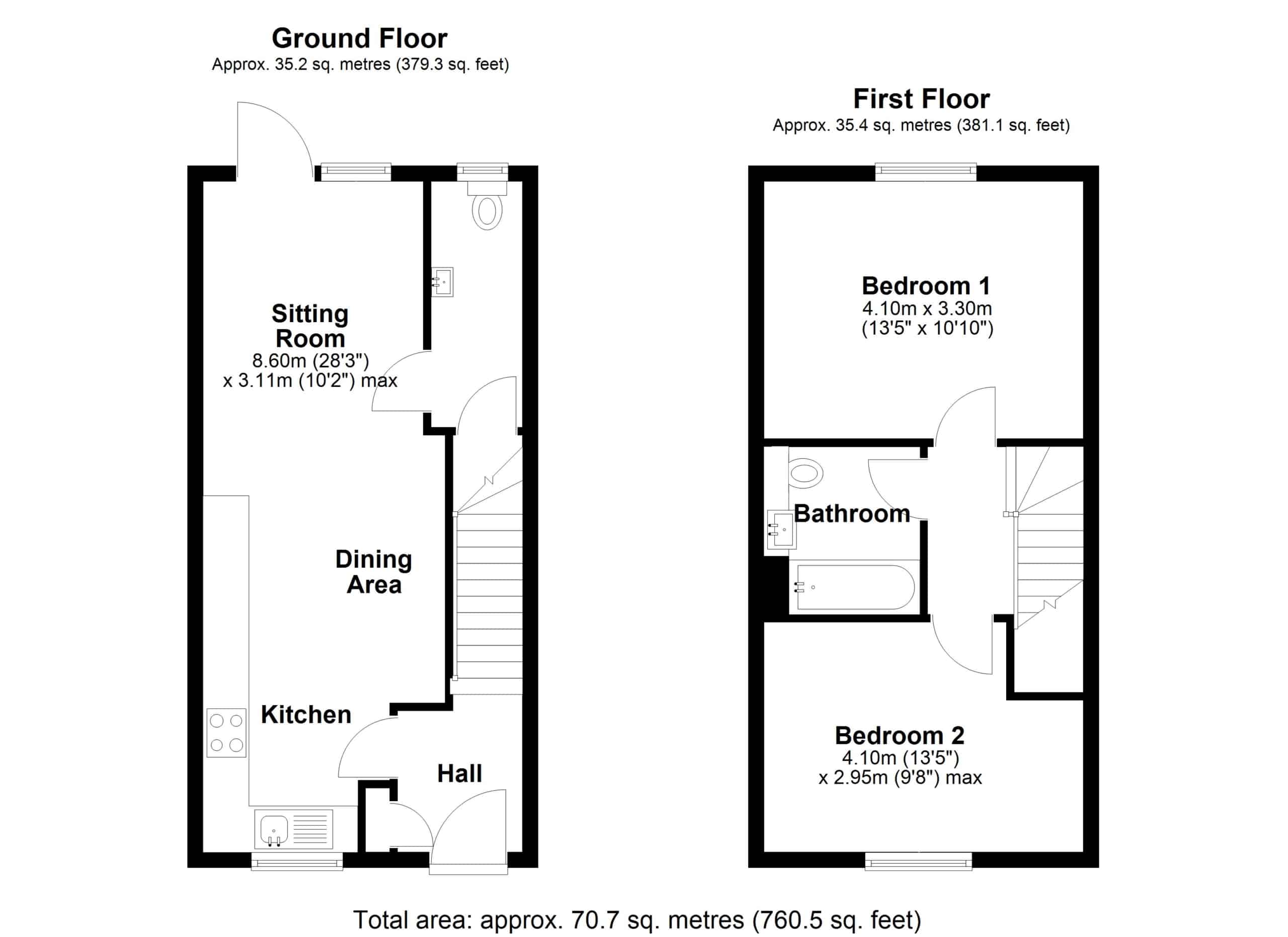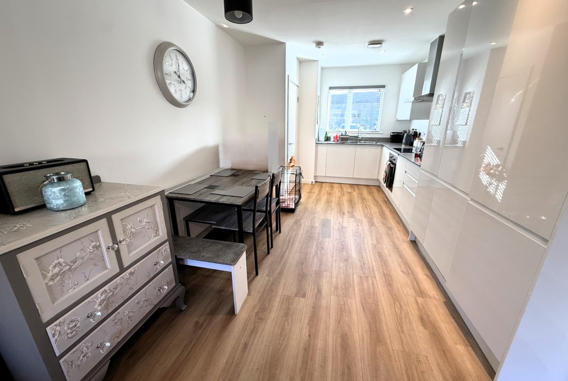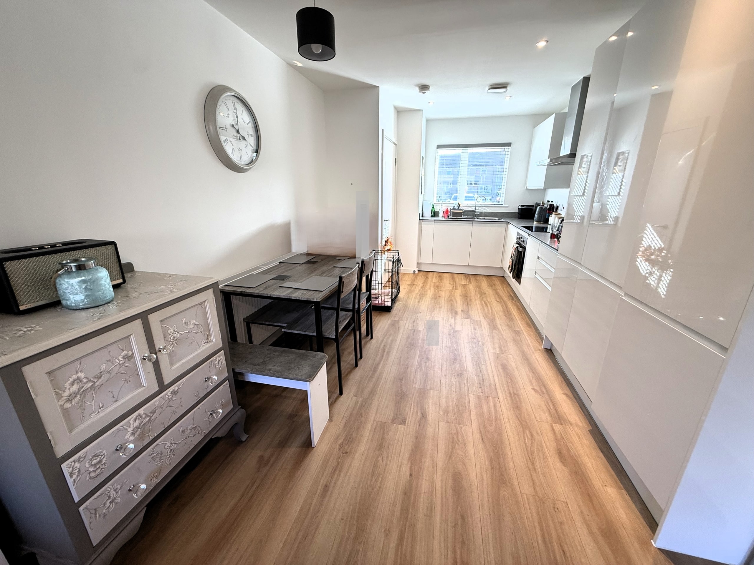 The very well presented accommodation includes; welcoming Hall, a fantastic open plan 28′ Kitchen/Dining/Sitting Room hall, which includes a contemporary fitted Kitchen with integrated appliances, Dining Area which opens to the Sitting Room, with double glazed door leading out into the Rear Garden., with the addition of a Cloakroom for added convenience. To the first floor, the Two double Bedrooms and a modern Family Bathroom, with white three piece suite and all finished to a high standard.