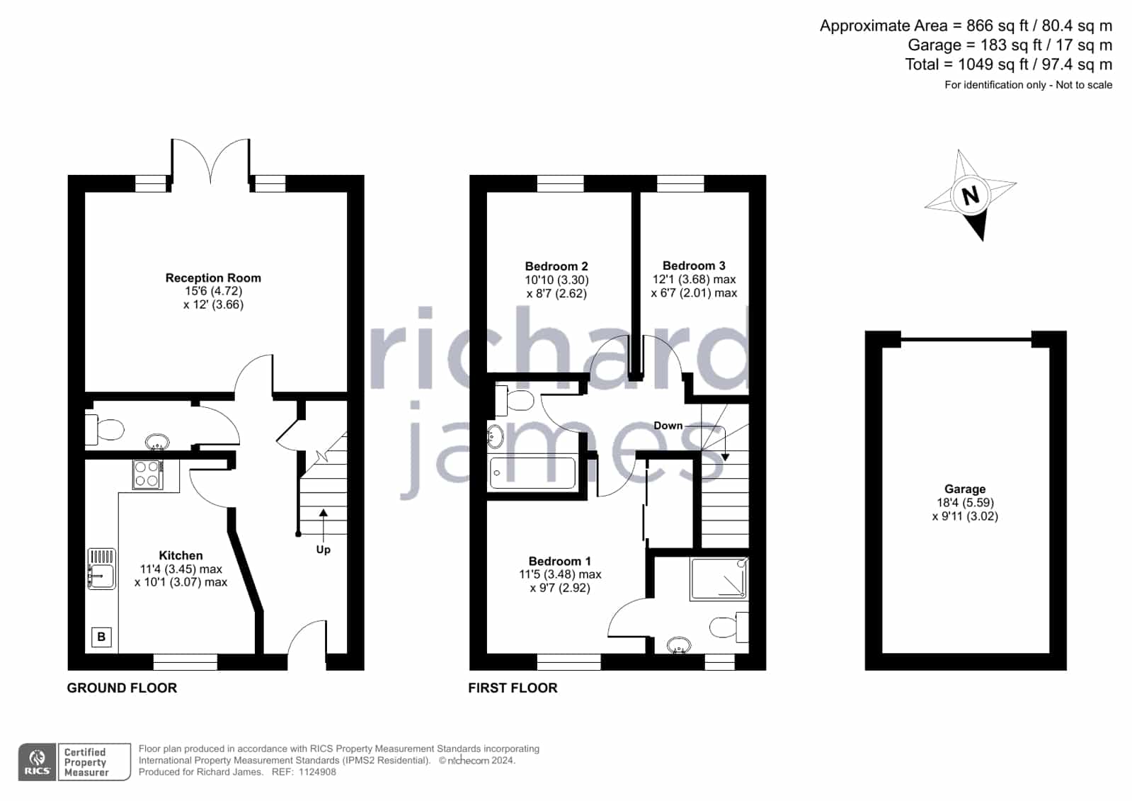 The property comprises; entrance hall, kitchen with small dining area, WC and spacious living room with patio doors to the rear garden. Upstairs you’ll find a single bedroom, the family bathroom and two double bedrooms of which the master boasts an en suite and built-in wardrobes. The property also benefits from spectacular views to the front and a low maintenance and private rear garden laid to patio and lawn with the garage and parking space to the rear.