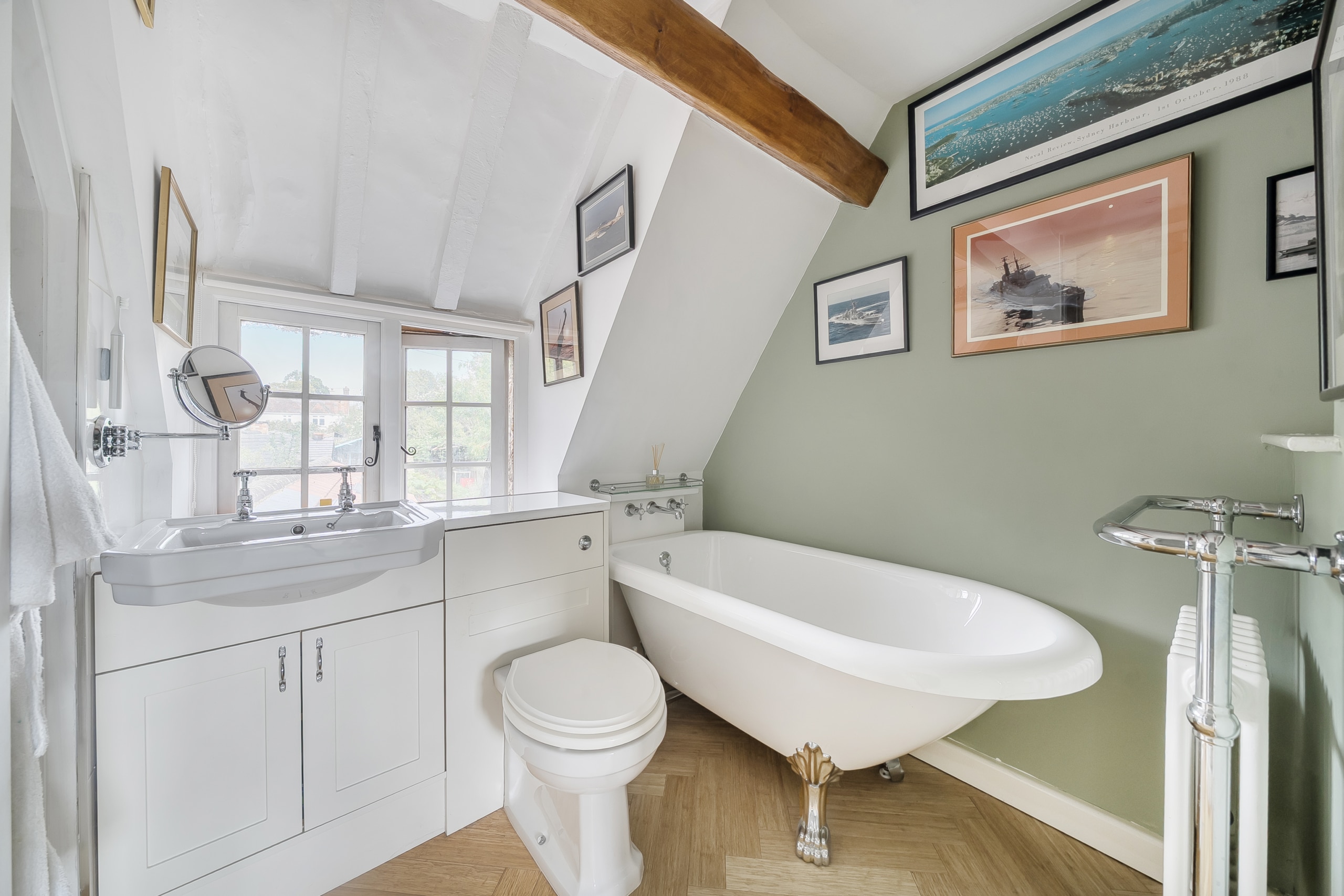 One of the cottage’s standout features is its unusually large rear garden for this central location, offering a peaceful setting for entertaining, gardening or simply unwinding outdoors. A workshop, studio and summer house add extra versatility—ideal as a reading nook, home office, or a space to enjoy evenings with friends by the pizza oven.