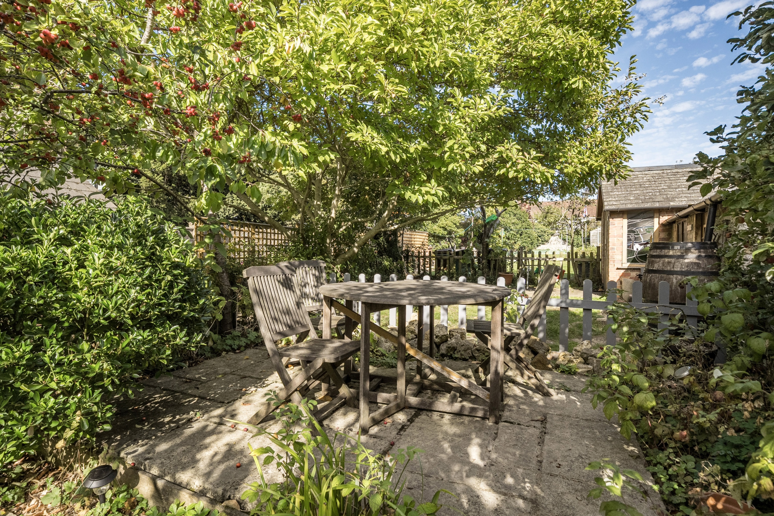To the rear, the kitchen/diner is perfectly appointed, with double doors opening out to the delightful cottage garden – a private haven featuring a gravelled seating area, level lawn, and a variety of fruit trees, ideal for peaceful afternoons or alfresco entertaining.