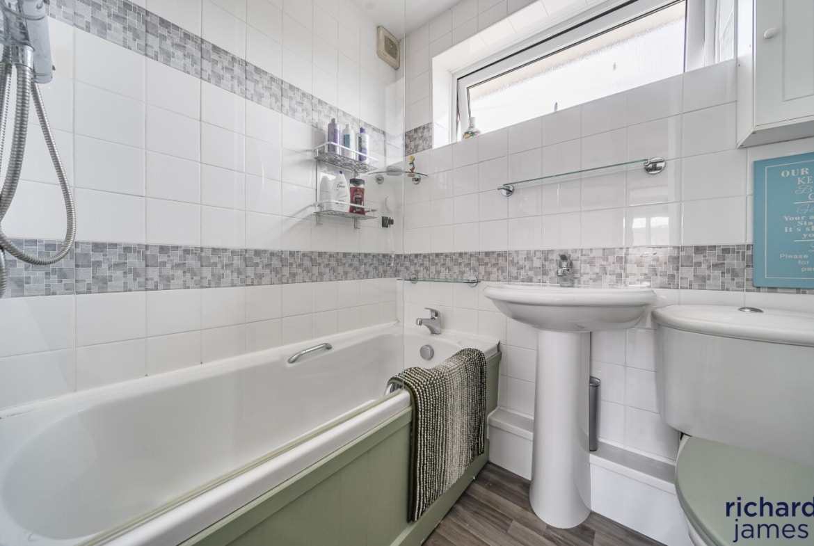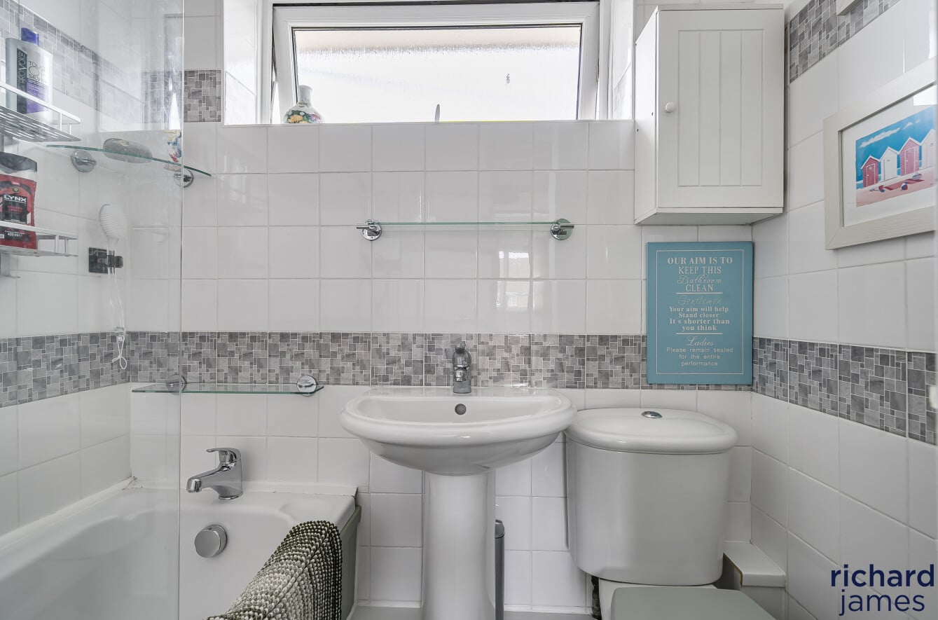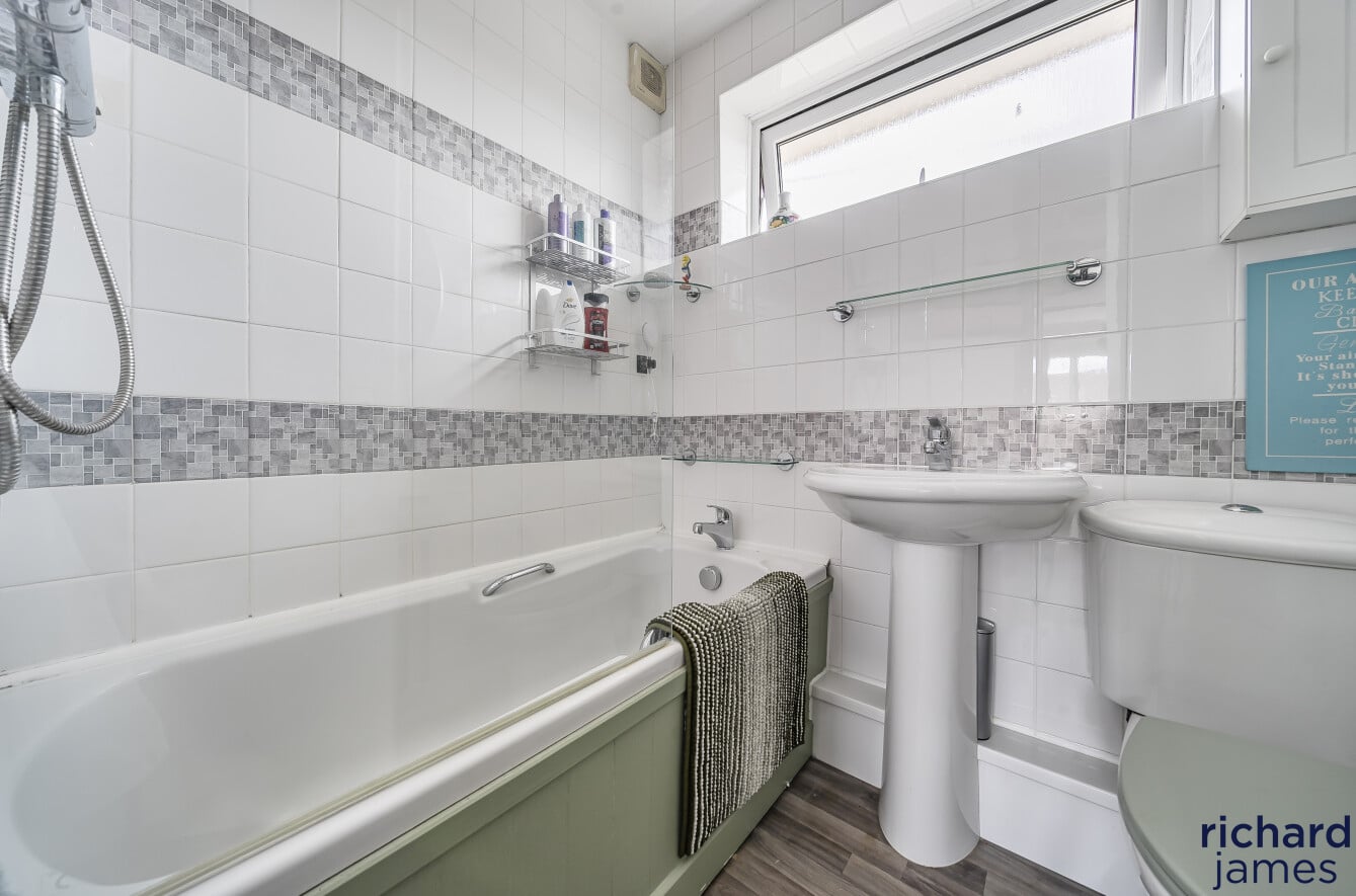 Upstairs, there is a comfortable double bedroom and a good-sized single bedroom, both served by a stylish family bathroom complete with both a bath and a separate shower. The property also benefits from an allocated parking space and well-maintained front and rear gardens, offering potential for future development. The vendors previously obtained planning permission for a two-storey rear extension extending 4 metres, which has since lapsed.