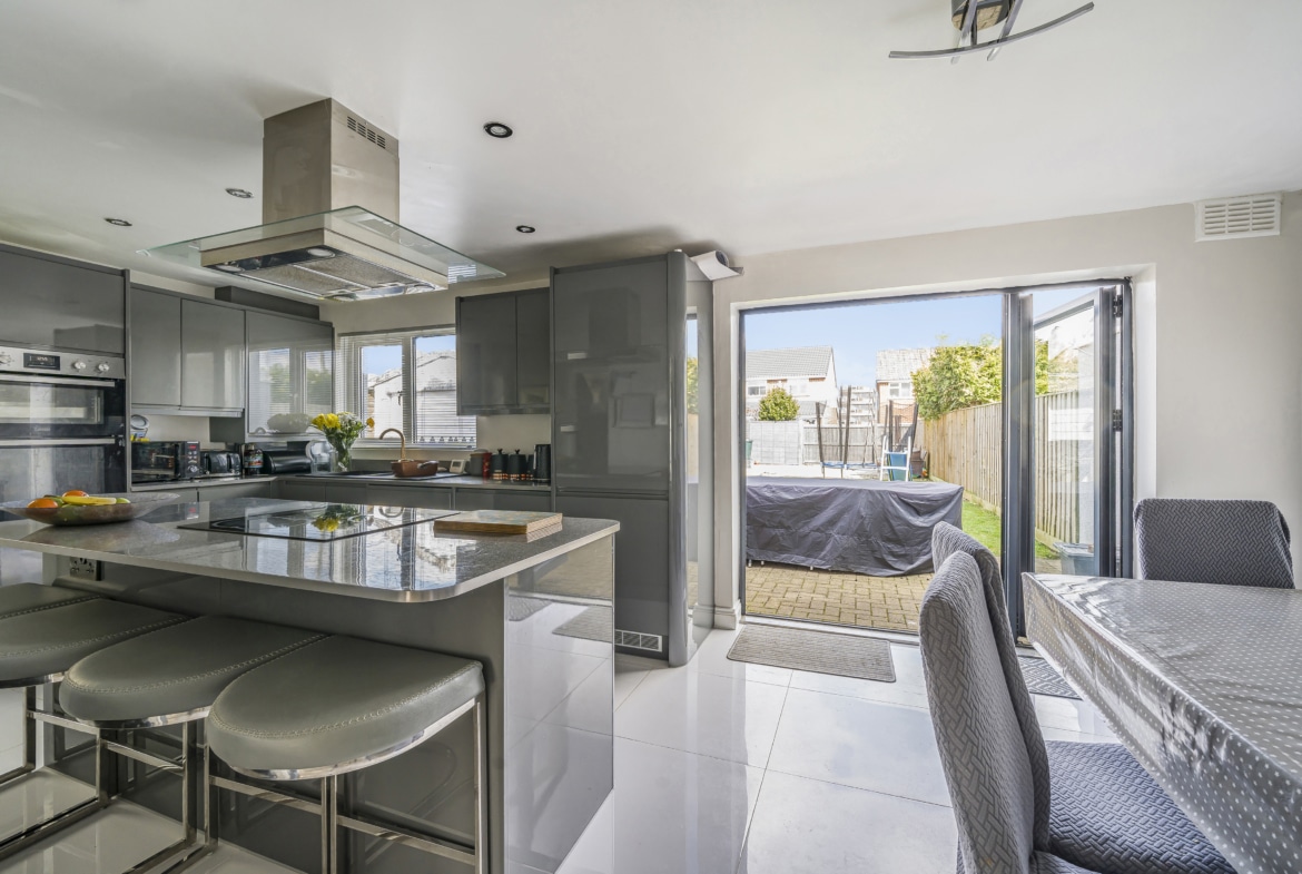 Inside, the accommodation includes an entrance hall, living room, refitted and remodelled kitchen diner with modern kitchen, island and folding door opening up onto the brilliant sized rear garden. Upstairs, you’ll find three well-proportioned bedrooms and a re-fitted family bathroom. Additional benefits include gas radiator central heating, driveway giving off road parking for numerous vehicles, a great sized rear garden and brilliant proximity to primary and secondary schools plus road and rail links.