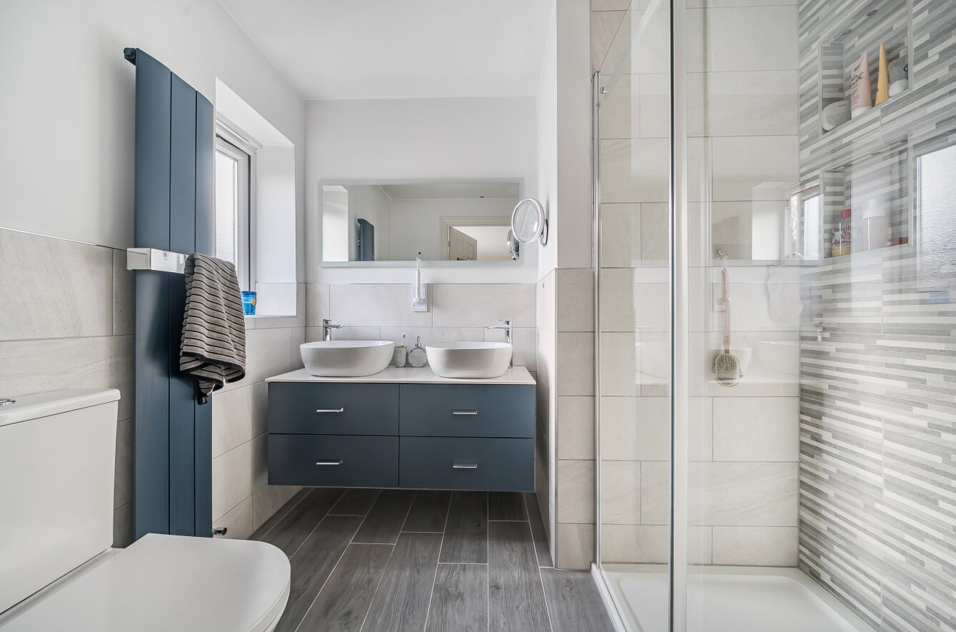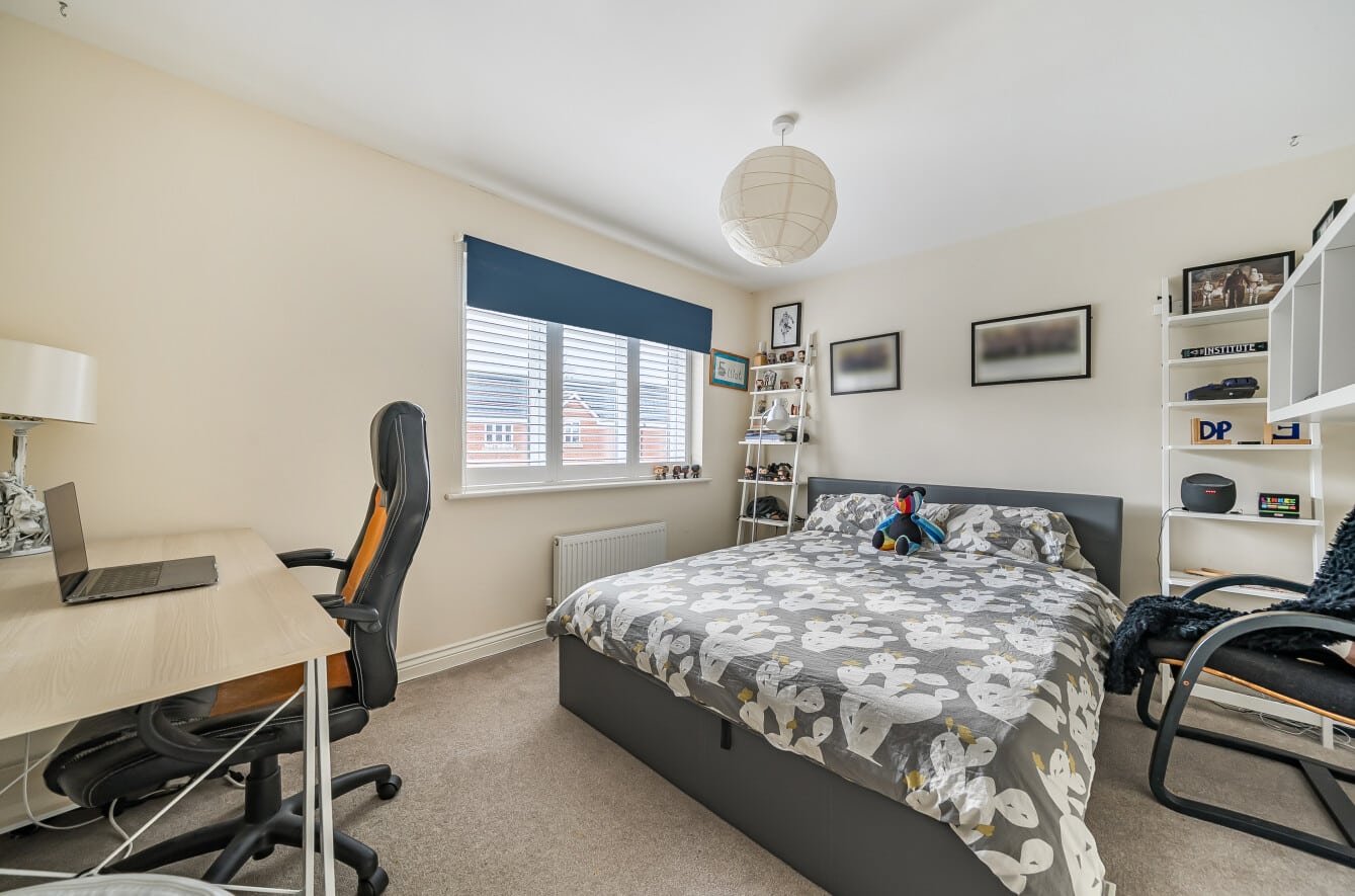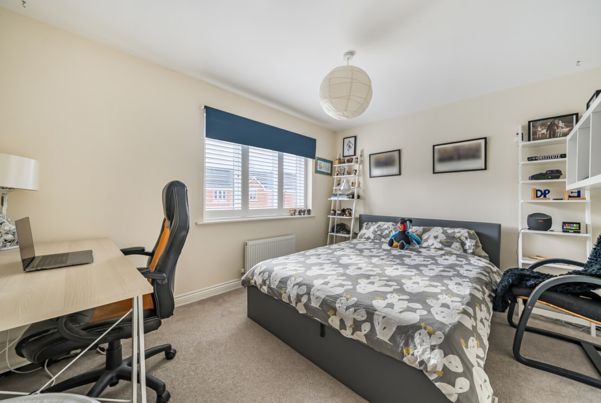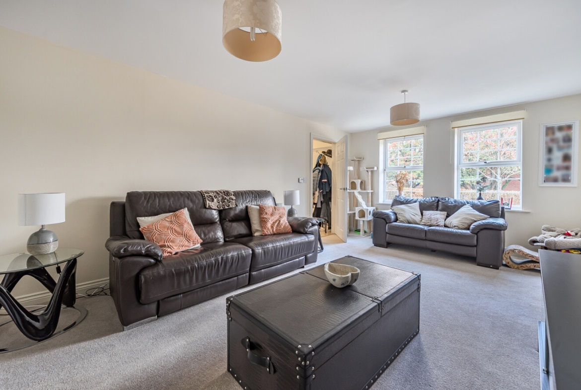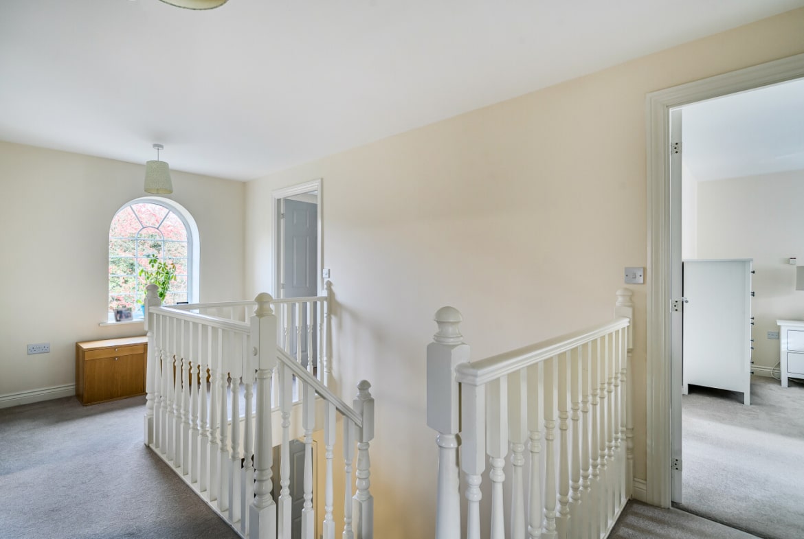 The first floor offers four well-proportioned bedrooms, including a generous principal bedroom with en-suite shower room. The remaining bedrooms are served by a family bathroom, while the landing itself feels light and open, enhanced by an attractive arched window.