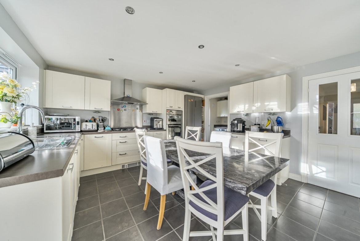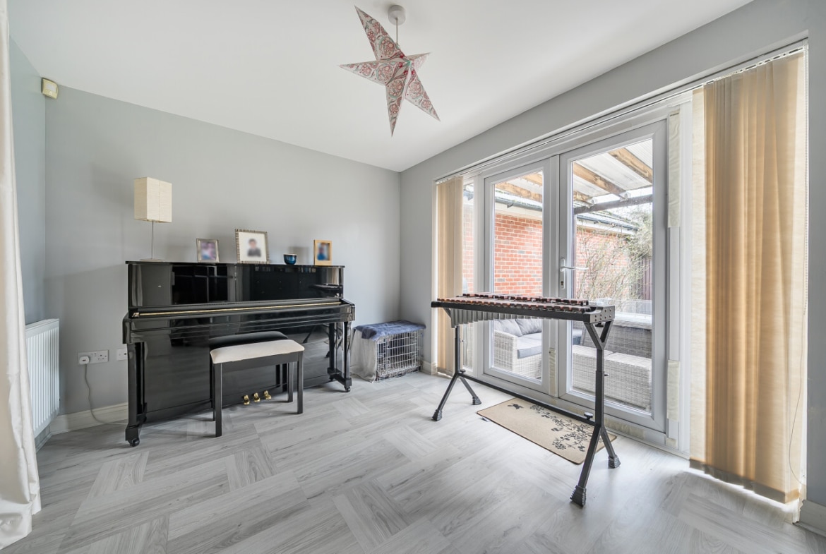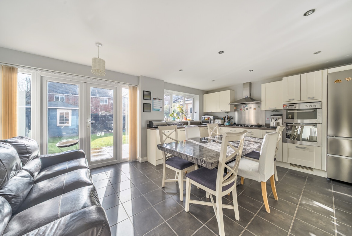 The ground floor is well suited to modern family living, with a welcoming entrance hall leading to a spacious reception room for everyday relaxation. To the rear, the kitchen and breakfast room offers a bright, sociable space with French doors opening onto the garden, while a separate dining room adds flexibility for more formal occasions. A home office, utility room and cloakroom complete the ground floor layout.