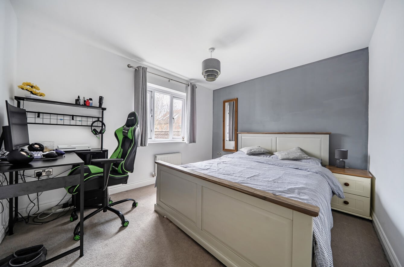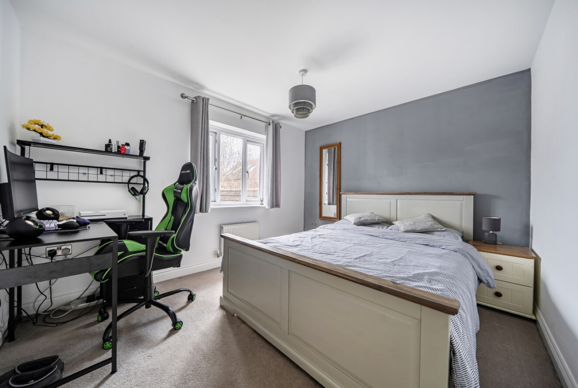 The second floor hosts the luxurious master bedroom, with ample space for a large bed and additional furniture. This serene retreat benefits from a dedicated en-suite shower room.