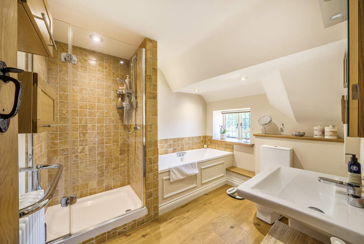 Upstairs, the home offers Four bedrooms, including a spacious principal bedroom and two further well-proportioned rooms. The fourth bedroom provides an ideal space for home working or as a child’s bedroom. The family bathroom is stylish and functional, complete with both bath and separate shower.