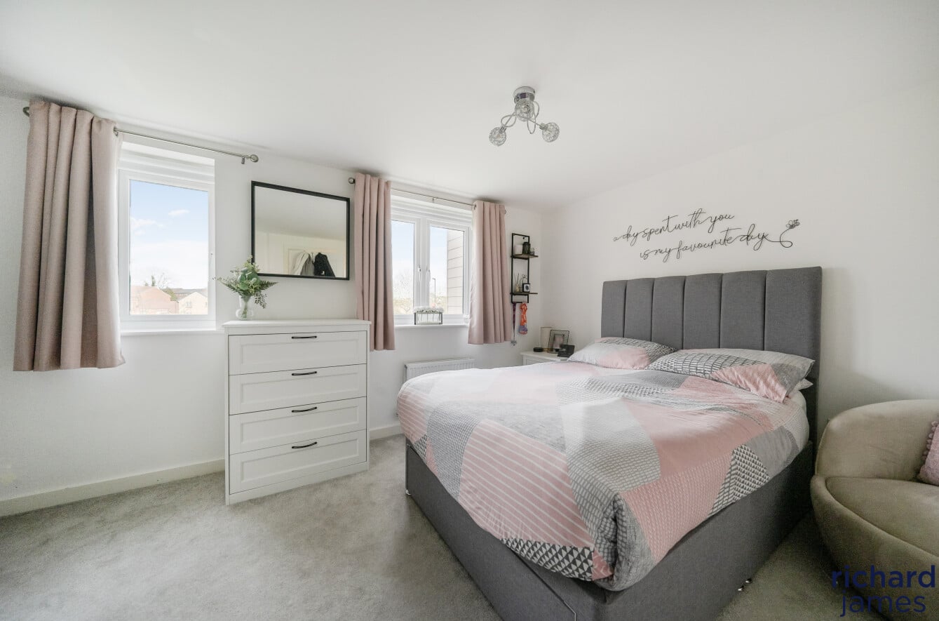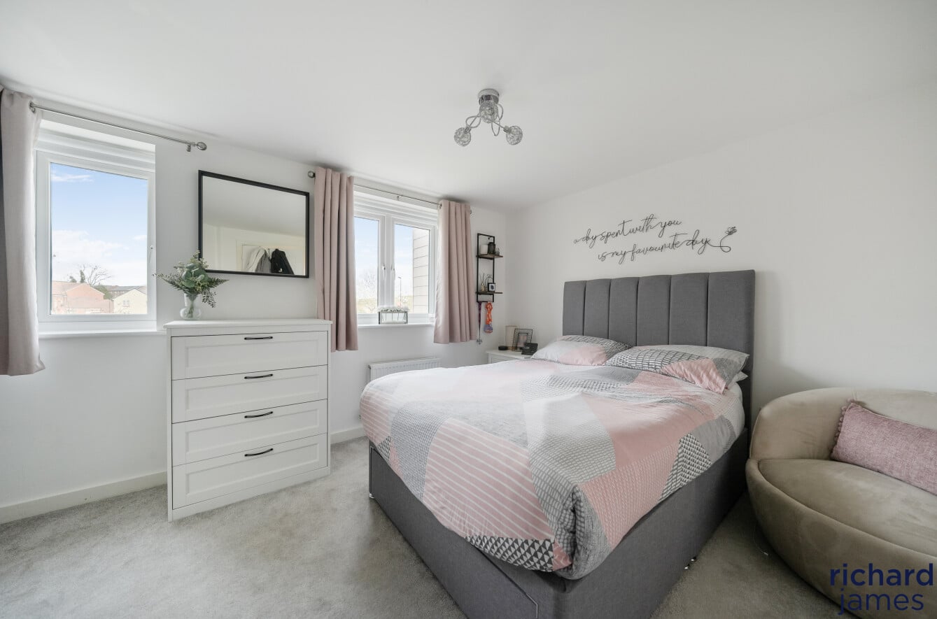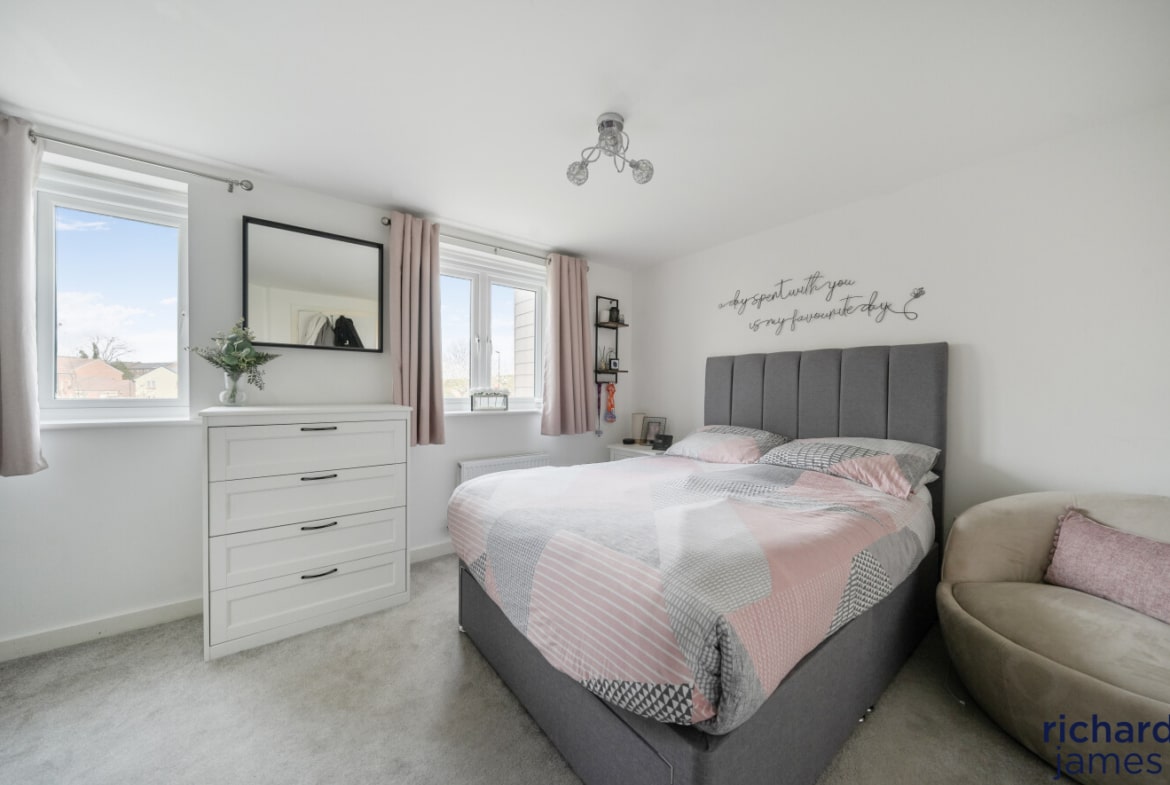 The generously sized double bedroom benefits from an excellent aspect and provides comfortable accommodation with plenty of space for freestanding furniture. The room’s thoughtful positioning ensures a peaceful retreat from the main living areas.