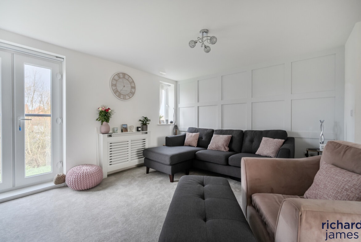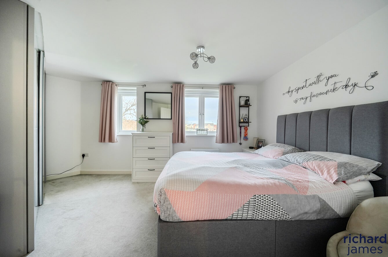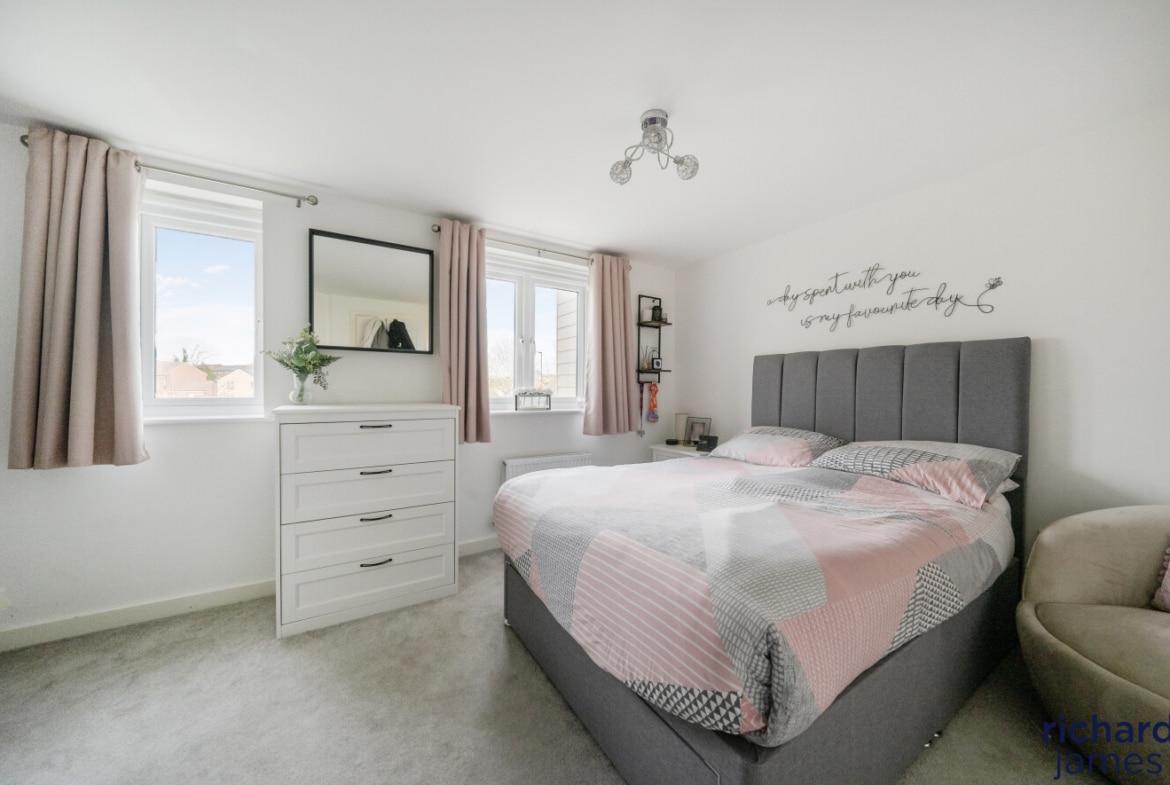 The generously sized double bedroom benefits from an excellent aspect and provides comfortable accommodation with plenty of space for freestanding furniture. The room’s thoughtful positioning ensures a peaceful retreat from the main living areas.