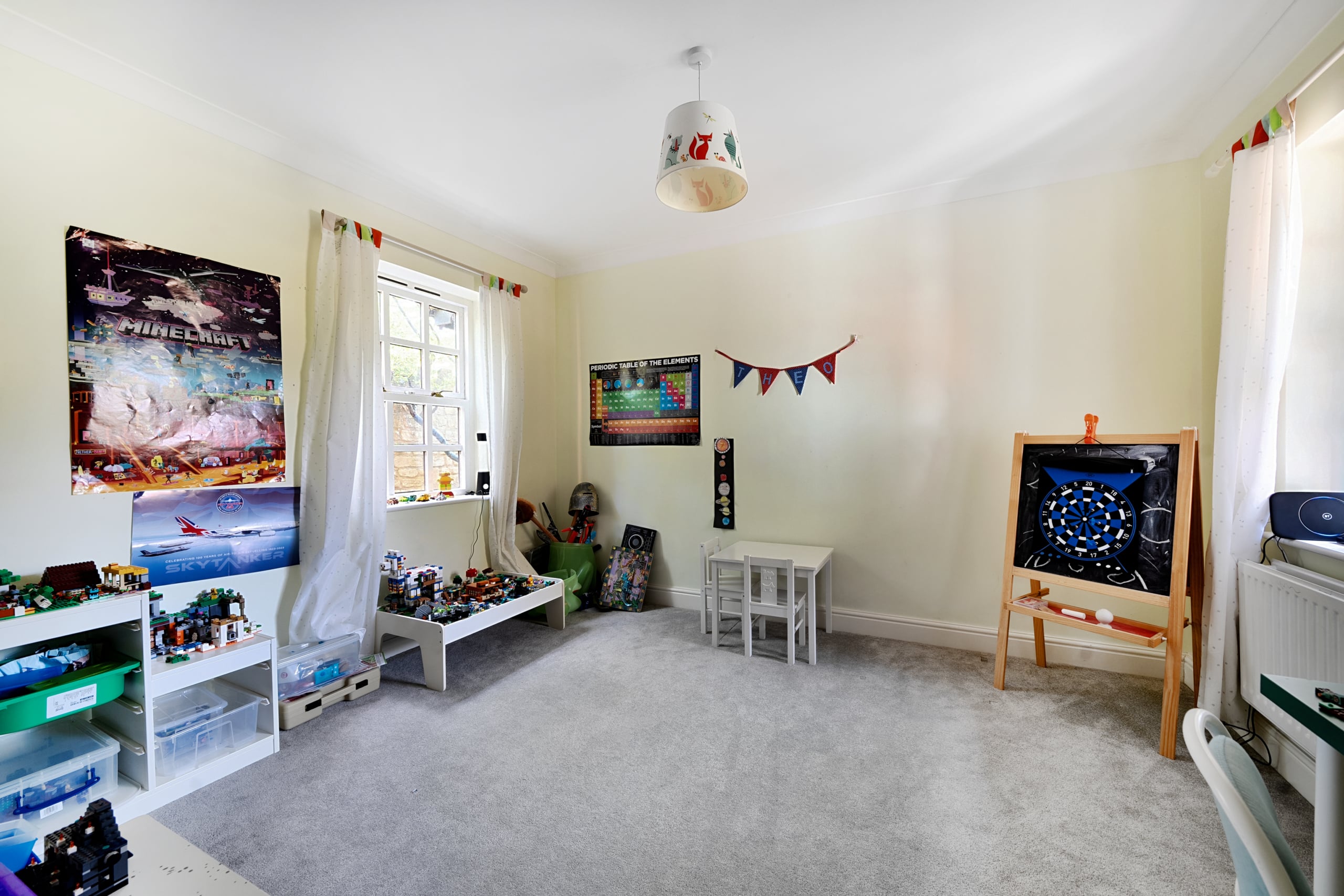 Inside, the home is beautifully presented throughout. The heart of the house is a modern, shaker-style kitchen, thoughtfully designed with both style and practicality in mind. Adjacent to the kitchen is a useful utility room. Across the hall, a well-sized living room, perfect for everyday family life or entertaining. There are three reception rooms in total on the ground floor, including a formal dining room, the living room and a downstairs playroom/ home office.