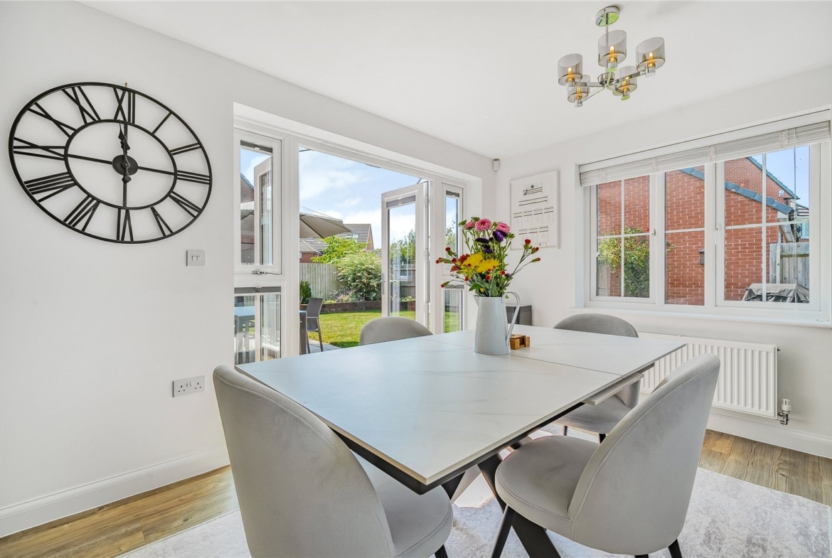Introducing a stunning FIVE-BEDROOM DETACHED home by Barratt Homes, featuring a DOUBLE GARAGE and set on a prime plot within this delightful development in Watchfield offering an impressive 2464sqft of accommodation.The ground floor offers an inviting entrance hall with a downstairs toilet, a beautiful dual-aspect lounge measuring 21’5ft x 11’7ft with a Bay Window and French doors leading to the garden, an additional reception room with another Bay Window, a modern utility room with garden access, and the impressive 22’8 x 10’6ft kitchen/diner complete with AEG appliances and five-ring gas hob.The first floor hosts a four-piece family bathroom, two double bedrooms, one of which includes an ensuite, and the expansive principal suite with a dressing area and a luxurious six-piece featuring a walk-in shower, His & Hers sinks, a bath, toilet, and bidet.On the top floor, you’ll find two more double bedrooms and an additional family shower room. This floor is bathed in natural light thanks to multiple Velux windows, and a spacious landing adds to the airy feel. A handy loft-style storage area is accessible from one of the bedrooms.Externally, this property boasts a DOUBLE GARAGE with power and lighting, ample driveway parking, and a generous, sunny rear garden with patio. The exterior is equally impressive, with beautifully landscaped shrubbery and a well-maintained lawn flanking the front path.Watchfield is a vibrant community with local shops, a primary school, pub, and village hall. The area offers scenic walks along the historic Ridgeway, home to an Iron Age castle and the White Horse. Convenient transport links include regular bus routes to Swindon and Oxford, with train services to major cities from nearby stations.