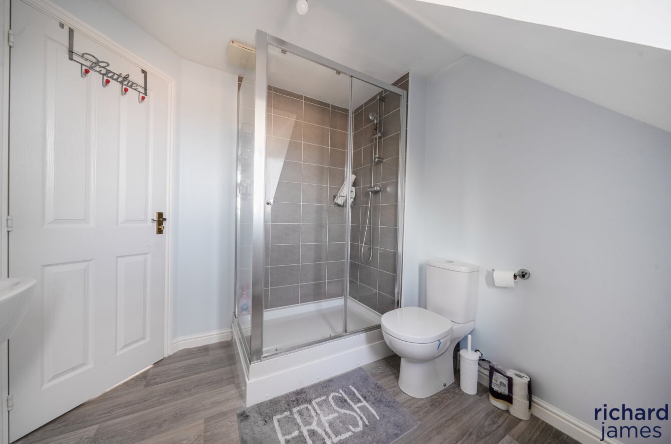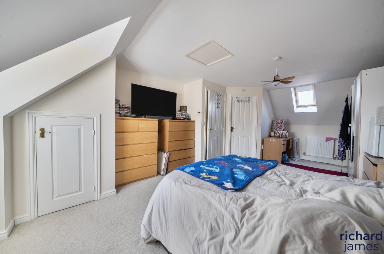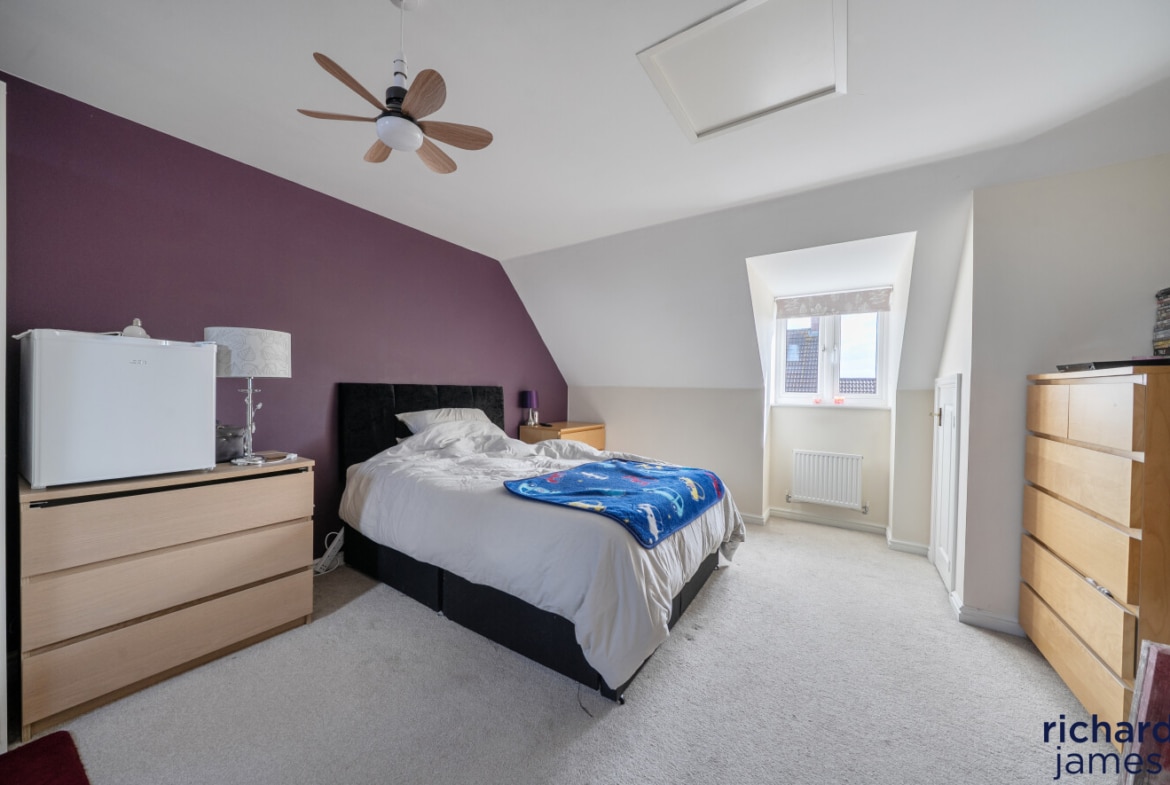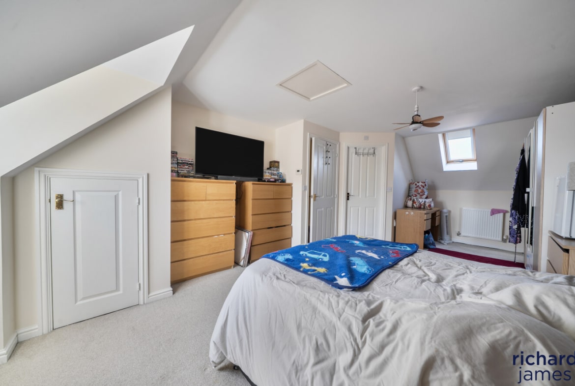 Occupying the entire second floor is an impressive principal bedroom suite, spanning the full width of the property and benefitting from excellent proportions throughout. This superb space is further enhanced by a private en-suite shower room, creating a peaceful and private retreat away from the main living areas.