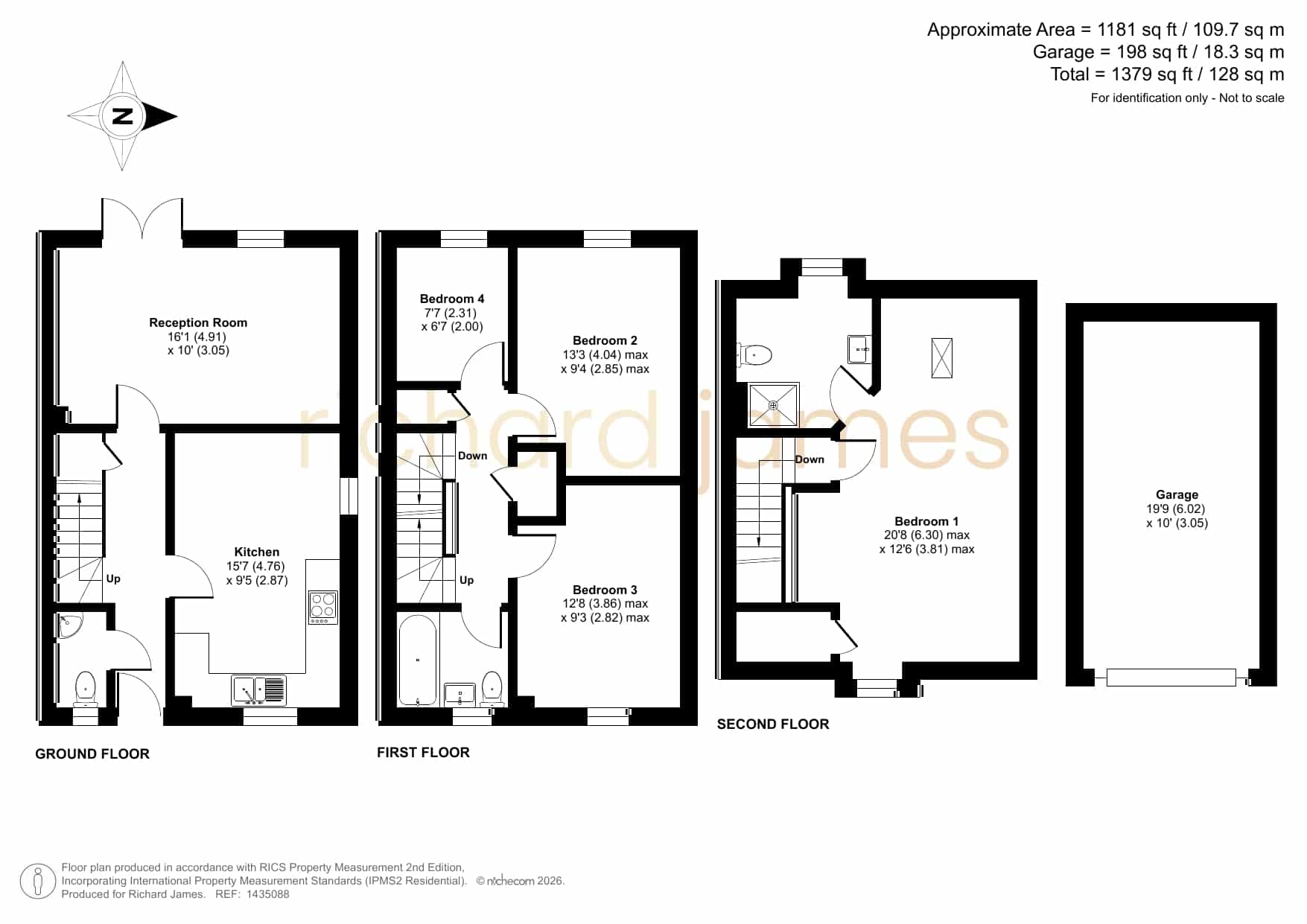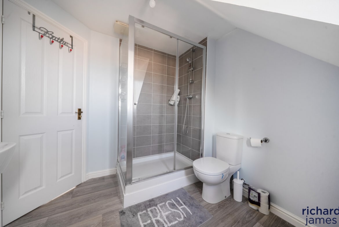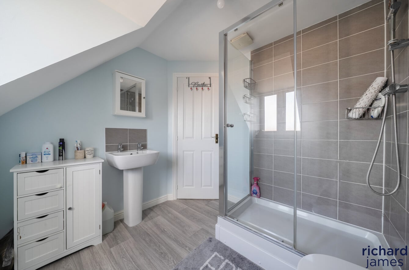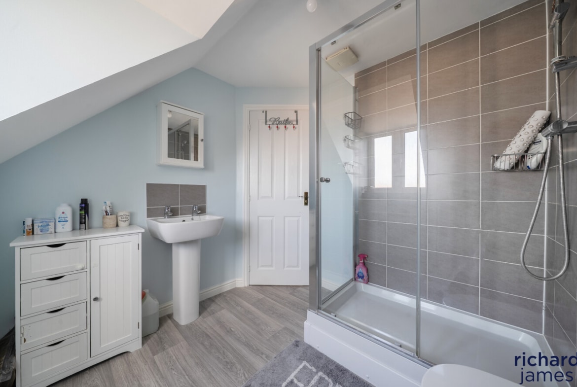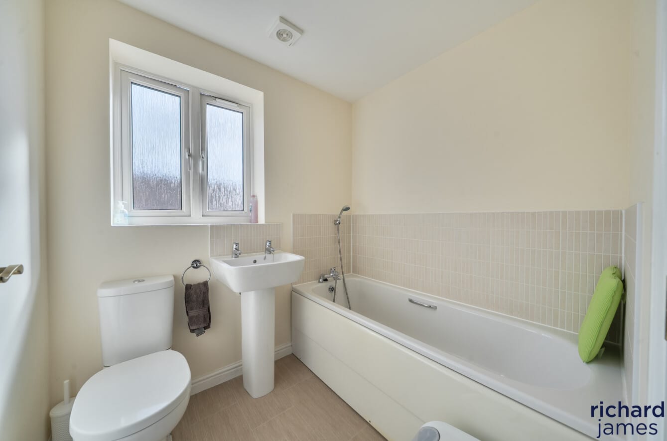 The first floor provides three well-proportioned bedrooms alongside a modern family bathroom, offering flexibility for family living, guests or home working.