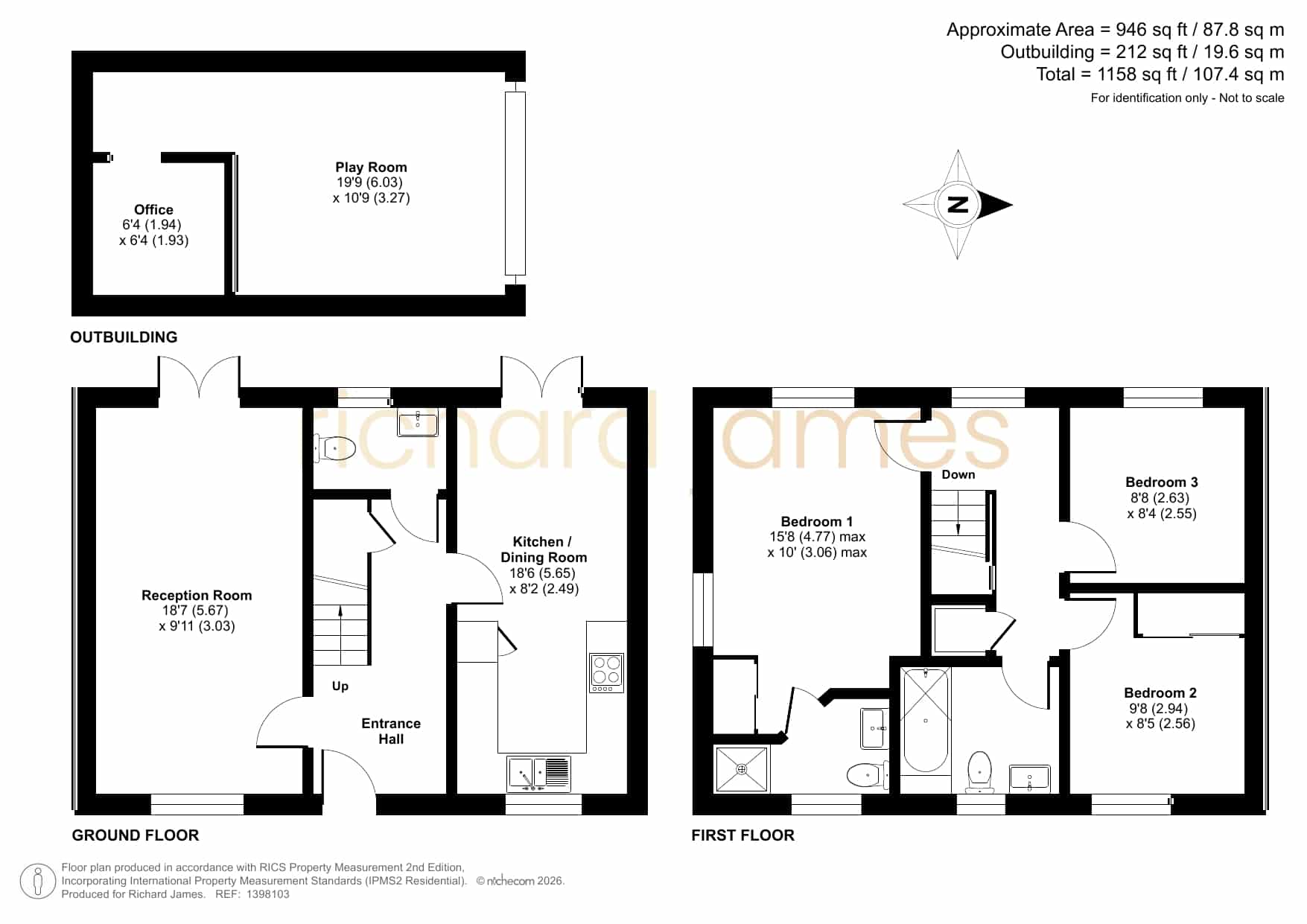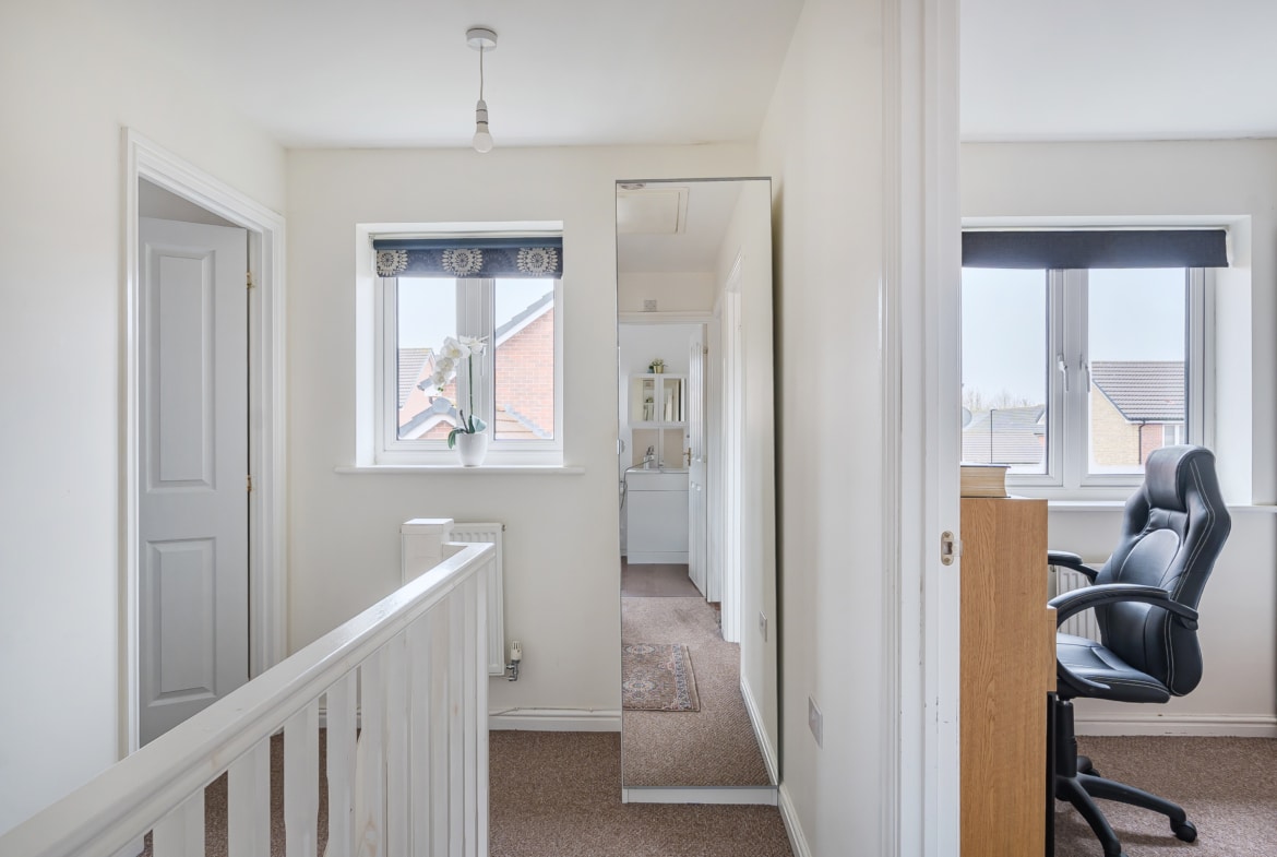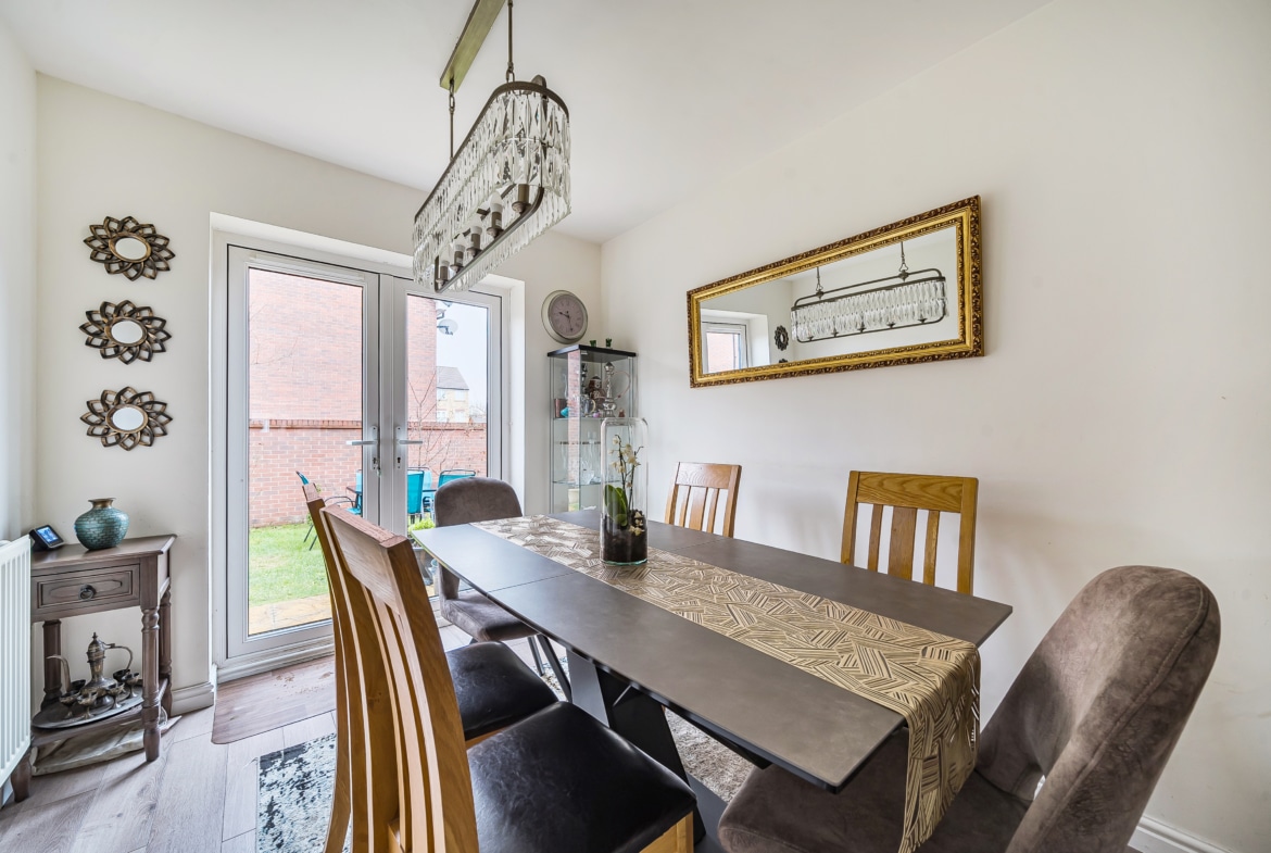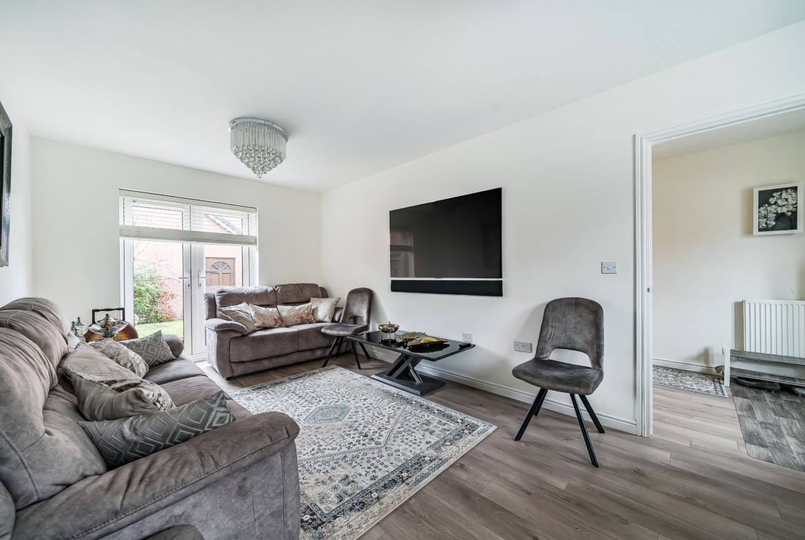 Three-bedroom house on the same estate as Stadium View with a reception room, kitchen/dining room, ground floor WC, and family bathroom. Includes a detached outbuilding with a playroom and separate office, plus access to local shops, schools, the Orbital Shopping Park, A419, and M4.