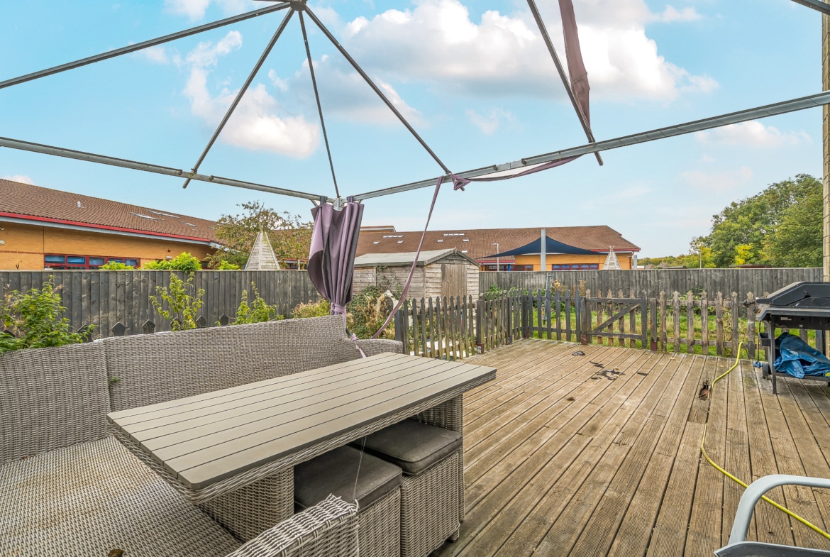 To the rear is an enclosed rear garden with a decking seating area leading to large corner plot offering lots of space for multi purpose use.
